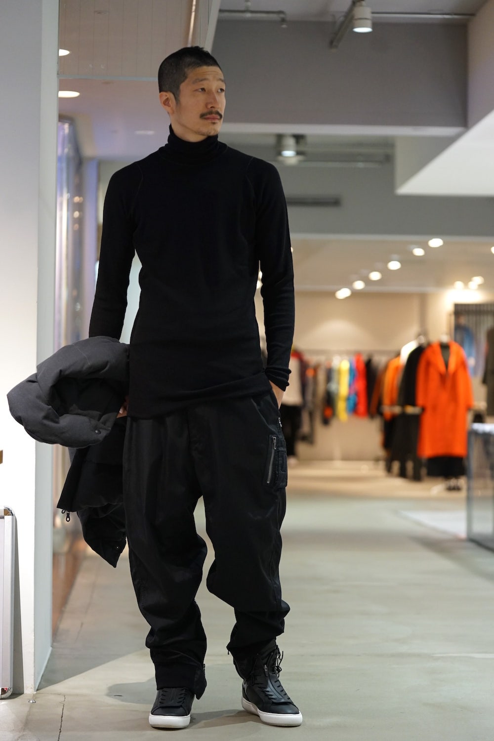 ではスタイリングイメージをお届けします。パンツの独特のドレープ感にもご注目下さいませ。