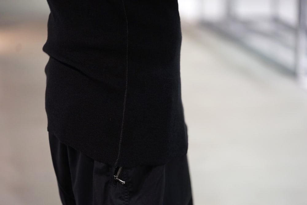 さりげないデザインではありますが、ニットはオーバーロックステッチで一アクセントを加えているThe Viridi-anneのタートルネックにもご注目頂きたいです。