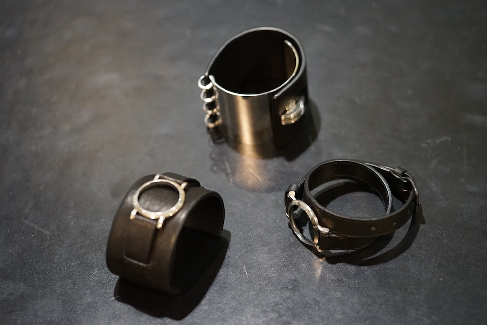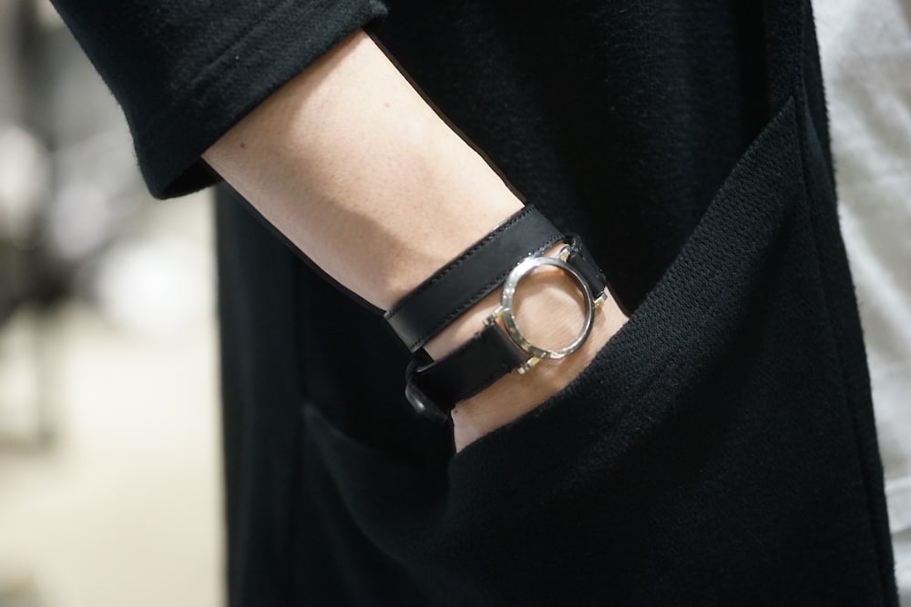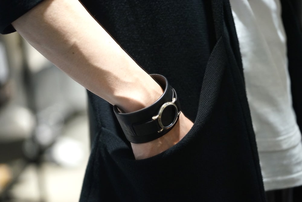 シルバーの形状は先程登場したものと同じで、巻き方によって丸い形状からレザーが覗いたり、肌が覗いたりと表情は様々。付け方により表情が変わるデザインです。