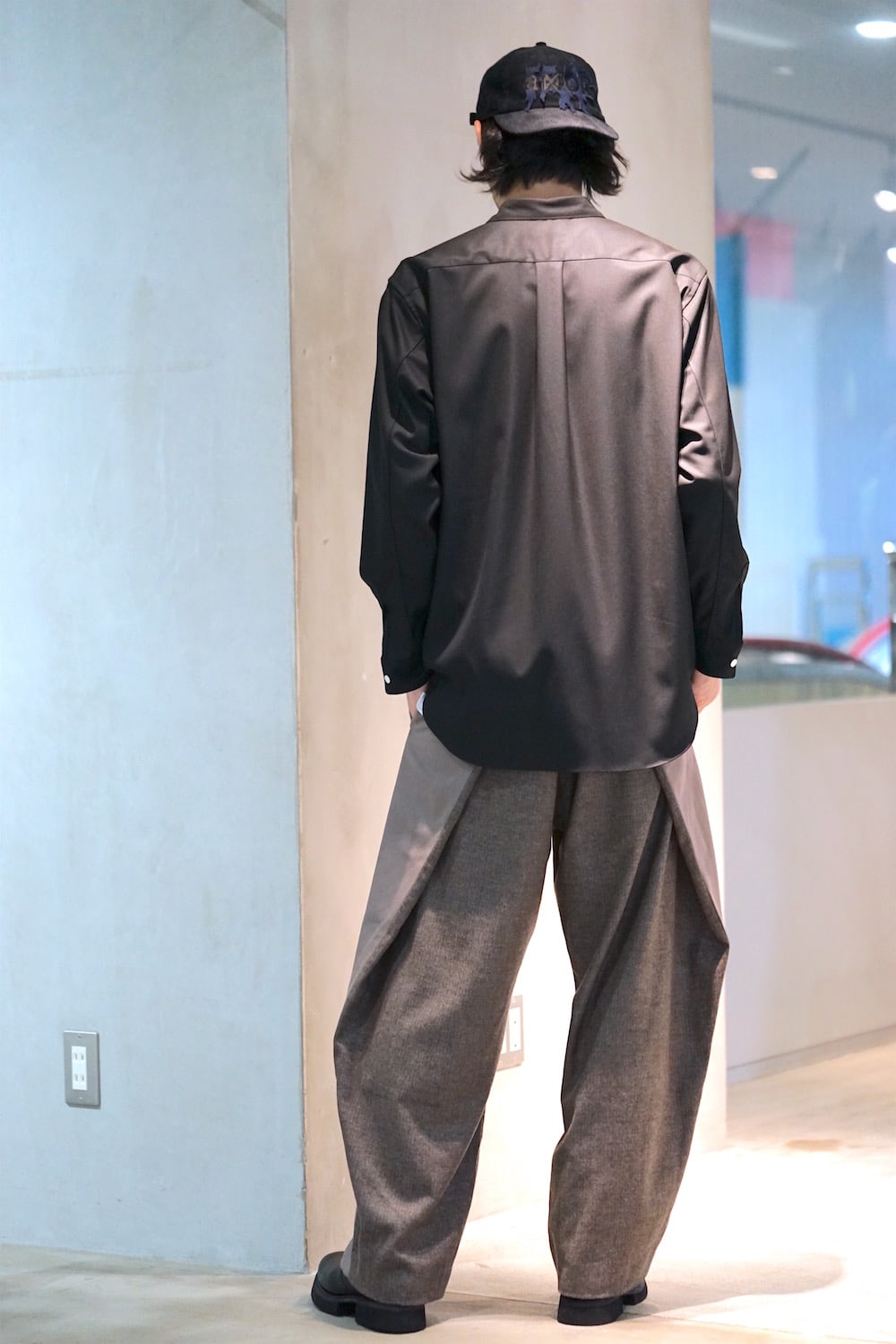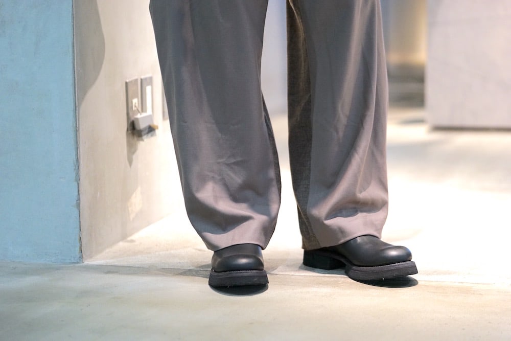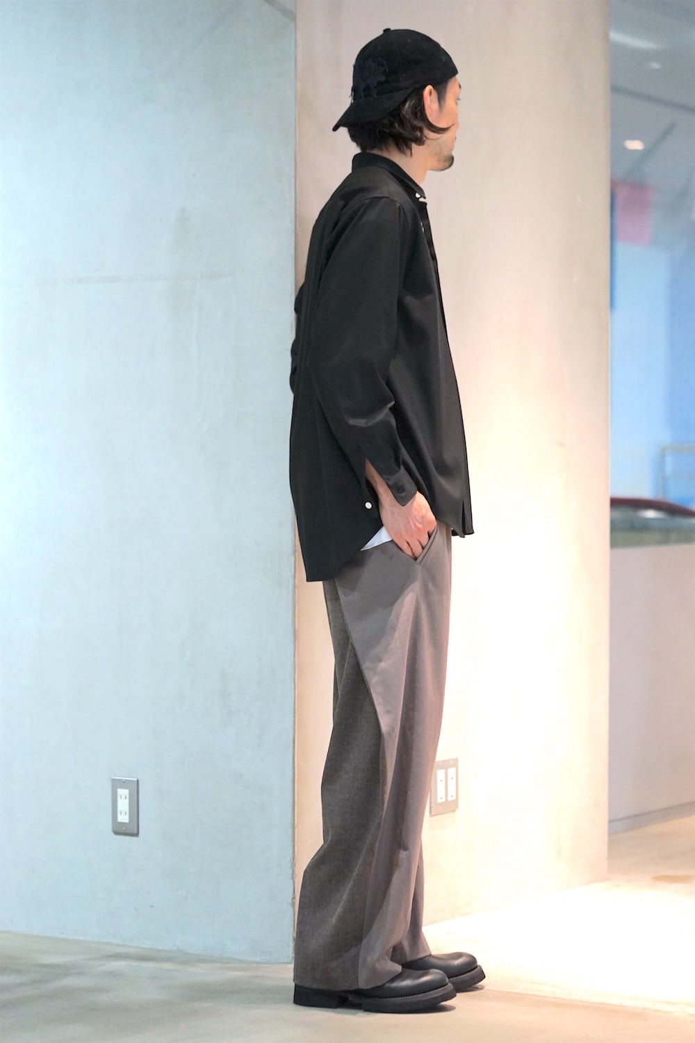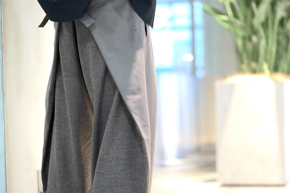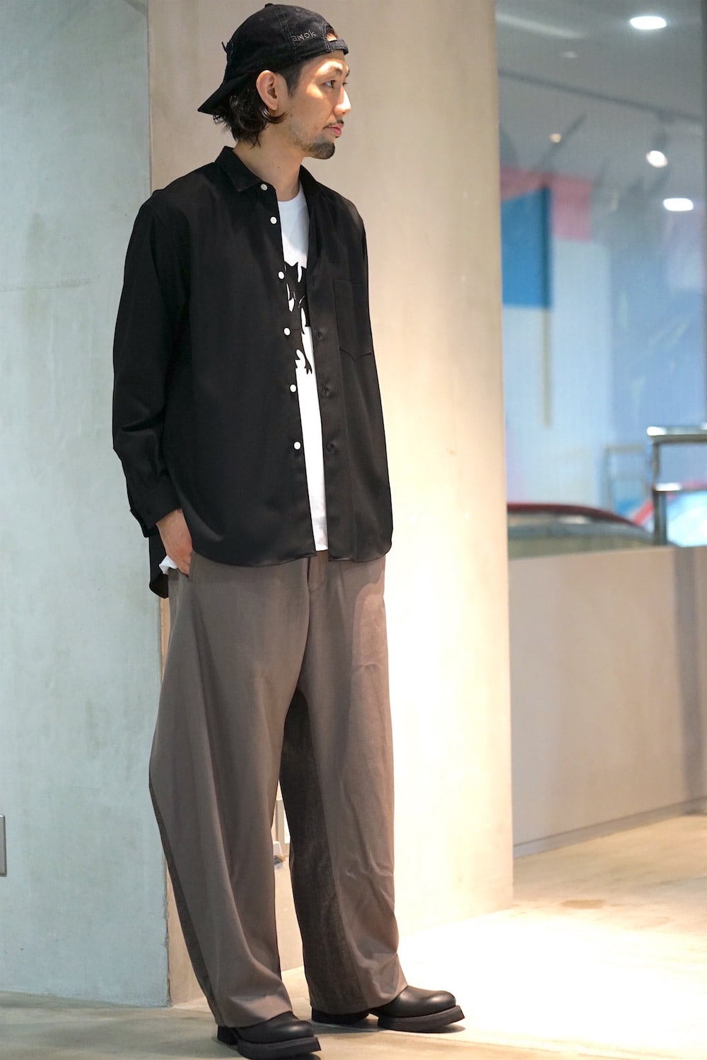 穿き心地としては非常に楽チンで、ワイドシルエットながらほんのりテーパードの効いたシルエット、そして生地の切り替え具合も相まってスタイリングのポイントになってくれること間違い無しです。