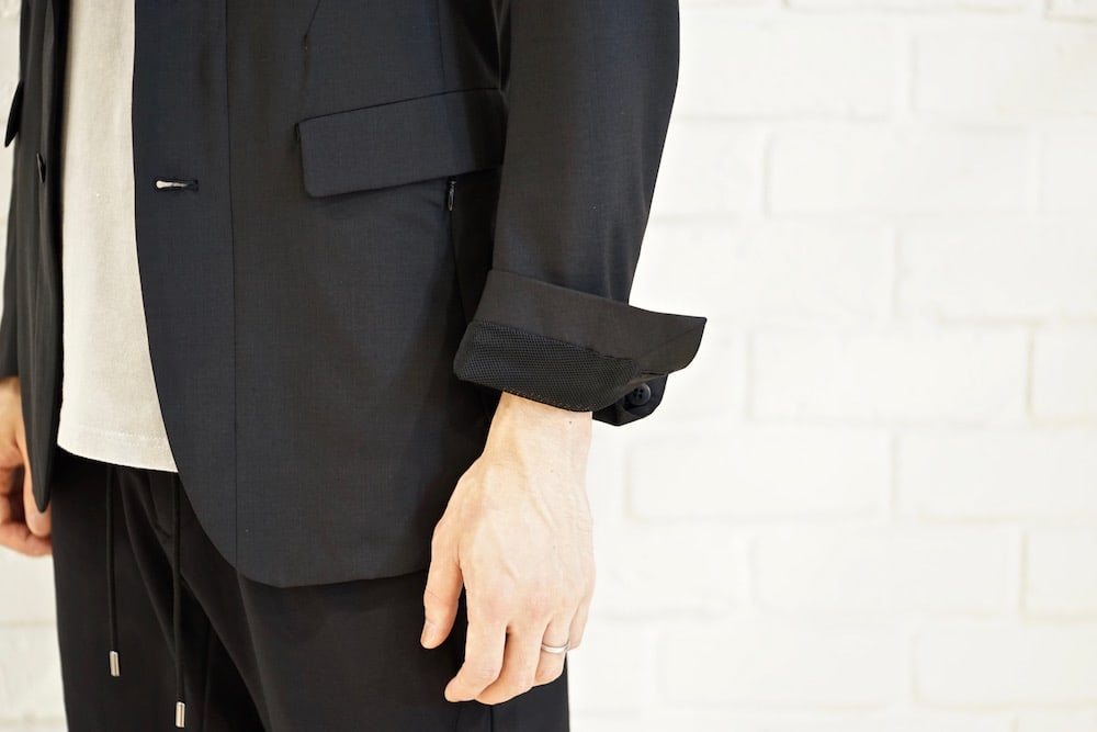 COOLMAX fabric for WOOL "which is excellent in quick-drying and breathability, it provides cool and dry wearing comfort as well. In addition to conventional functionality, COOLMAX is used by blending high quality wool + silk, it suppresses the sporty feeling of sharpness, giving a smooth, high-class texture.
