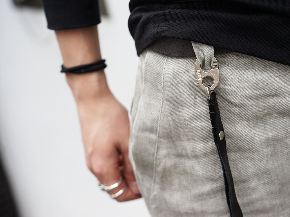 The metal parts can be used and connected to the parts from other cornelian taurus items, or directly on your pants belt loop for example.