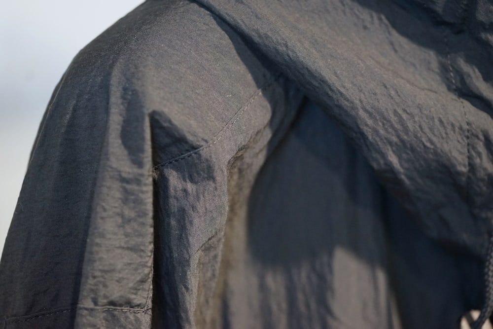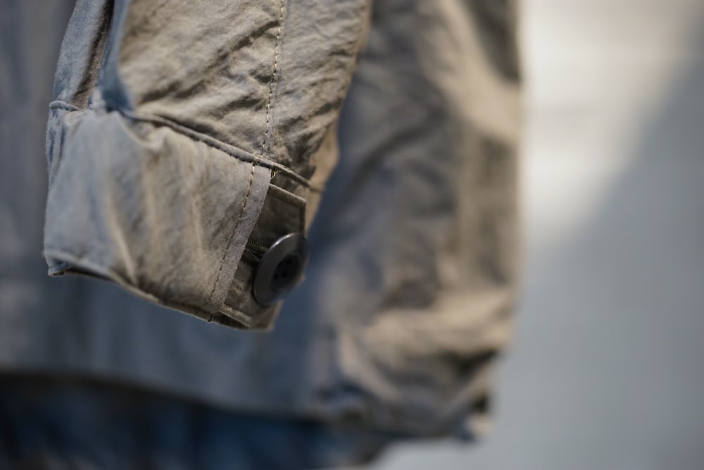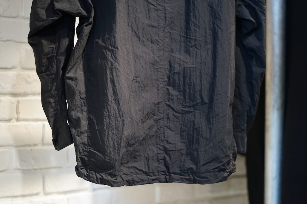 こちら、横糸にナイロン糸を入れる事で独特のシワ感を出したコットンナイロン生地を使用しているのが表情に特徴があり面白いですね。
