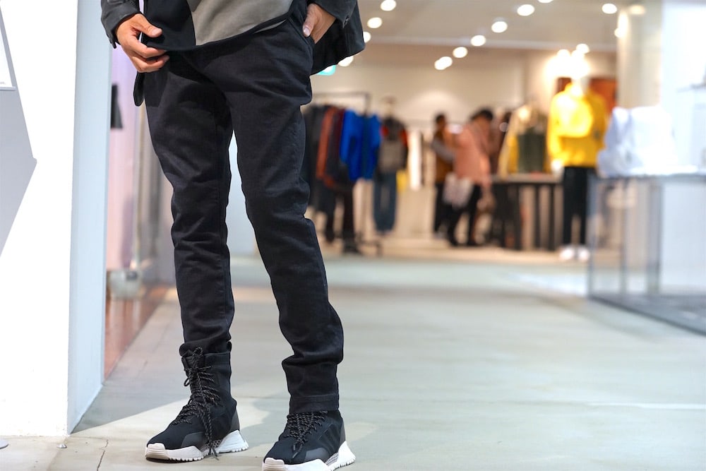 The depth of the crotch is not too deep, it is a new type of stretch denim with a relaxing fit around the waist.