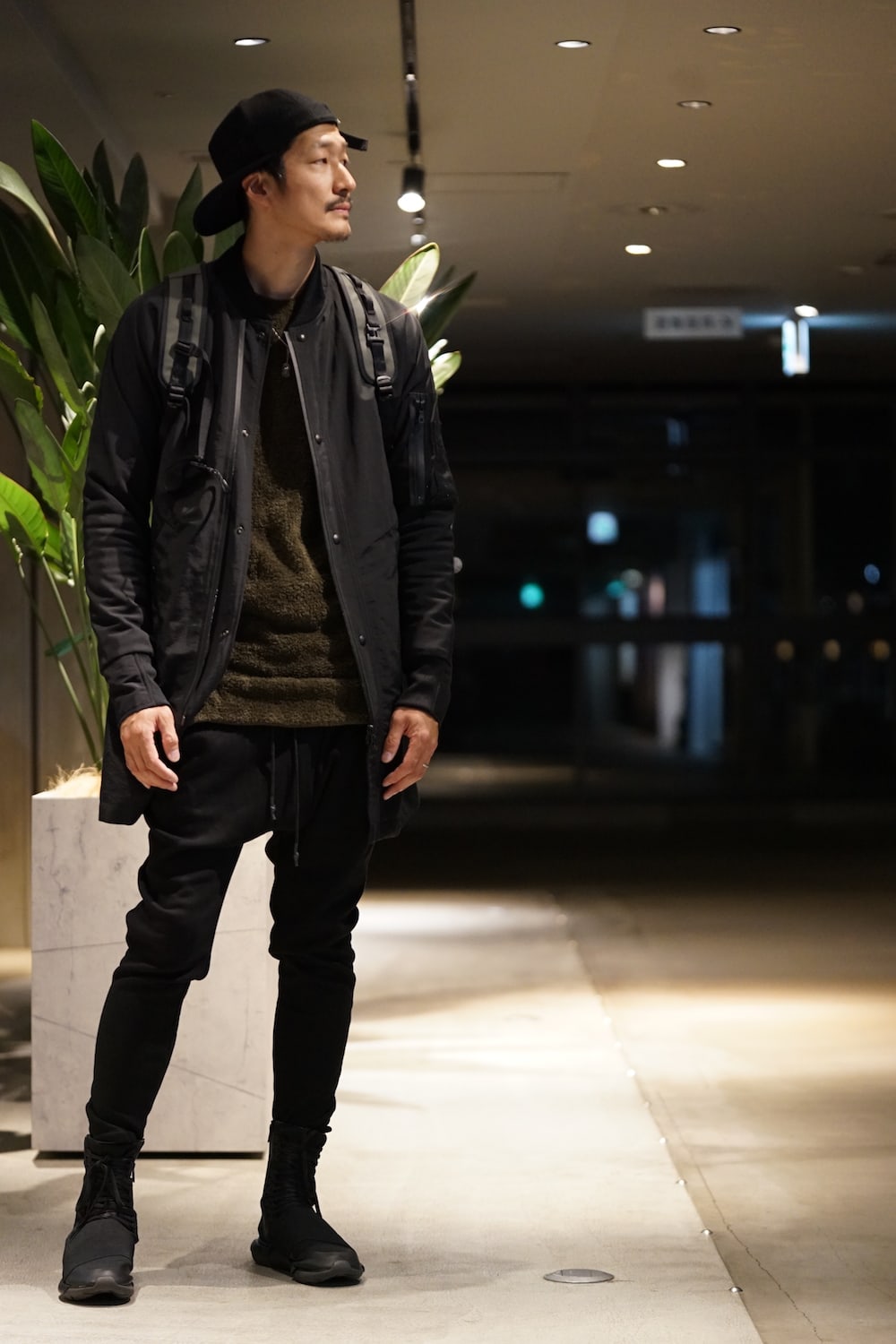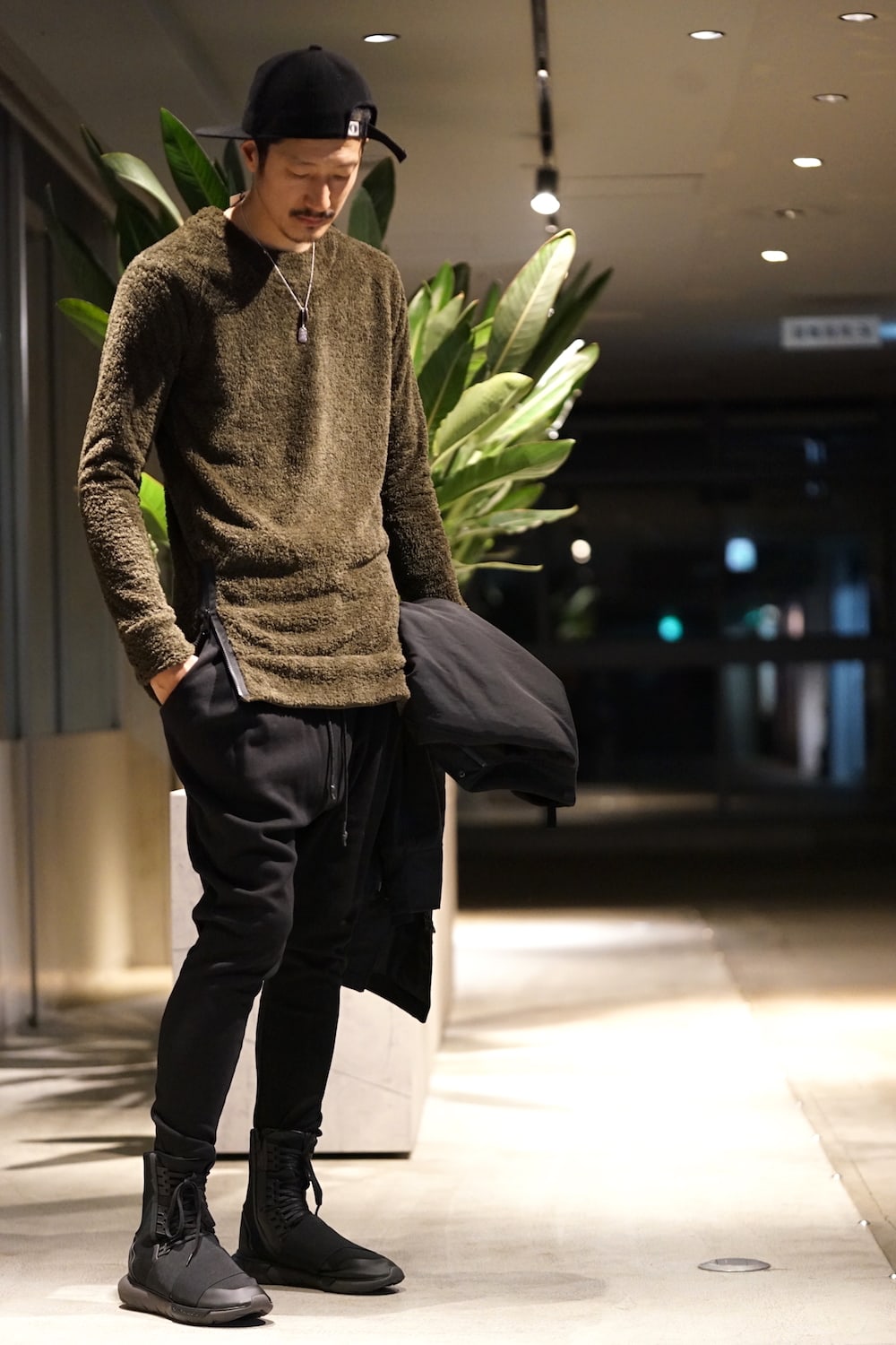 The inner is the Long Boa Jersey which is a strong piece to have for the mid winter. By opening the hem fasteners, you can see the exquisite balance of the pants.