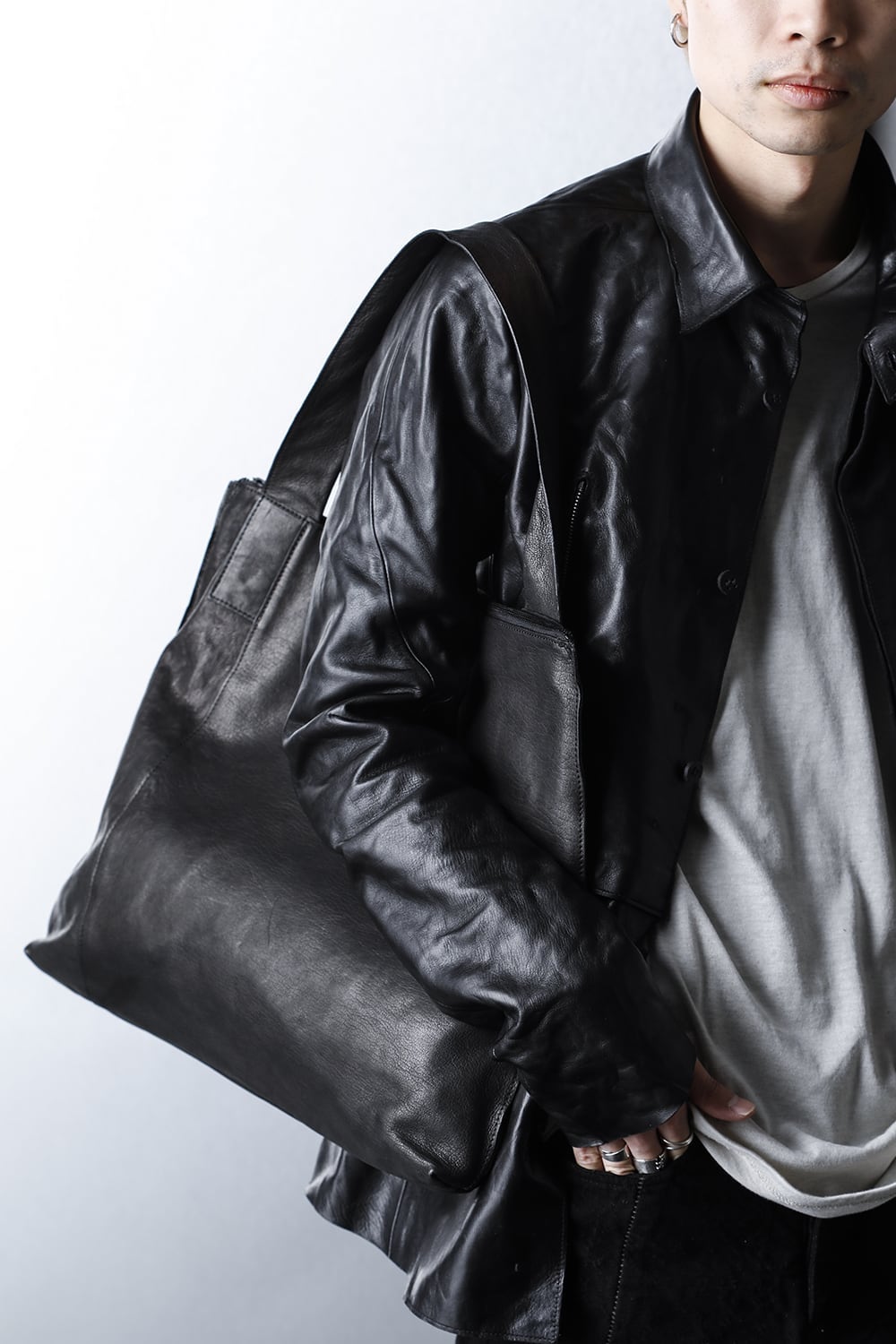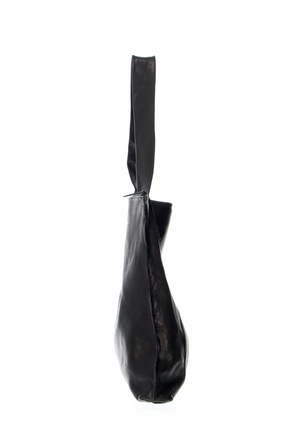 This unisex one-shoulder bag has a square shape when placed flat and a triangular shape when held. The sheepskin's soft impression and the diagonal one-shoulder design serve as accents to the design. The A4 size bag is large enough to store vertically and horizontally, and the main opening has a zipper opening. It has a simple design but is designed to be used as a main bag. The material is sheepskin that changes its expression in a relatively short period of time, and loses its firmness and natural draping and luster. Since this item is made of leather with little firmness, it does not take up much space when you hold it, and you can feel how well it fits. The design is very simple and you can enjoy the change of the texture and expression of the leather.