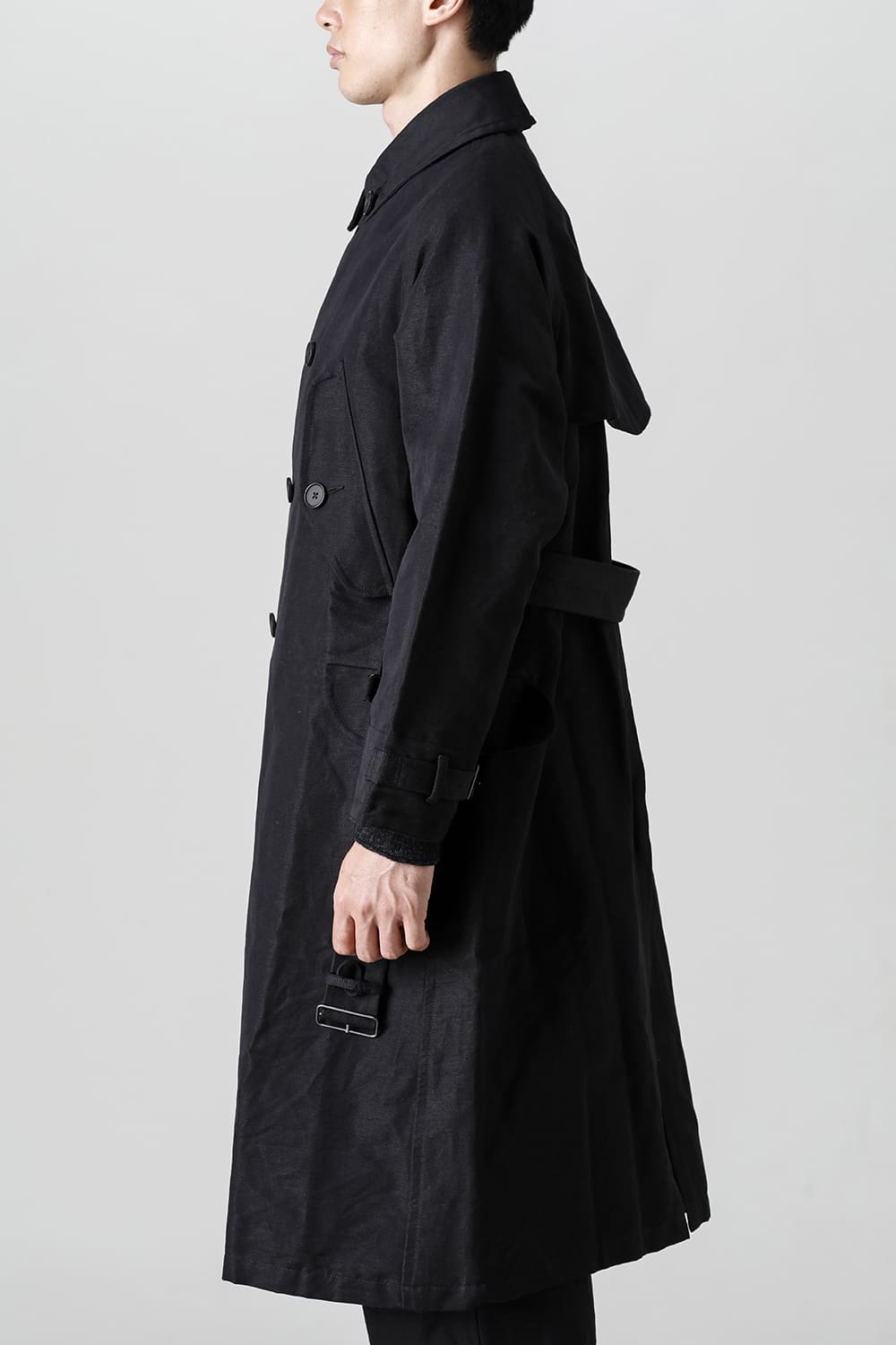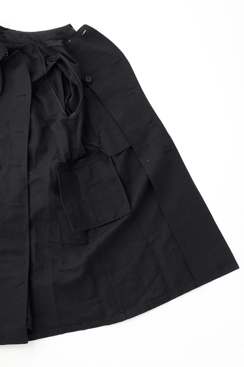 Based on a trench coat and a 60's car coat, both designs are mashed up. Since this item has a standard A-line silhouette, there is no doubt that it can be used daily. This item has no lining, but it is made of heavy fabric so it can be worn in cold seasons. There are many buttons on the front, which is very brand like of them, and the 4 pockets are very convenient. This original textile is made of cotton hemp and linen woven together in high density. By using hemplinen to give it tension, it creates a vintage texture.