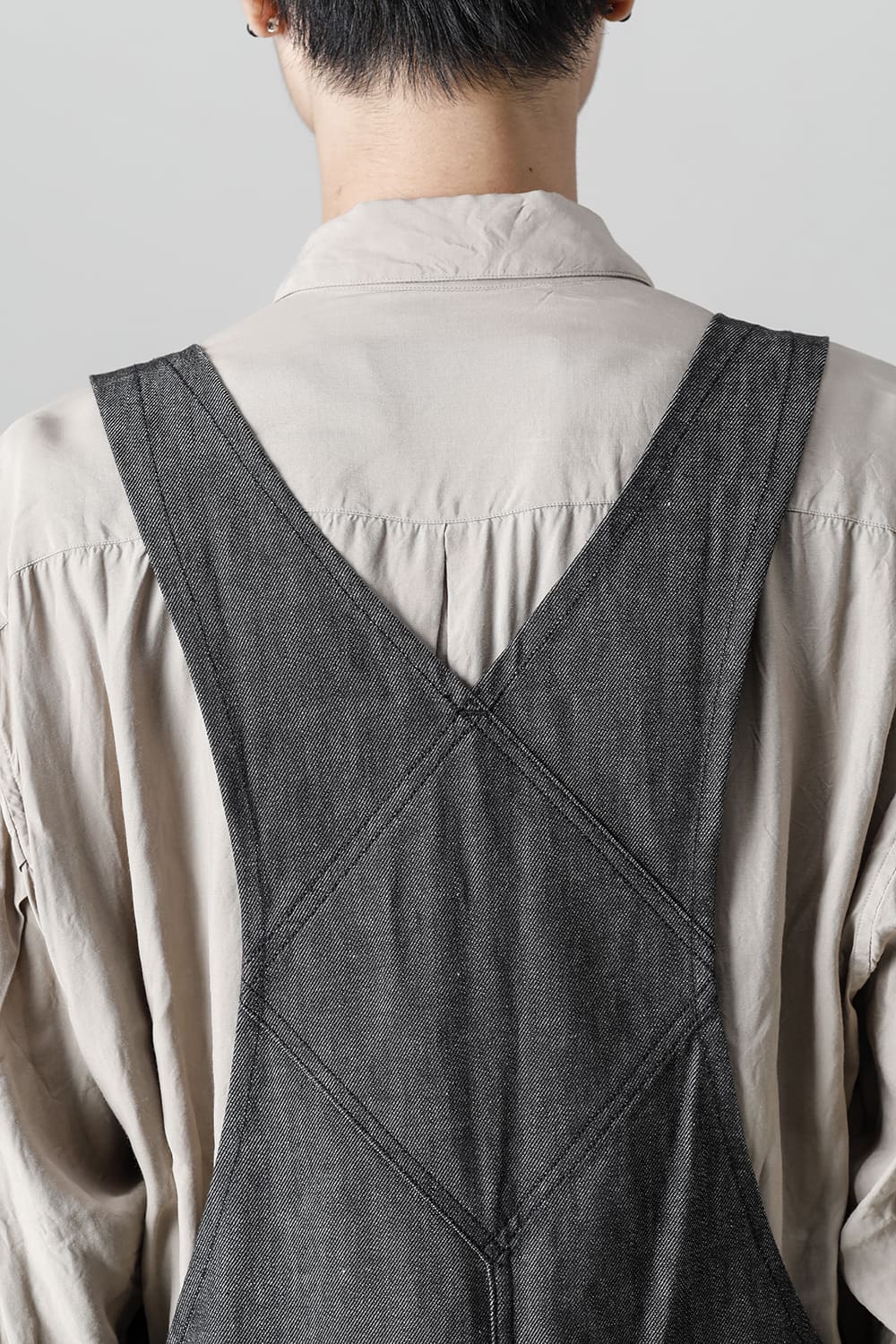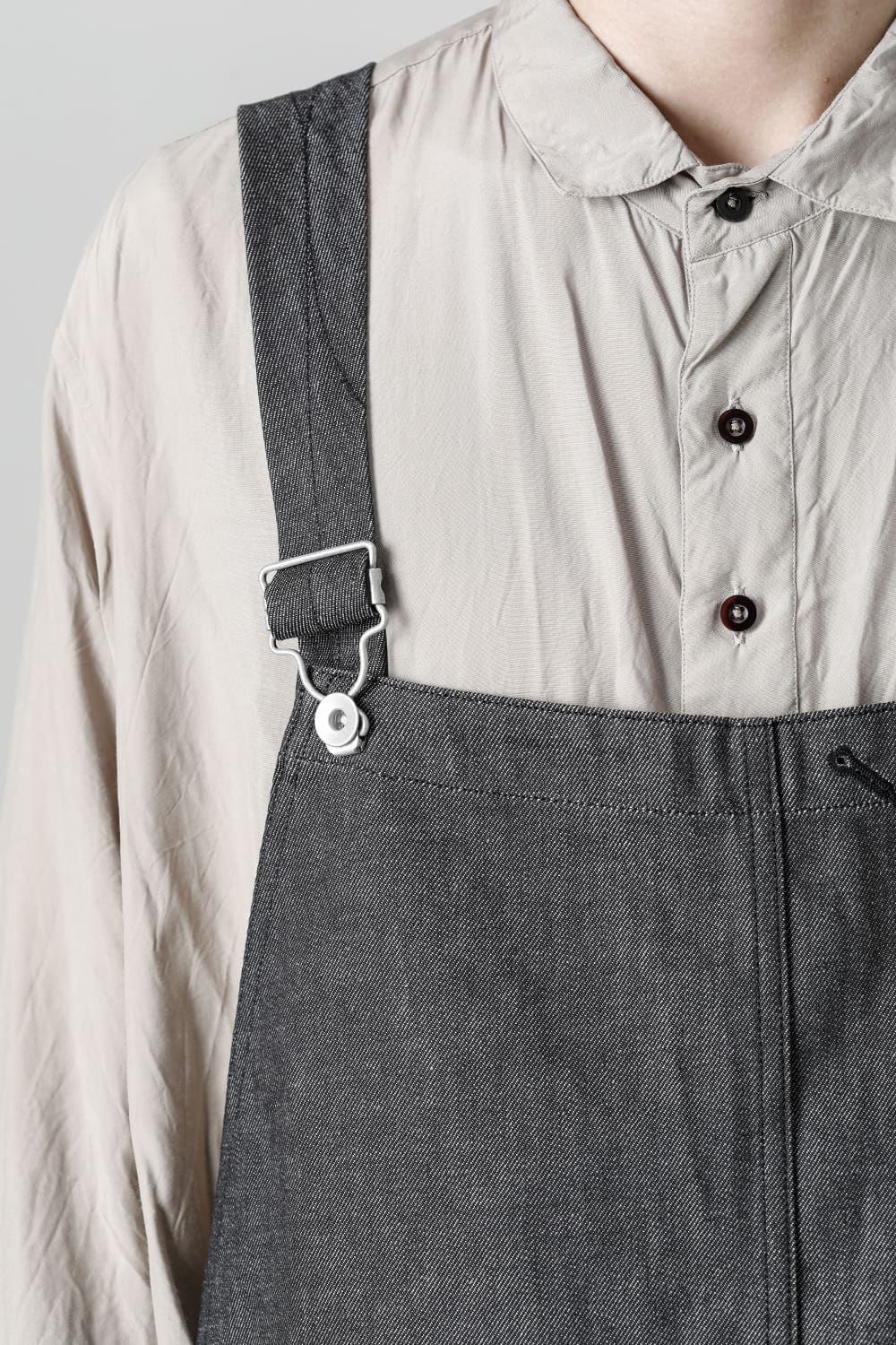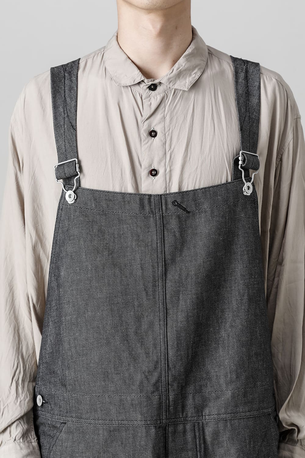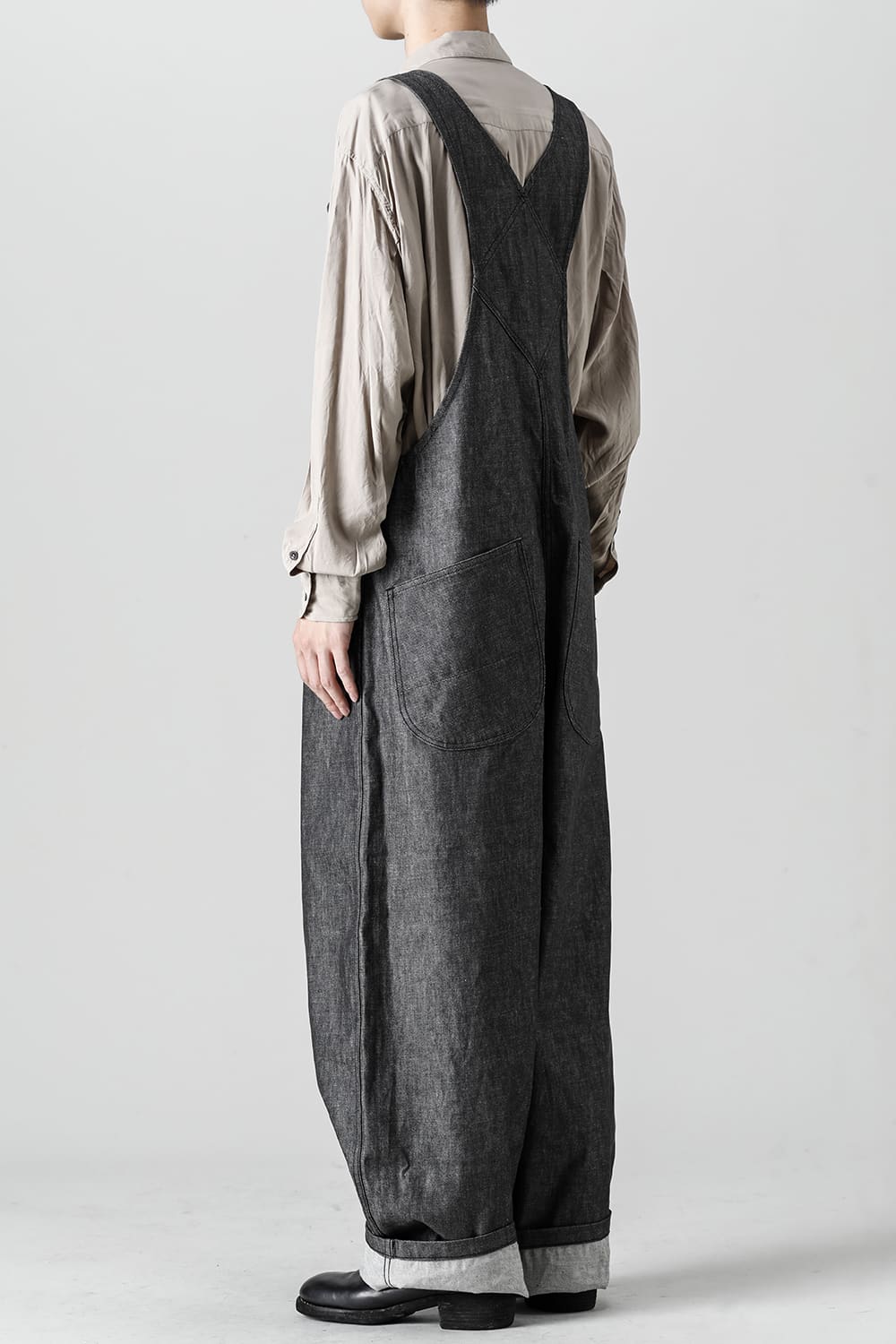 Oversized overalls. While firmly feeding back the details of conventional overalls, elements of low crotch and oversized mode fashion are embedded. These overalls are a clear distinction from the workwear overalls. The material used is from Okayama, famous for its denim fabric. The 10 oz. light-weight fabric has a bouncy feel that accentuates the styling beautifully.