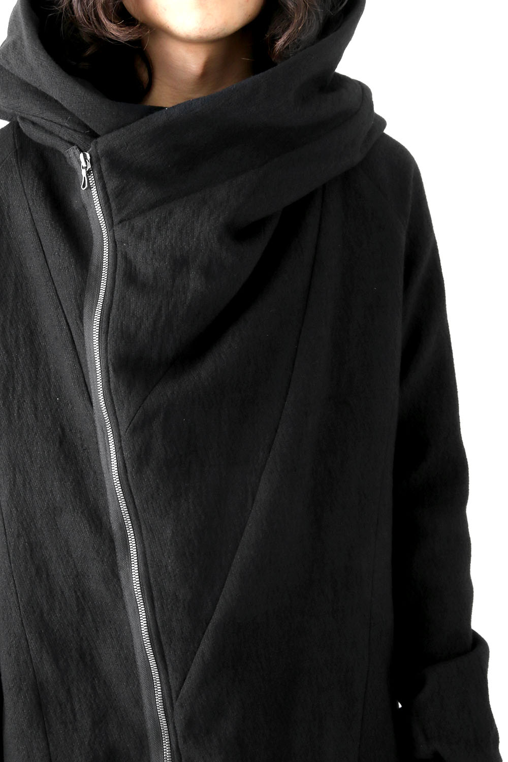 The hood jacket is made with wool and linen blended fabric with Kersey weave.