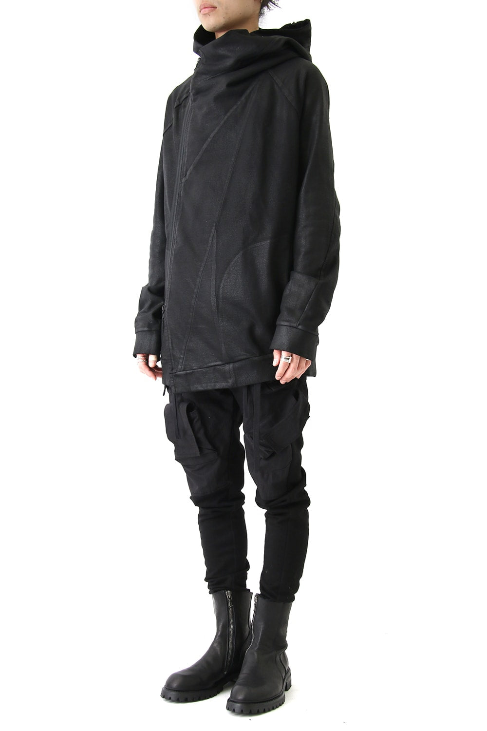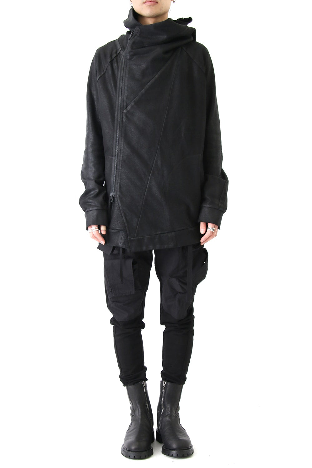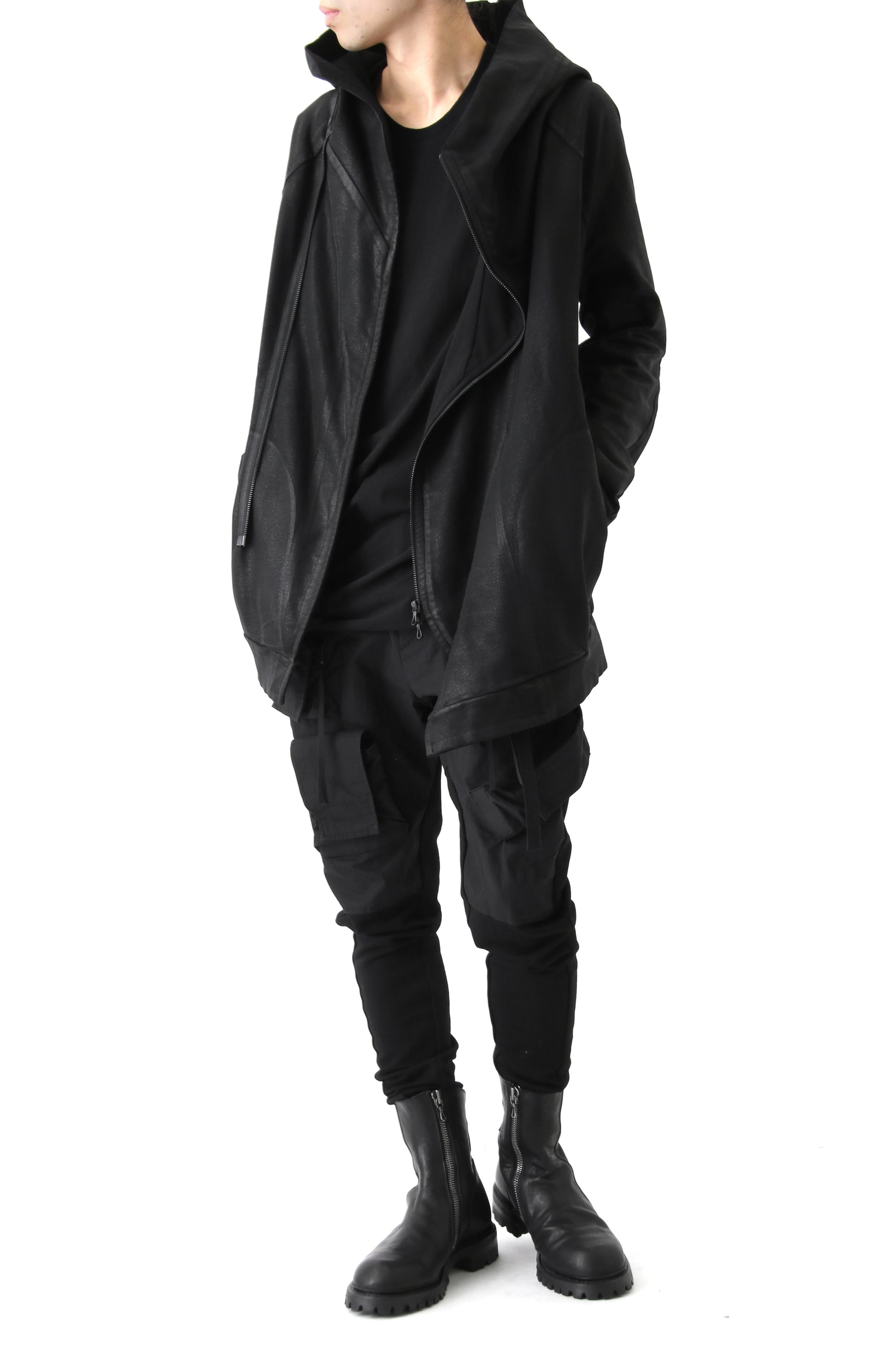 GEOMETRIC COATED ZIP UP HOODIE - JULIUS