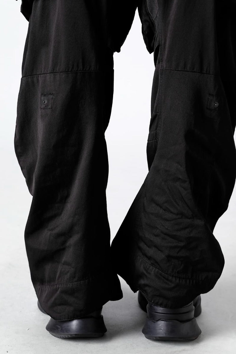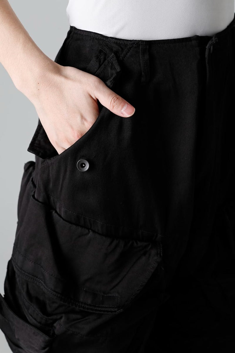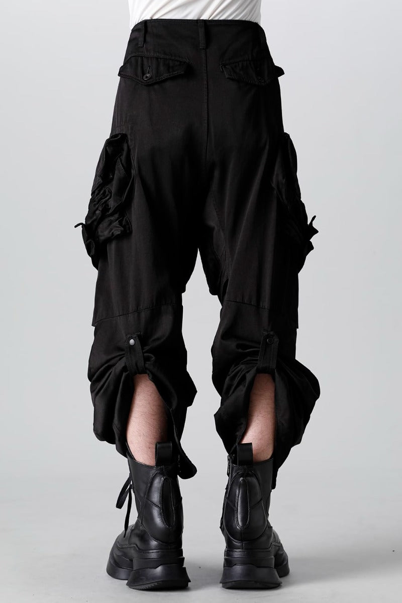Also, the back knee area is equipped with snap buttons, and by attaching the built-in cords and snap buttons, the hem can be pulled up and you can enjoy the change in silhouette.