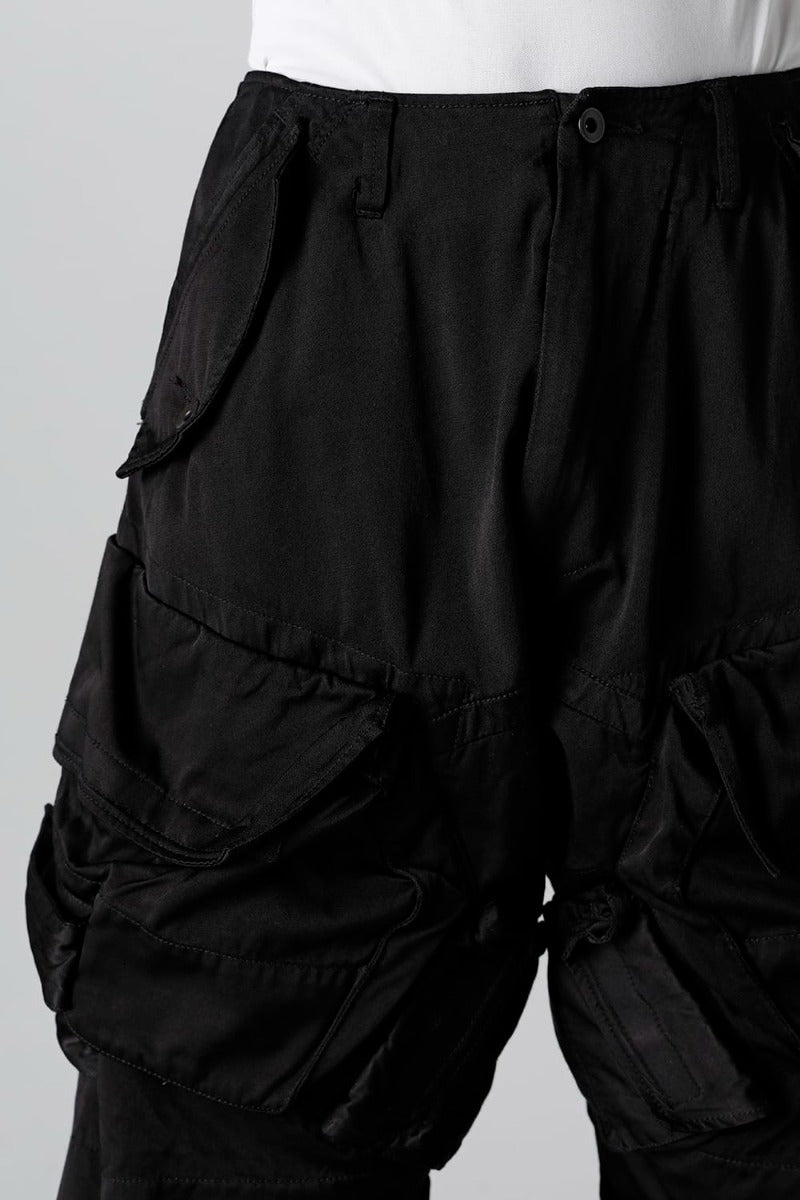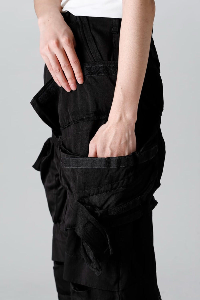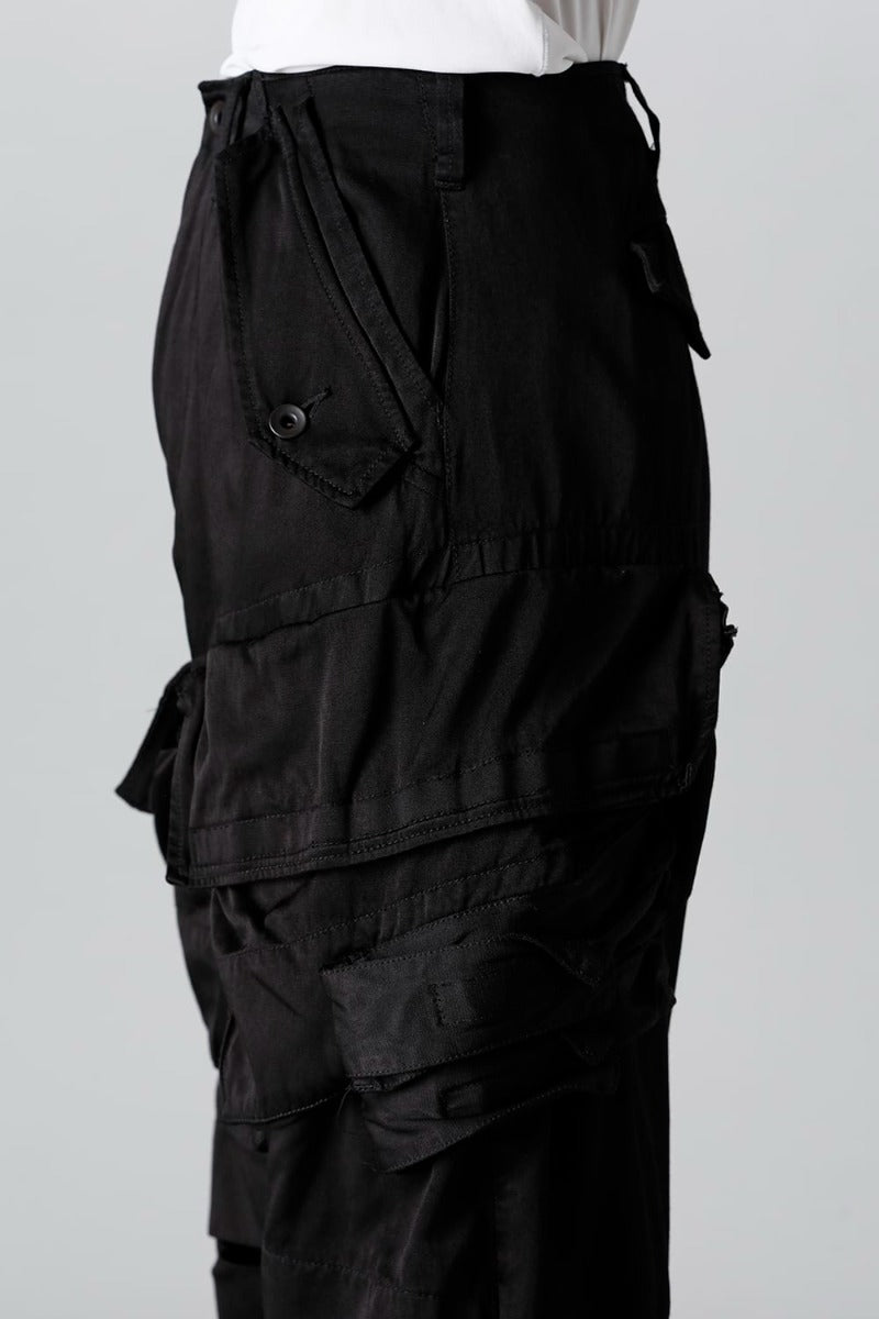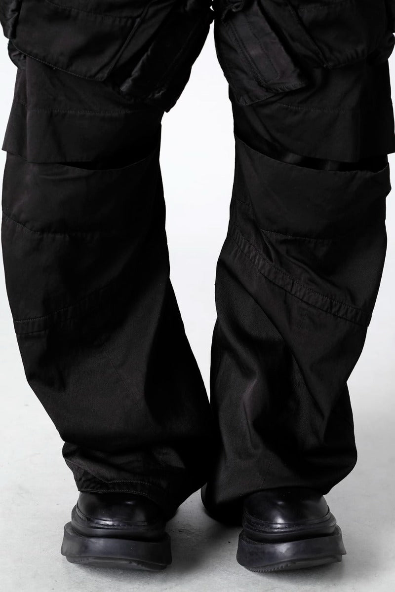 Also, the back knee area is equipped with snap buttons, and by attaching the built-in cords and snap buttons, the hem can be pulled up and you can enjoy the change in silhouette.