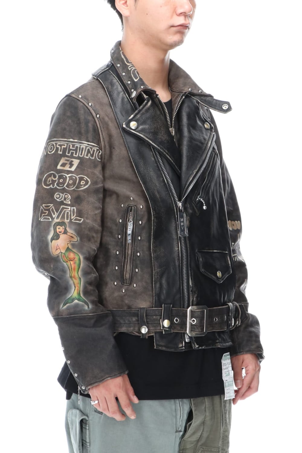 ・The front part of the double rider's jacket is docked on top of the single rider's jacket.