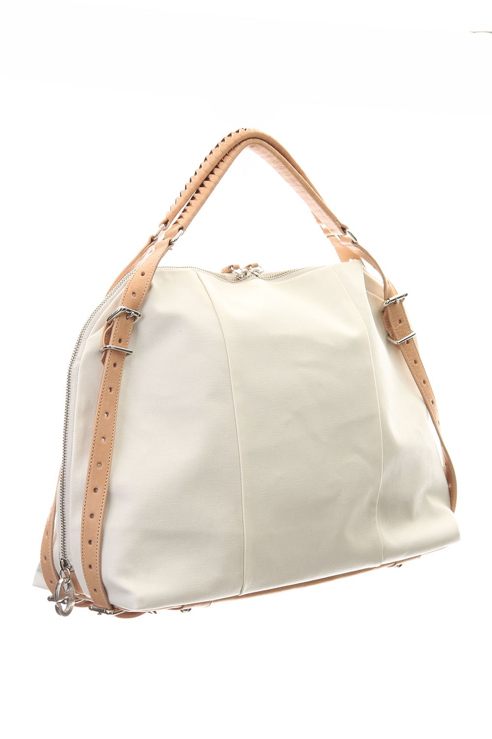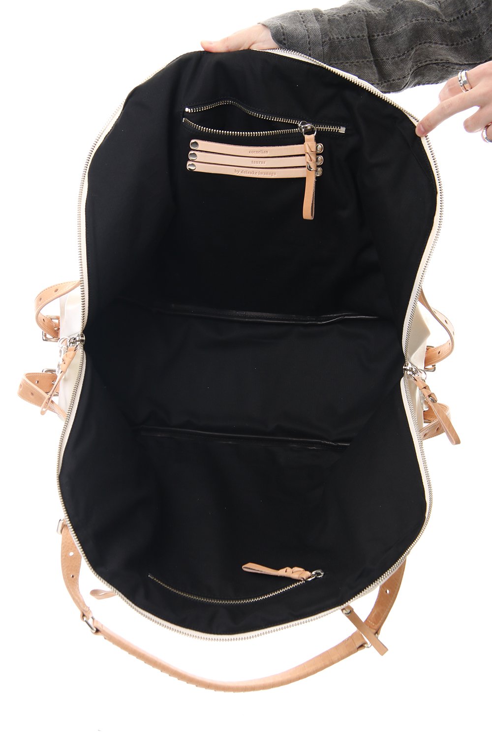 The handle goes through the bag and you can use it in various ways by adjusting the length. The zipper on the body is a special one as it has four sliders.