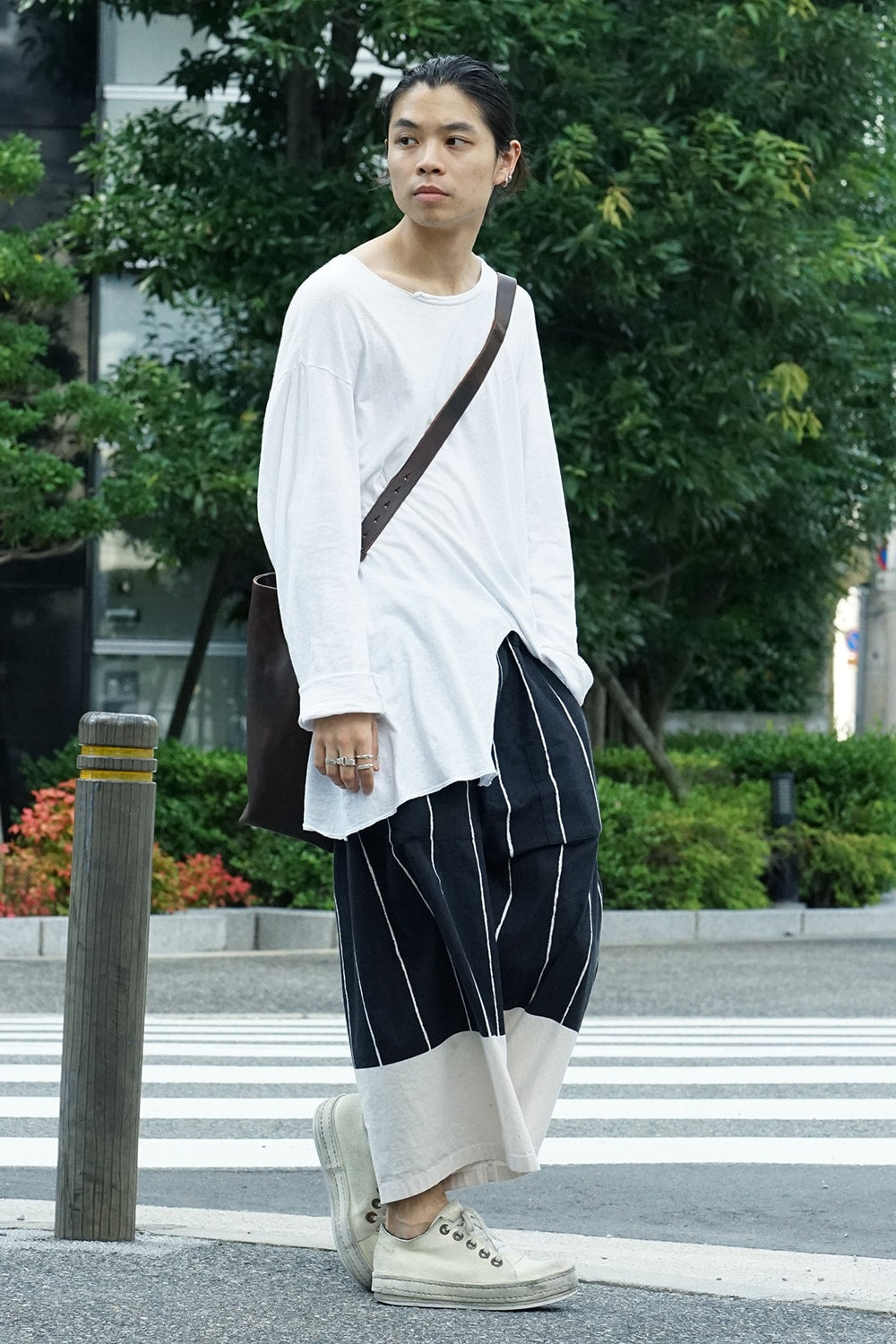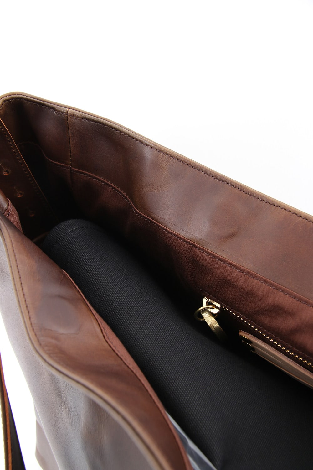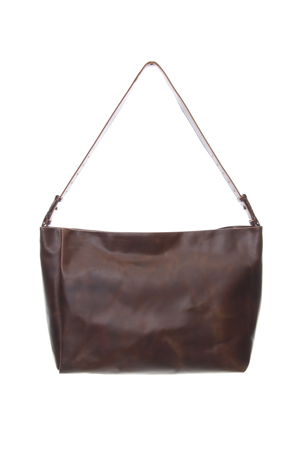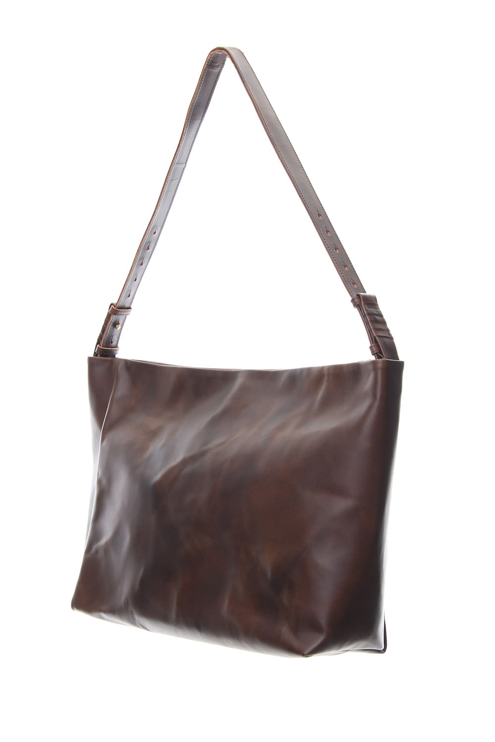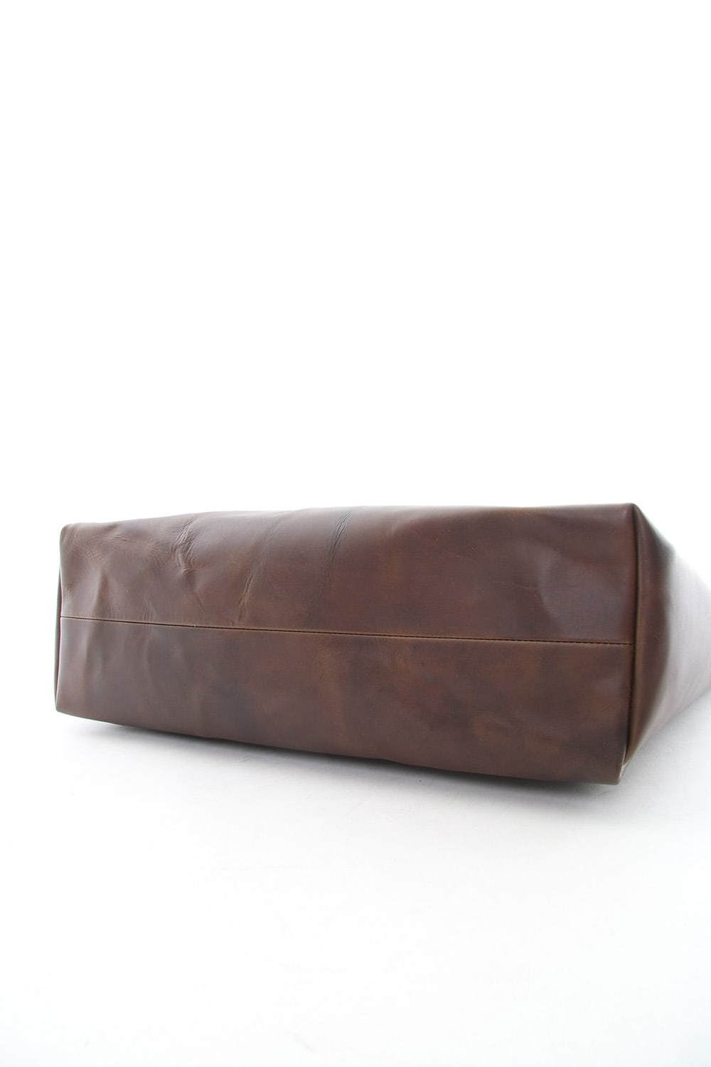 The new work "Hand piece big shoulder" was announced in the collection theme of "manual work and light”. The theme is to not have any metal fittings as much as possible with one piece, giving a minimal but still expressive bag. It is possible to open and close by the magnet at the opening. When diagonally hung, it has a beautiful shape that integrates with the style along the body. The part along the body has been treated so that seams do not hit which is the brands’s attention to detail and care. The material is a hand brown of Shave Steer which was newly added from 18-19 AW. The steer has a sense of texture like nubuck as the silver was shaved off a little; it was hand crafted by hand painting to dark brown to and then made into a foundation of a distinctive expression. In addition, by dyeing a thin blanc thinner than the hand painted, it gave depth to the material. It is leather which you can enjoy for a long time with the beautiful changes.