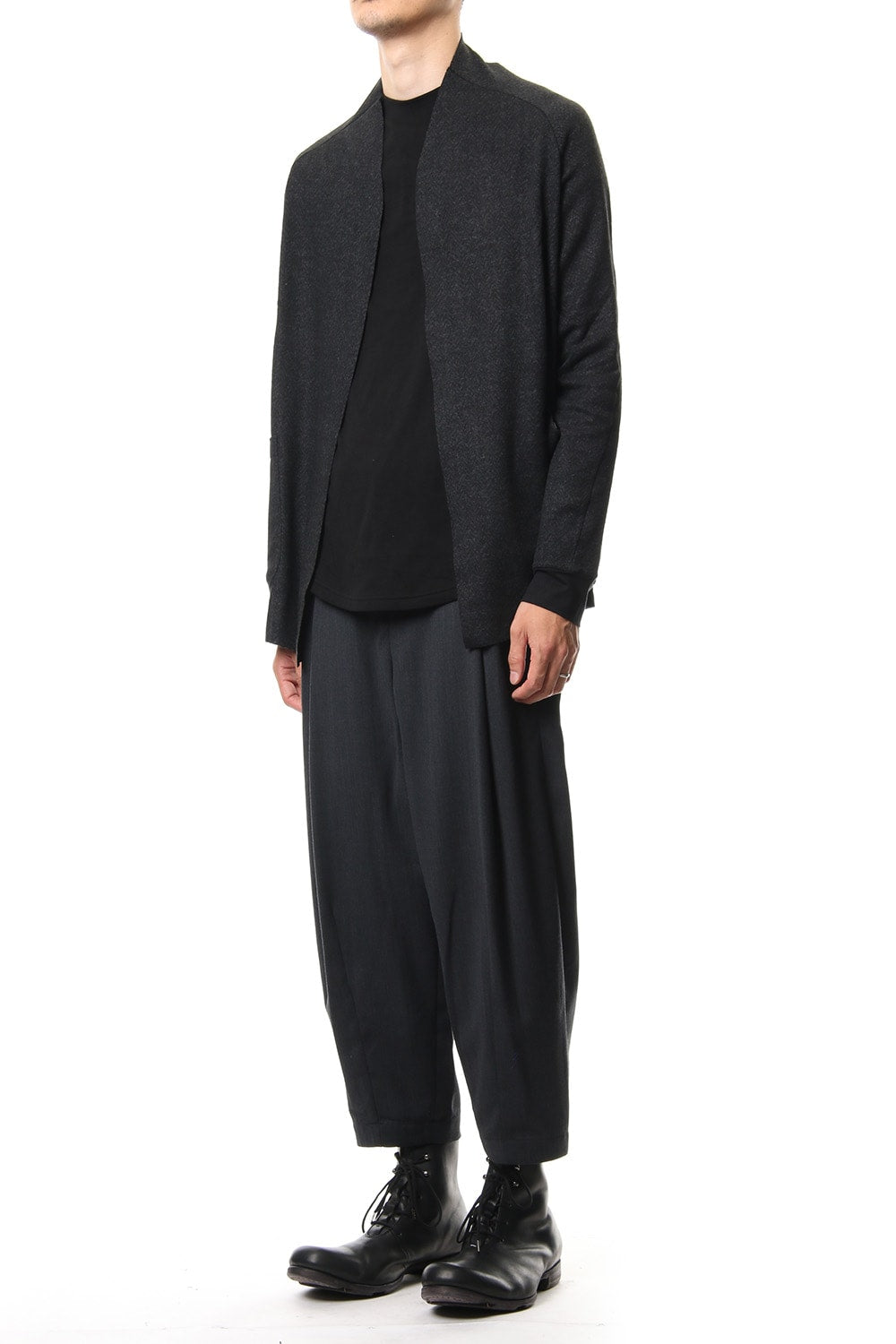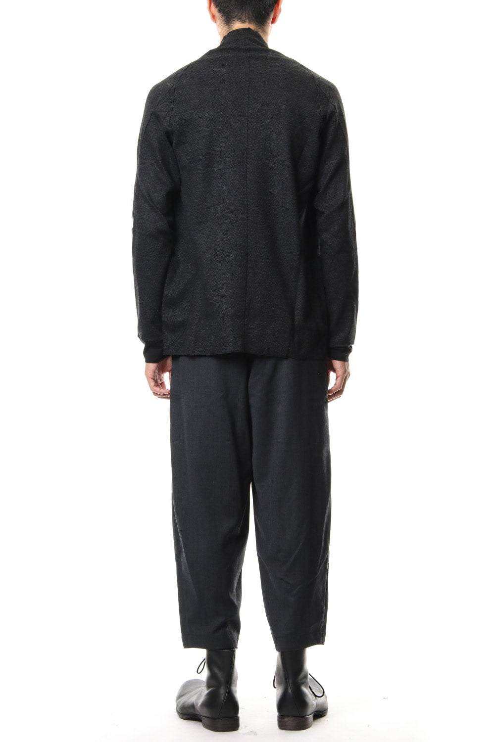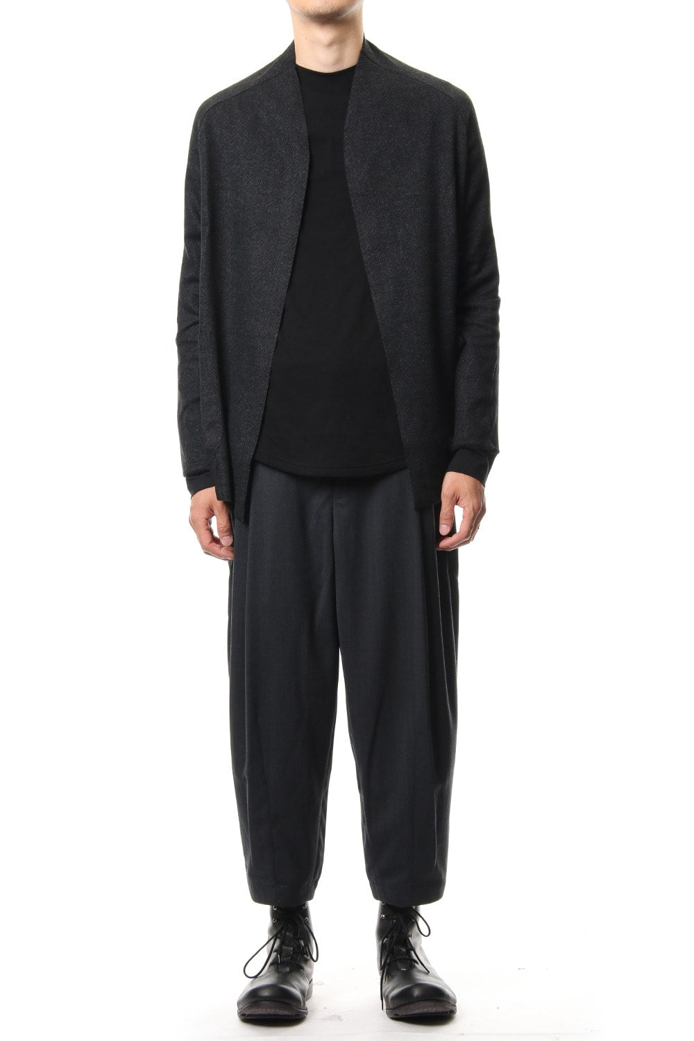 The material is made with fabric by Faliero Sarti. The herringbone pattern was made broken down by needle punching. It has a loose sizing so that you can wear it on top of a jacket. This is the short length type.
