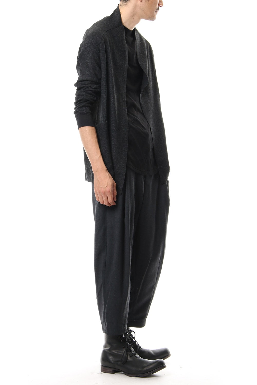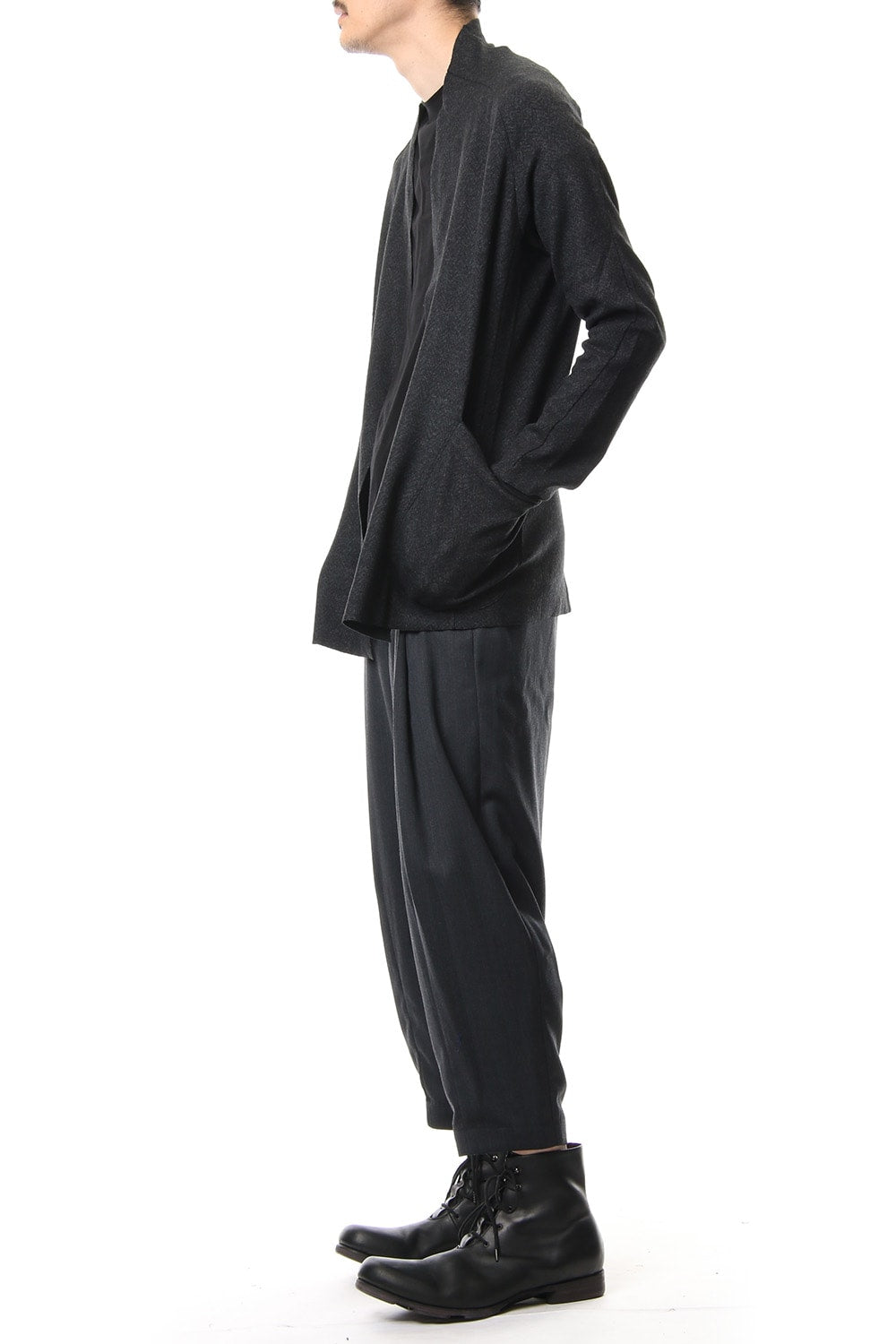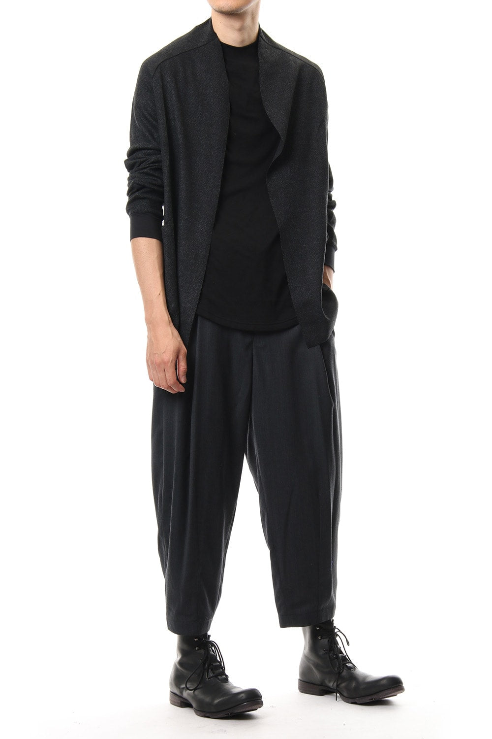 The material is made with fabric by Faliero Sarti. The herringbone pattern was made broken down by needle punching. It has a loose sizing so that you can wear it on top of a jacket. This is the short length type.