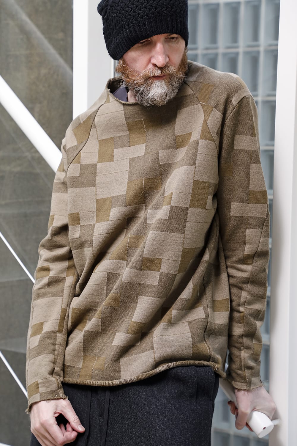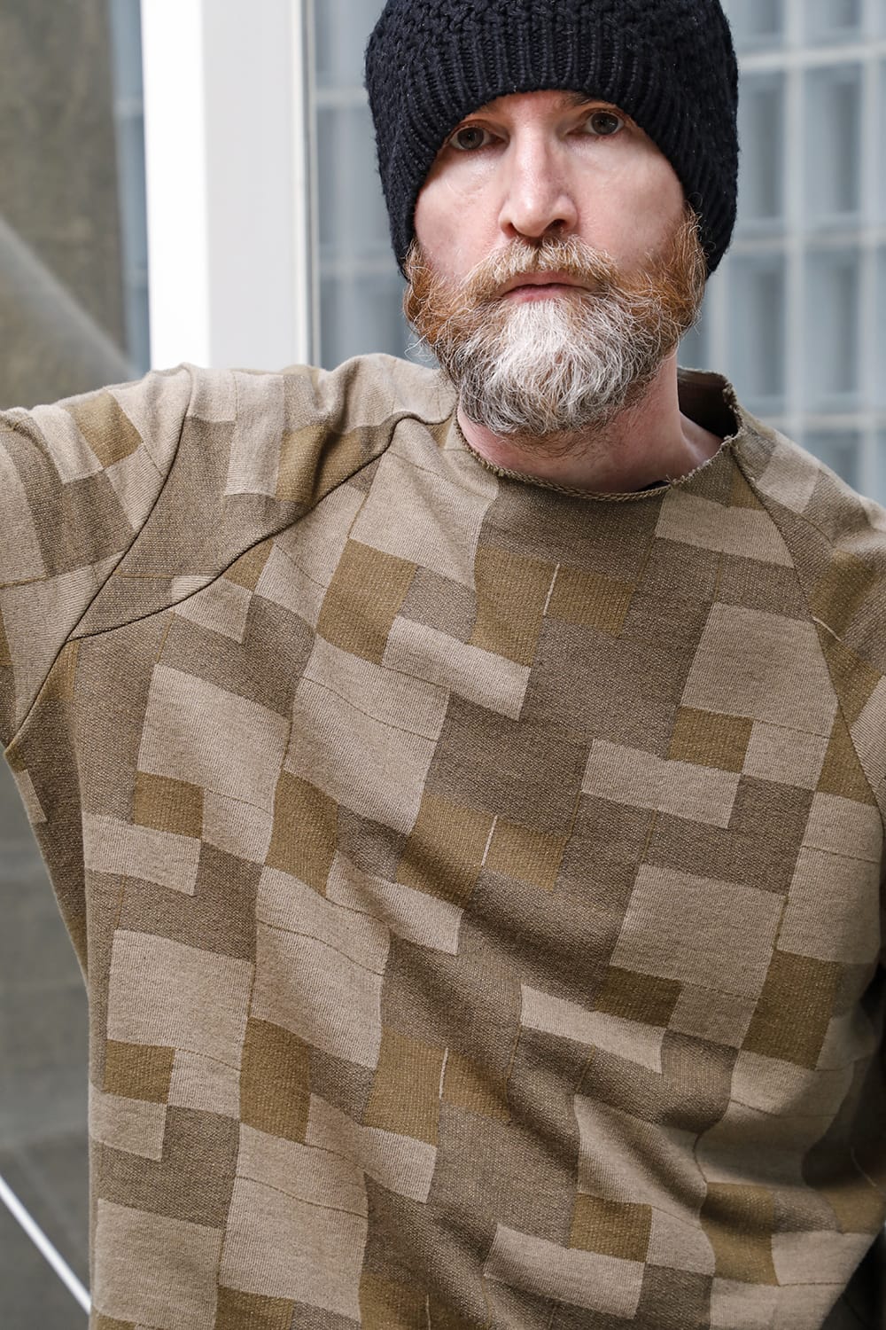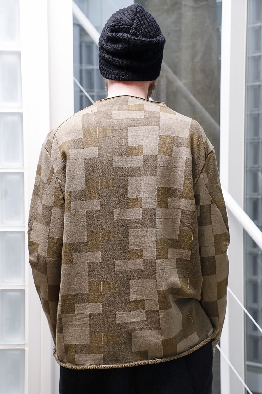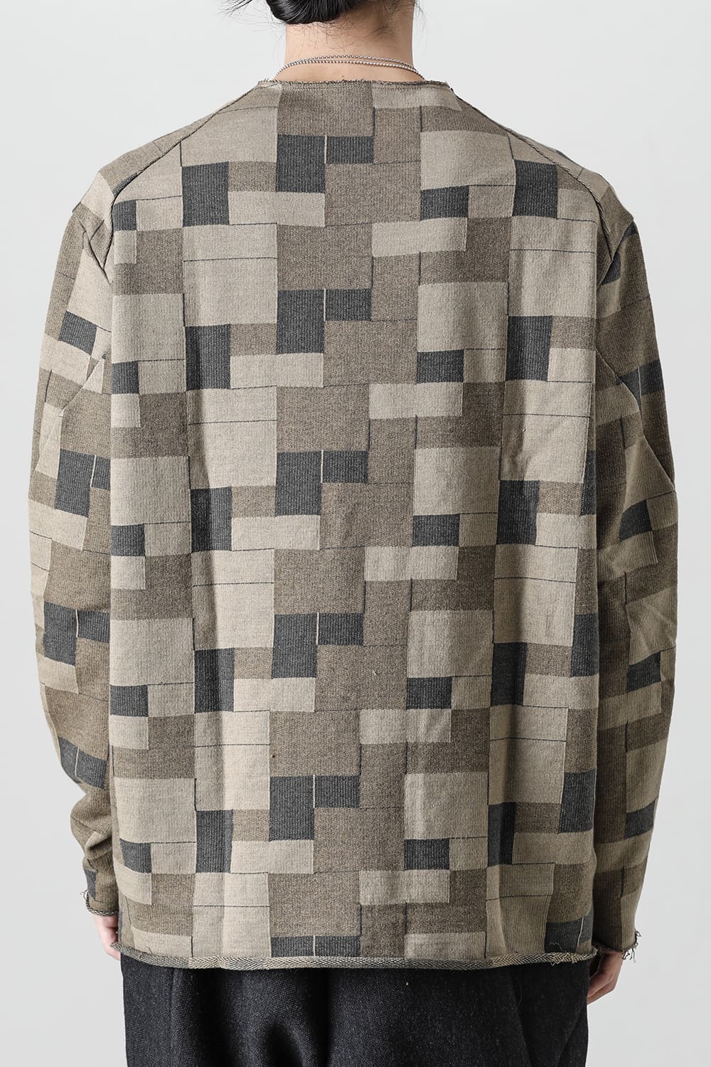 The outer fabric is a multicolored jersey made with a jacquard machine.