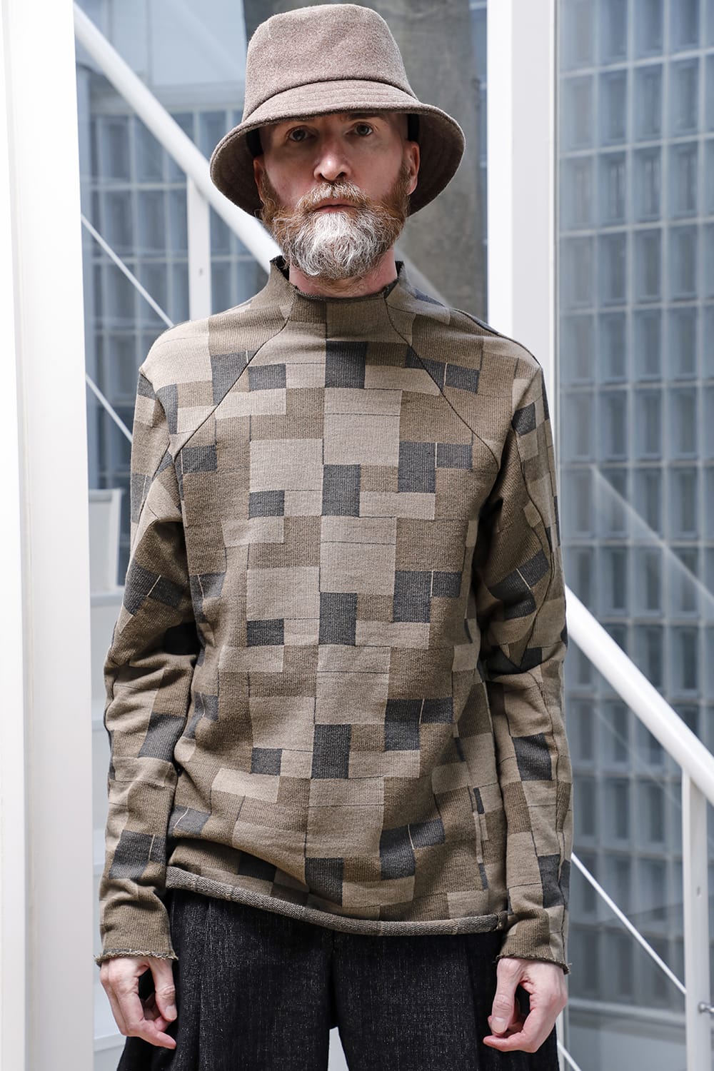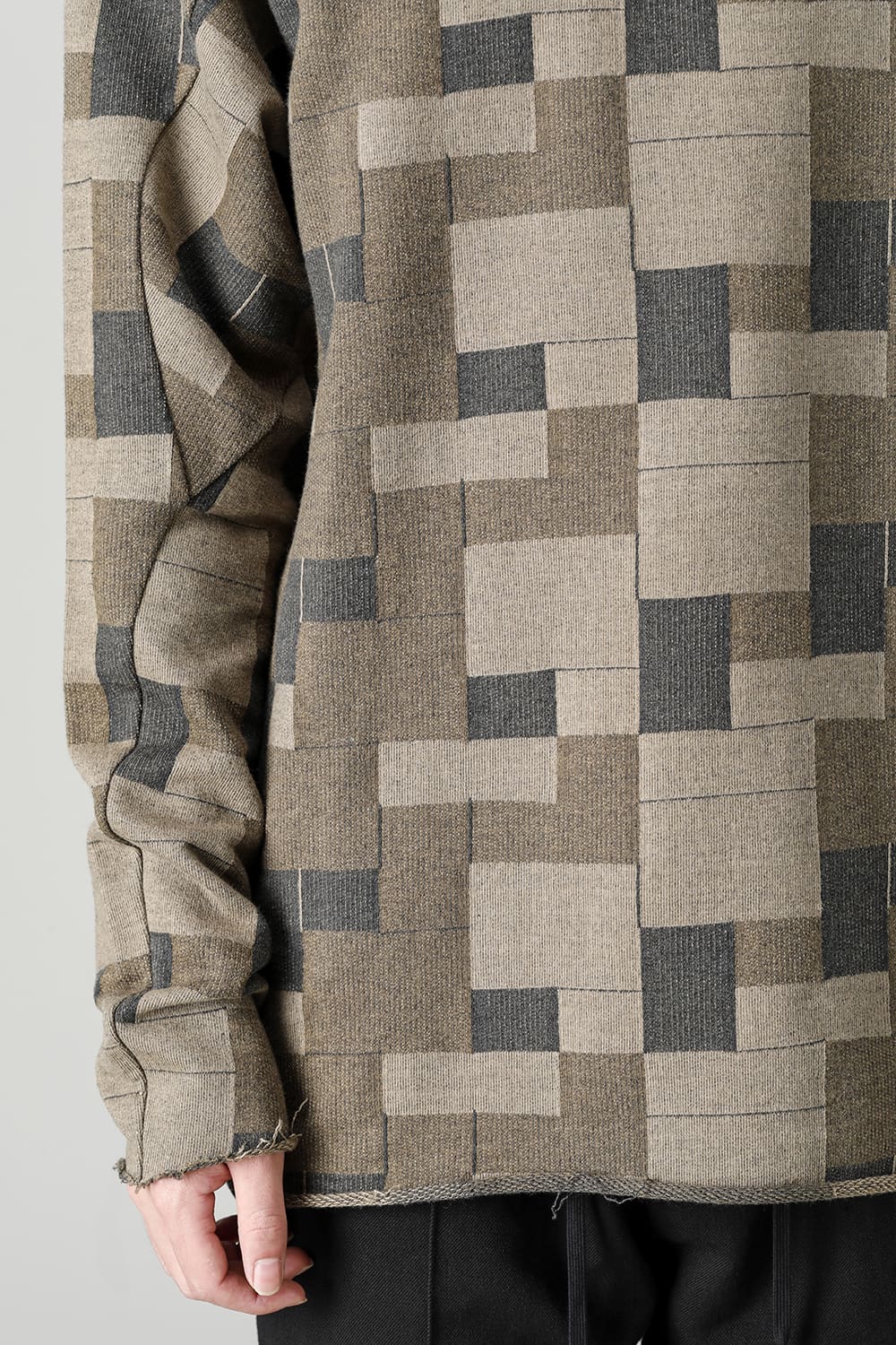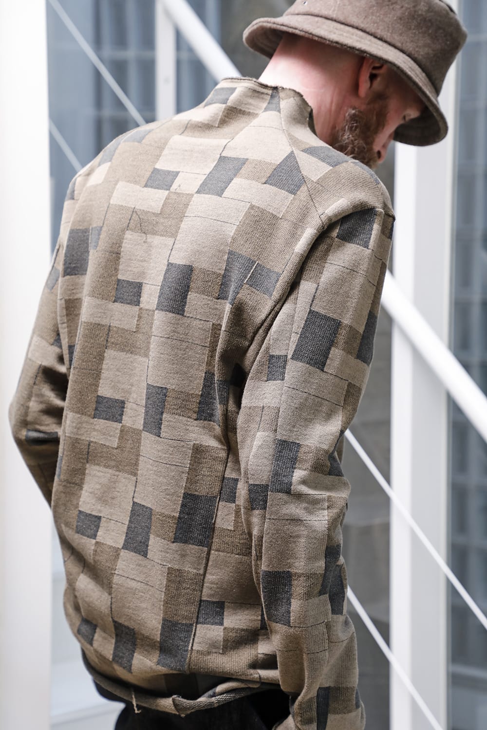 The outer fabric is a multicolored jersey made with a jacquard machine.