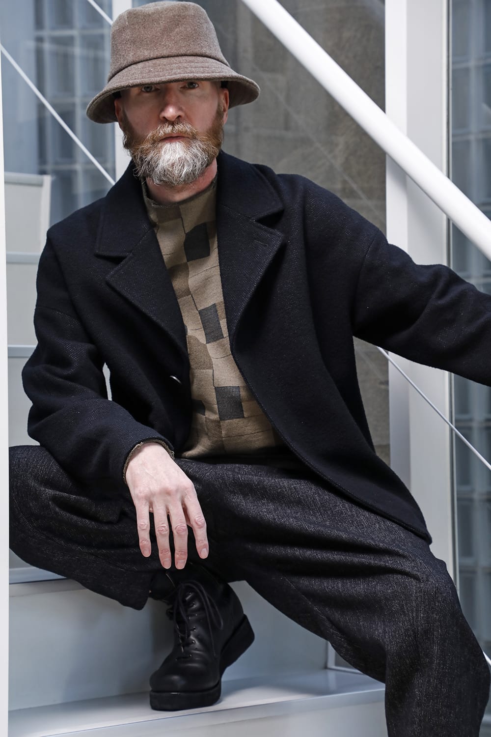 The neckline, hem and cuffs are cut off and the neckline is a bottleneck.