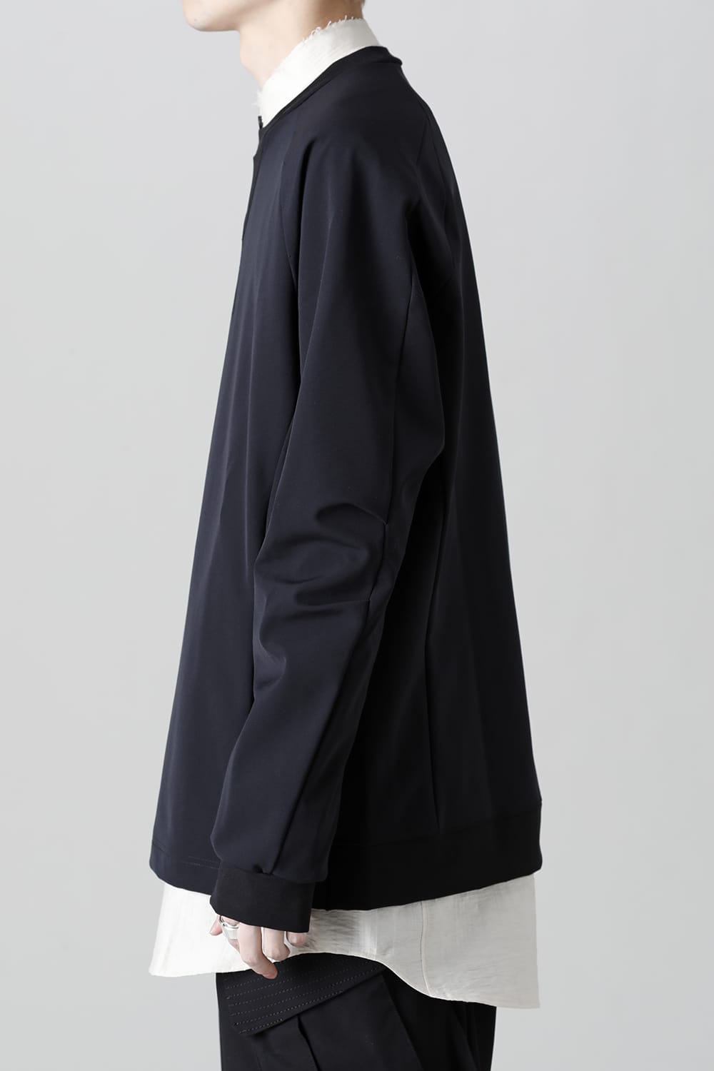 The front side is made of polyester and the back side is bonded with merino wool jersey.
