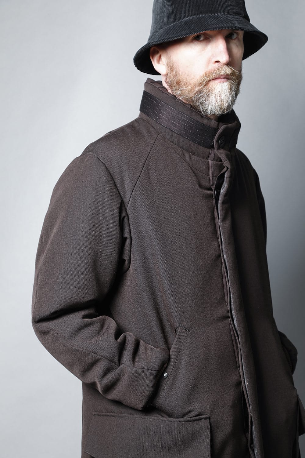 This coat is made by Faliero Sarti in Italy. It is made of virgin gabardine from CARIAGGI.