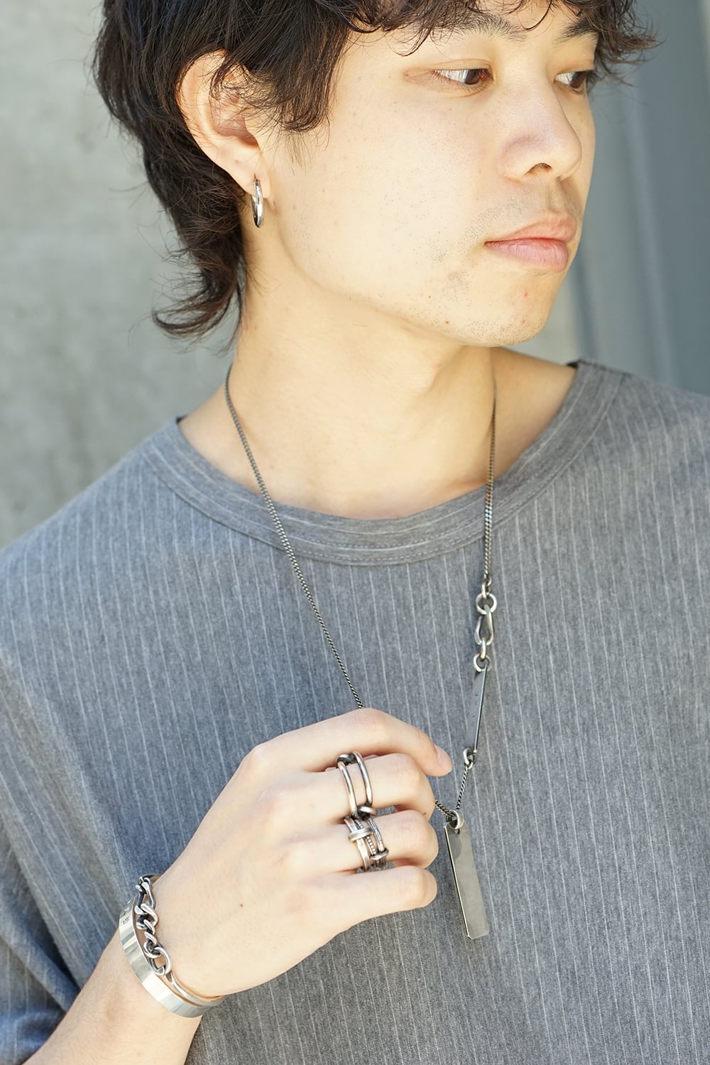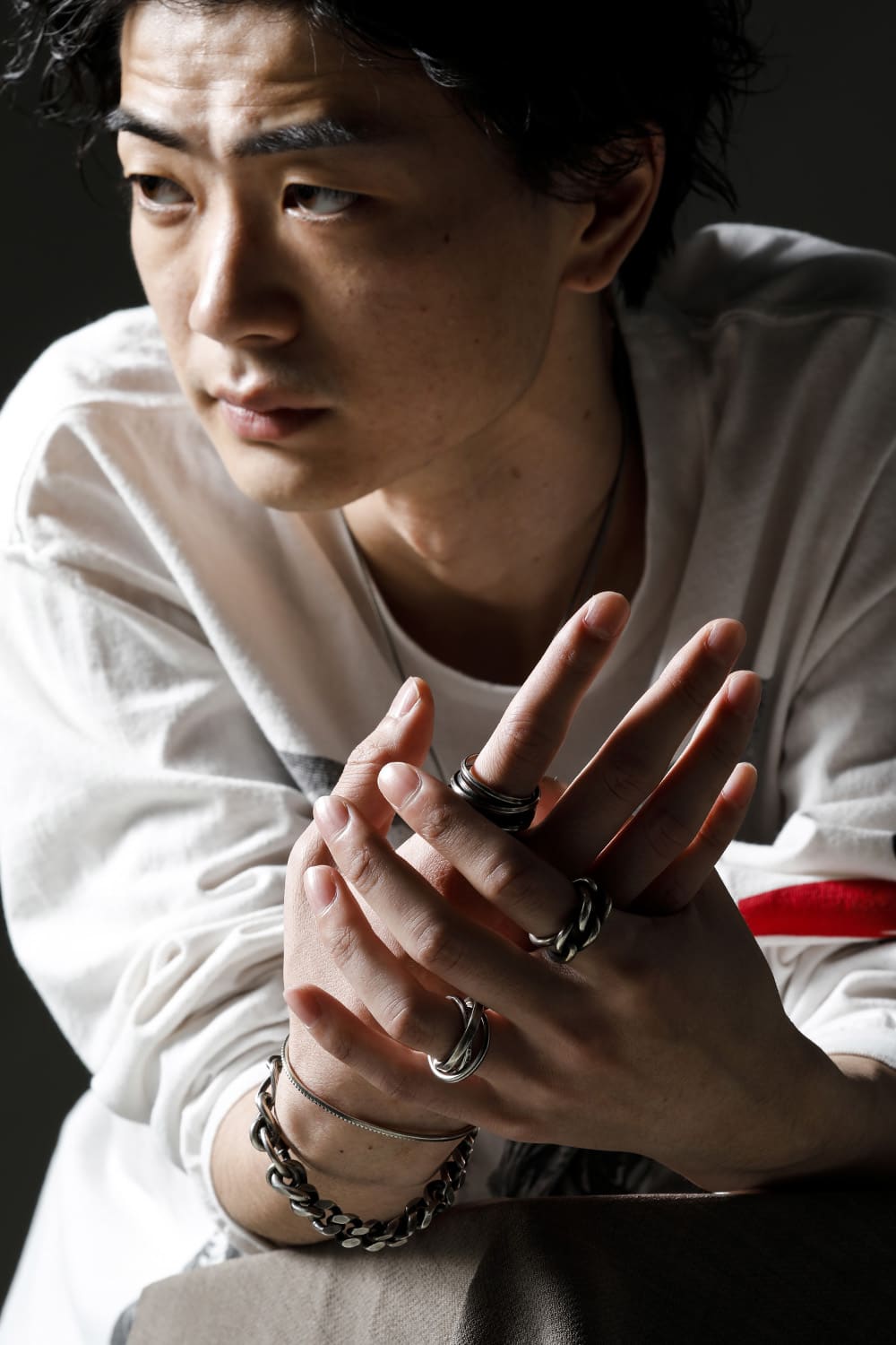A deformed ring with a chain motif. It is a design with a contrast in the gap and the exposed parts were done by oxidation processing.