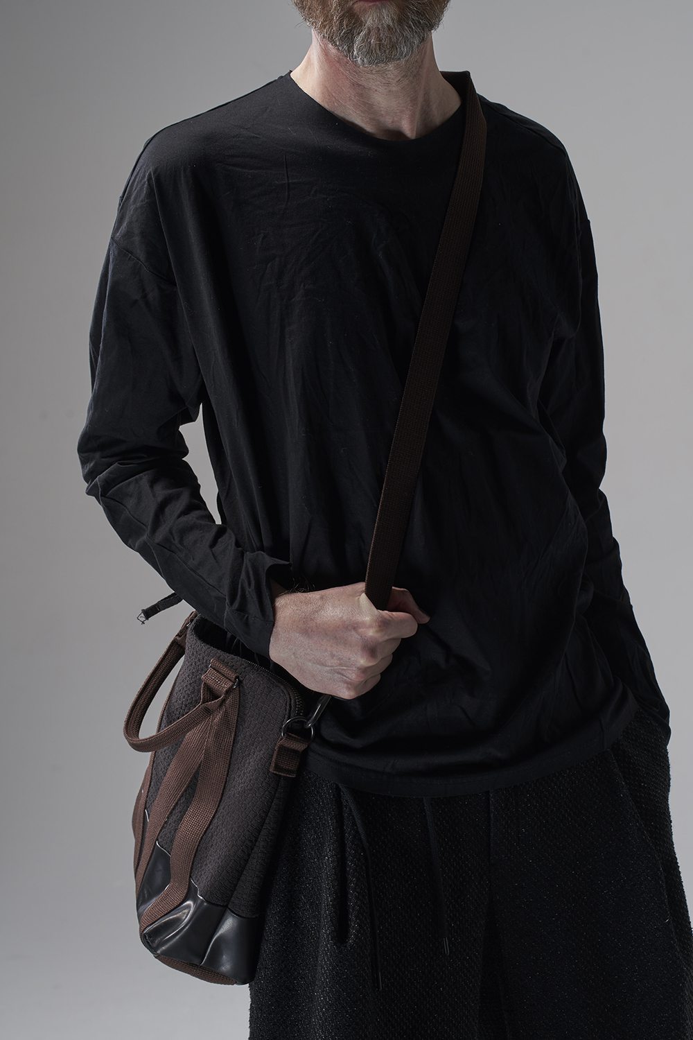 This is a shoulder bag made of baby buffalo from GUIDI in Italy, and virgin wool from Faliero Sarti in Italy.