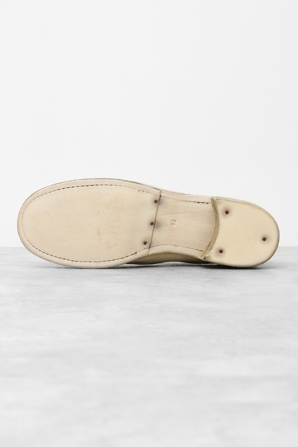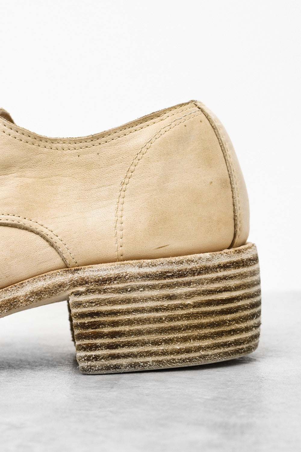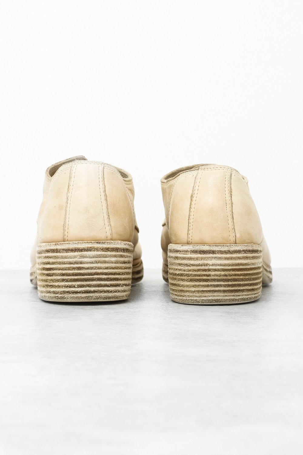 The Derby Shoes are one of Guidi's staple items and have become a fan favorite since 2005. Very simple in form and the attention to detail in the treatment of the leather and construction can be seen clearly.For those searching for a simple pair of derbies with strong presence, these shoes are a recommendation.The soles are a stacked double sole.
