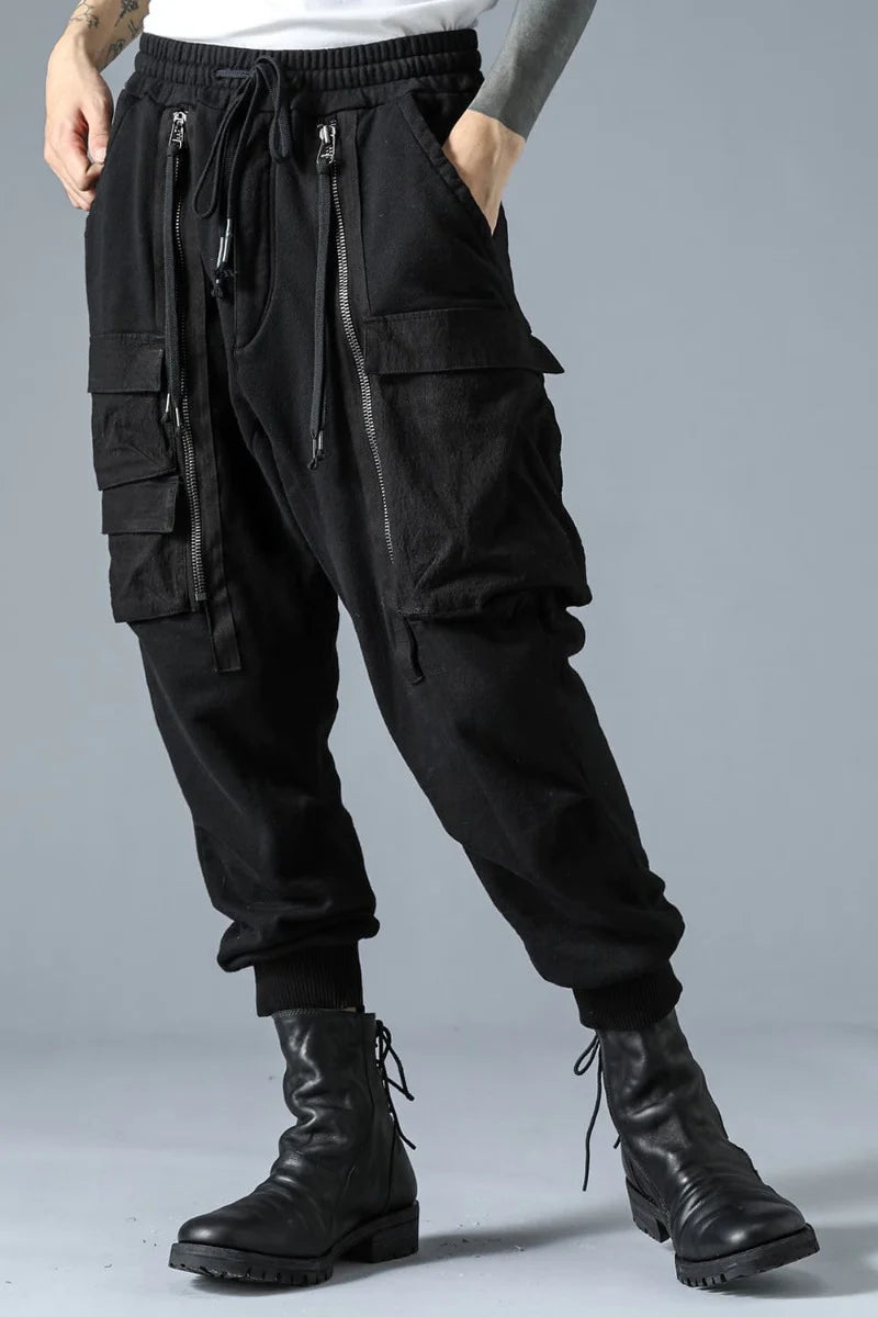 Super Stretch Cotton Denim Hanging Pocket Cargo Jog Pants Black