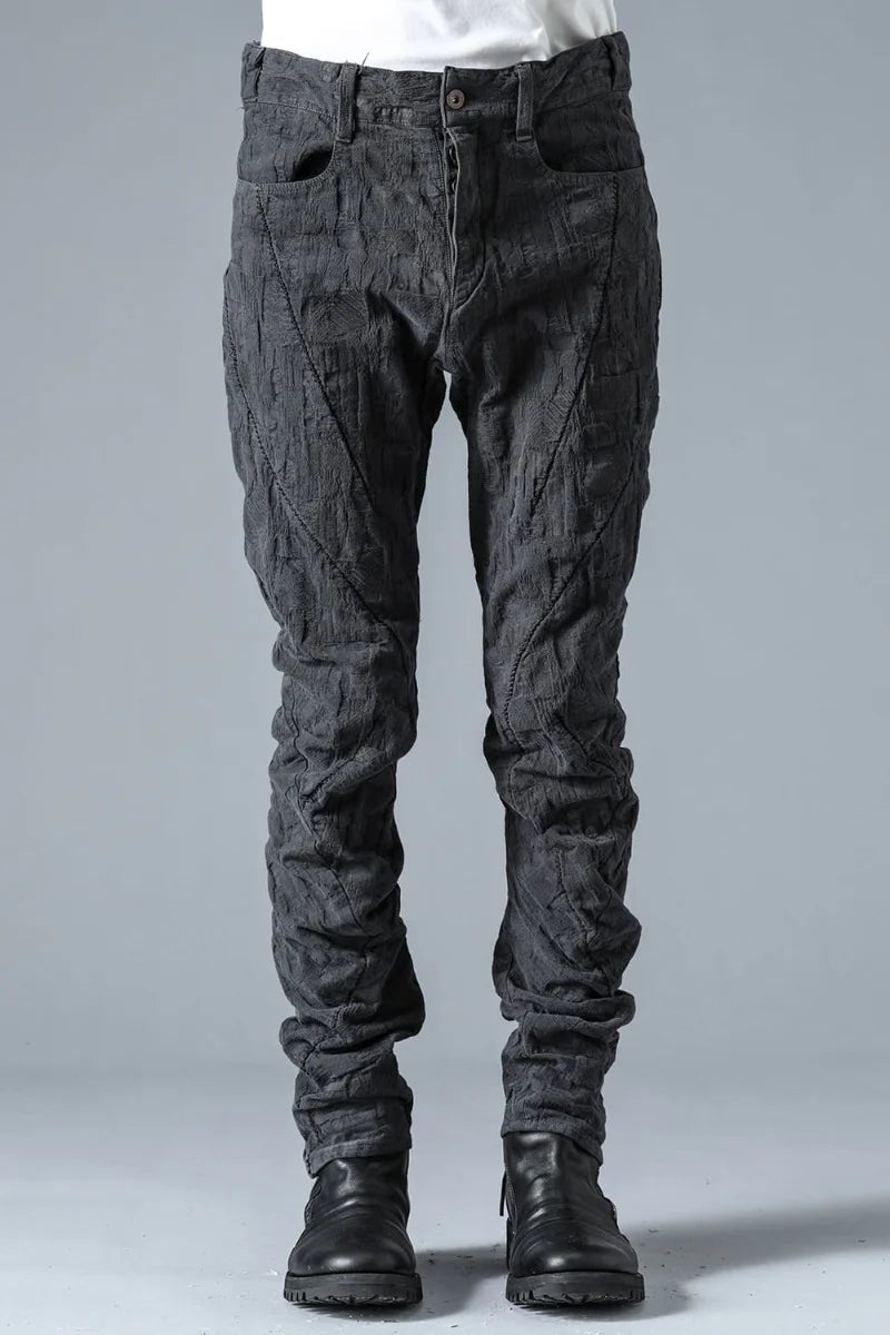 SCAB Patchwork Jacquard Stretch Cotton Overlock Twisted Curved Slim Pants