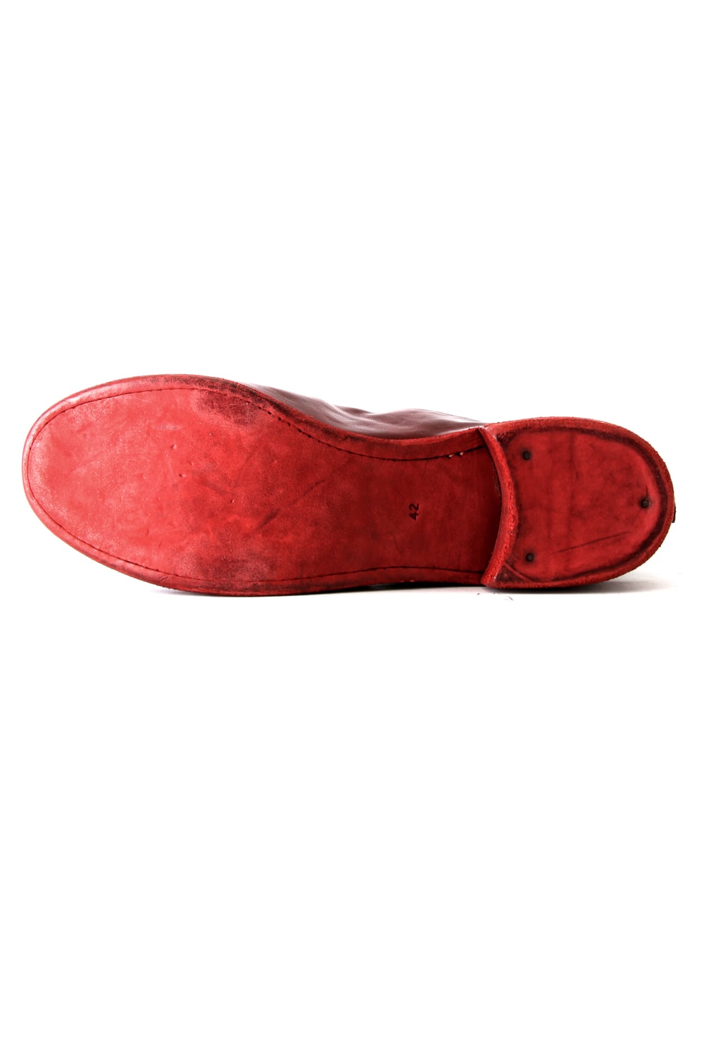 This pair of front zip boots features a toe with volume that protrudes out. Both the front leather and lining leather are mold into one piece. The sole selected is a double sole specification with a raised heel. These boots are great for long legs and are compatible with many different kinds of bottoms.
