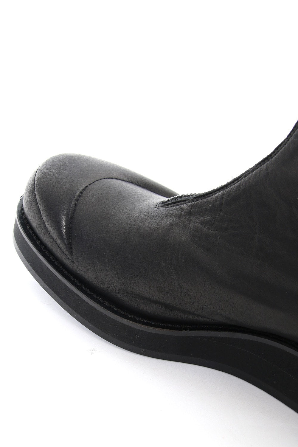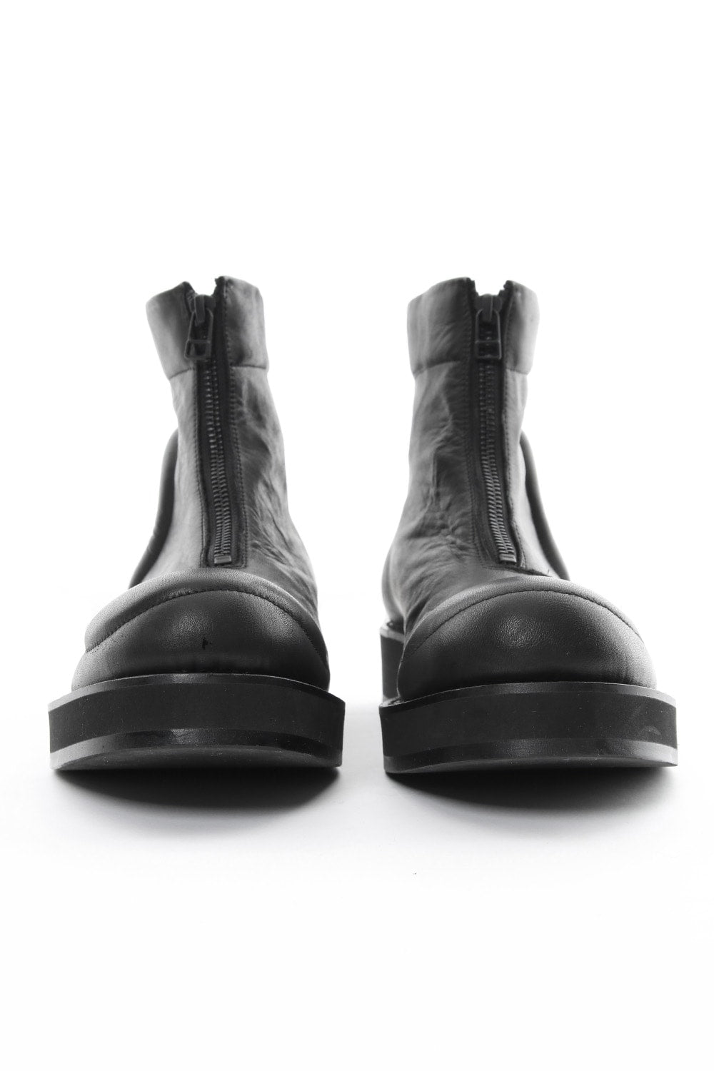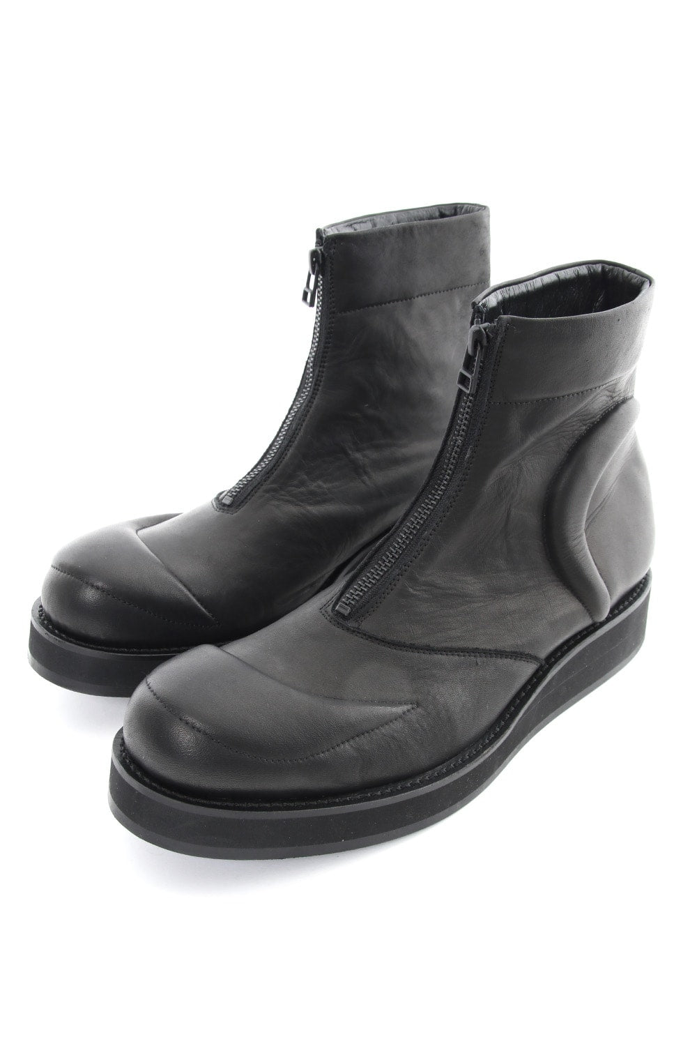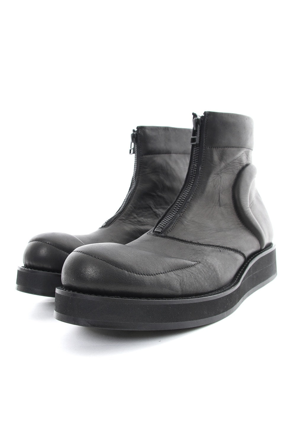 This pair of front zip boots has a crescent moon shape sponge on both the toe and heel. It is made with a soft and supple cow leather that was soaked in plenty of oil.
