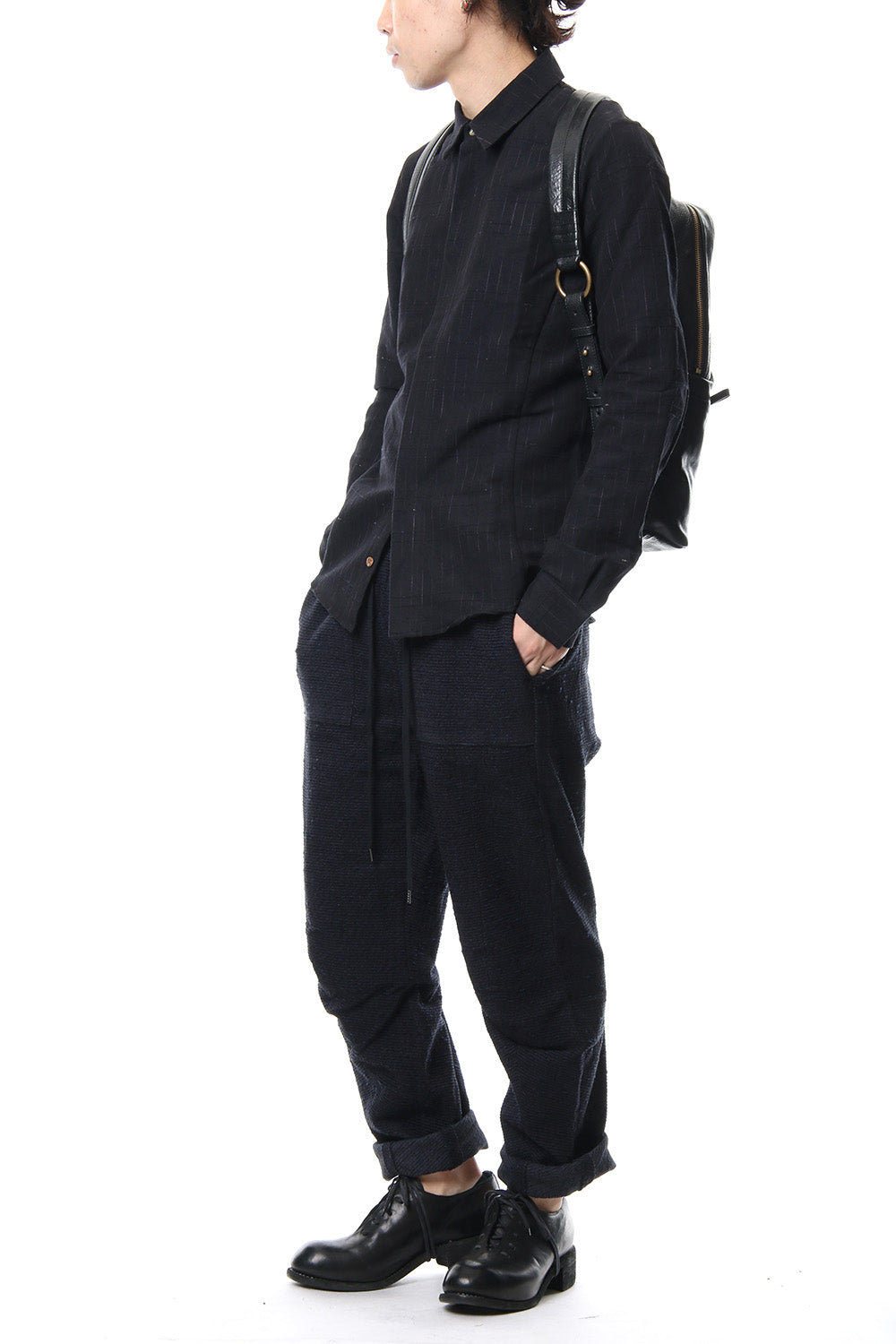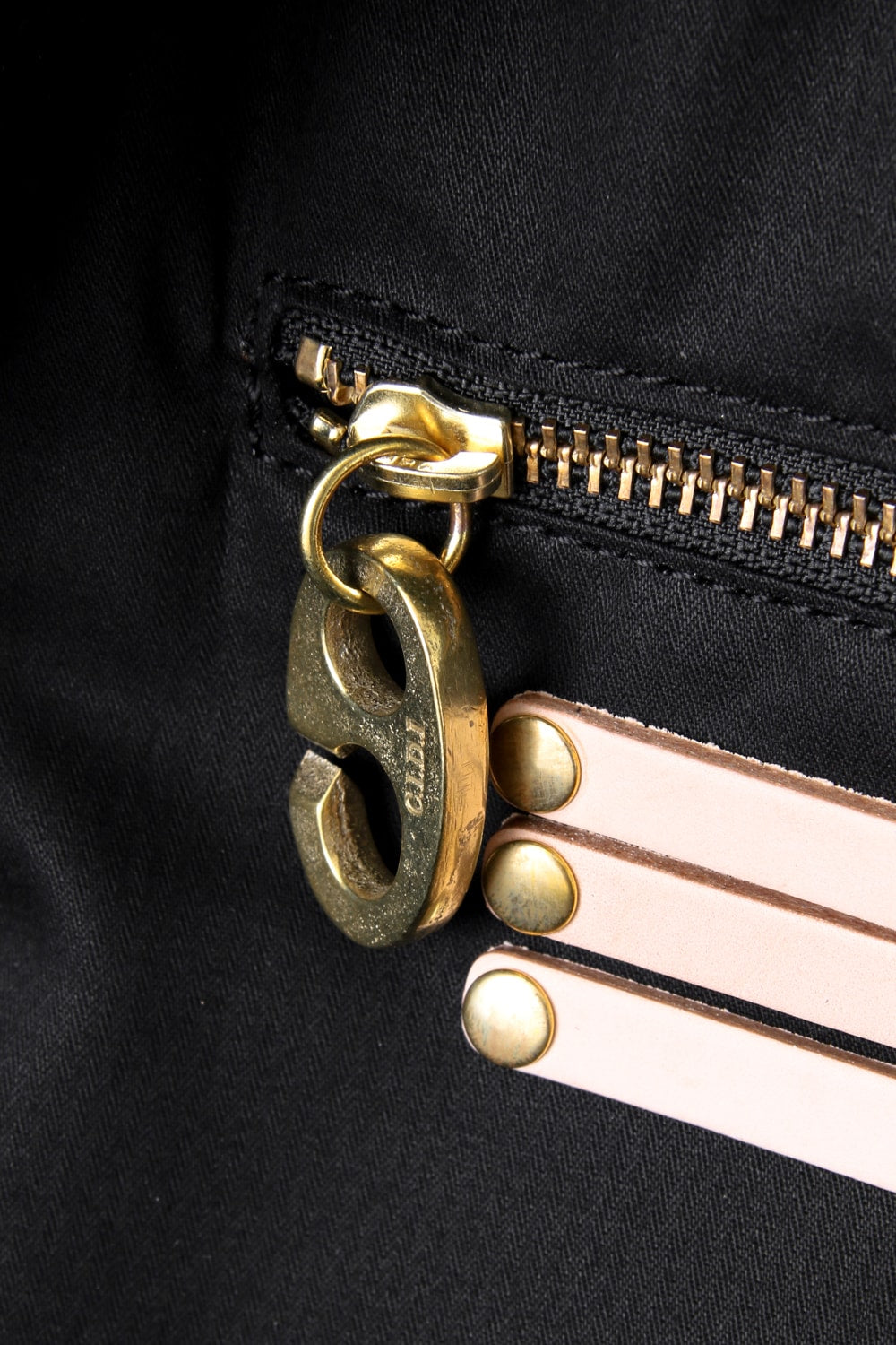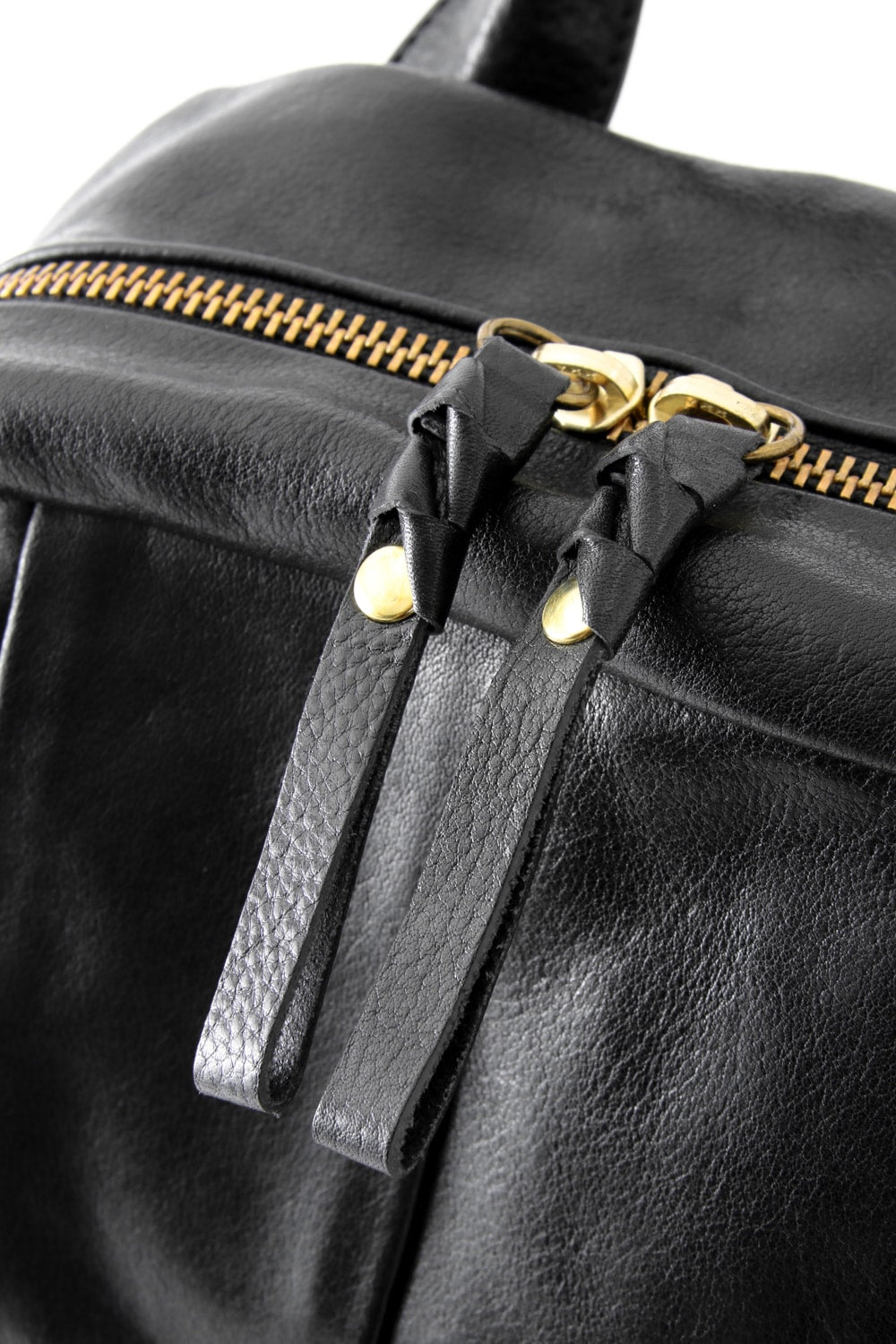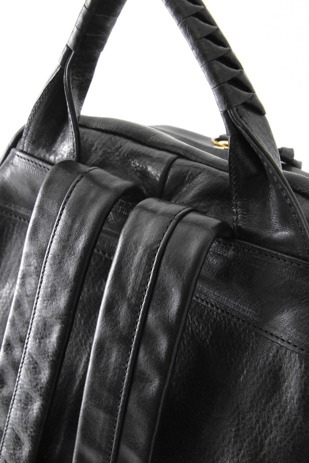 This backpack is a flat shoulder and is not stressing on the shoulders even if you carry it for a long time. Two zip pockets are attached to the front. The colour scheme of brass and black also adds a good accent. The leather is a vegetable tanned steer leather, with fine embossed and after dying oil was added for the glossy finish. The thick oil shrink leather was also shrunk by heat in a drum.