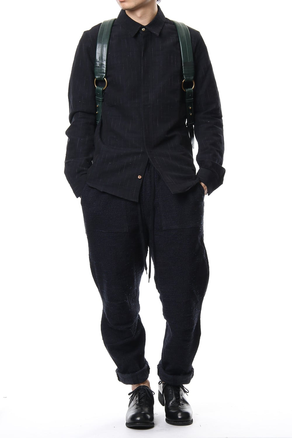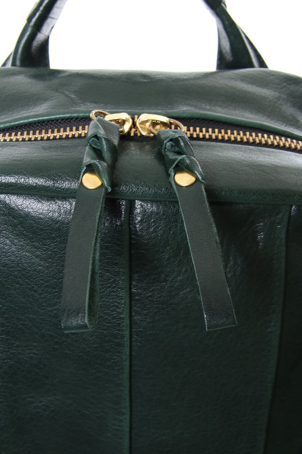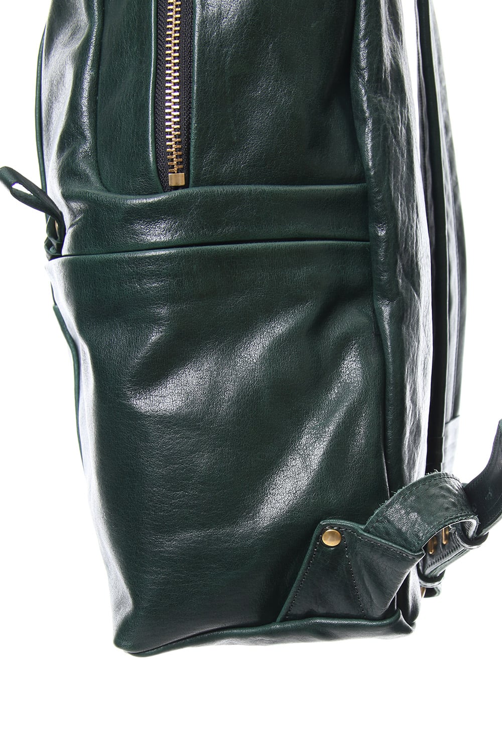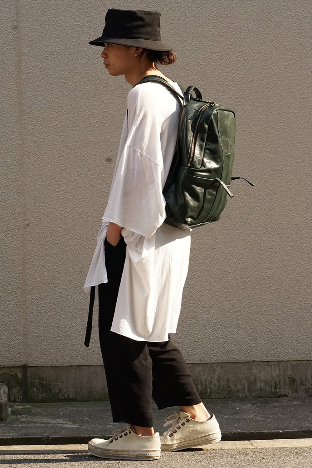 This backpack is a flat shoulder and is not stressing on the shoulders even if you carry it for a long time. Two zip pockets are attached to the front. The colour scheme of brass and black also adds a good accent. The leather is a vegetable tanned steer leather, with fine embossed and after dying oil was added for the glossy finish. The thick oil shrink leather was also shrunk by heat in a drum.