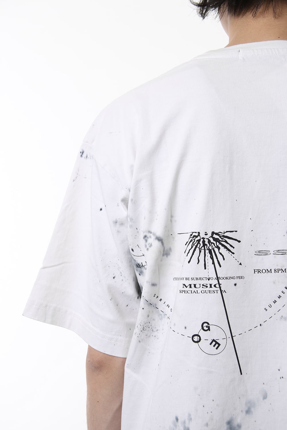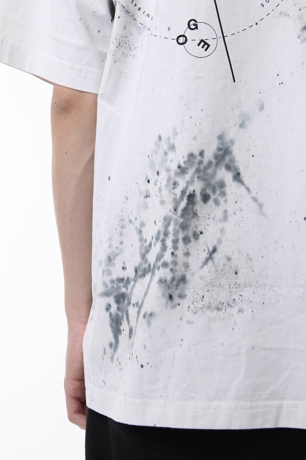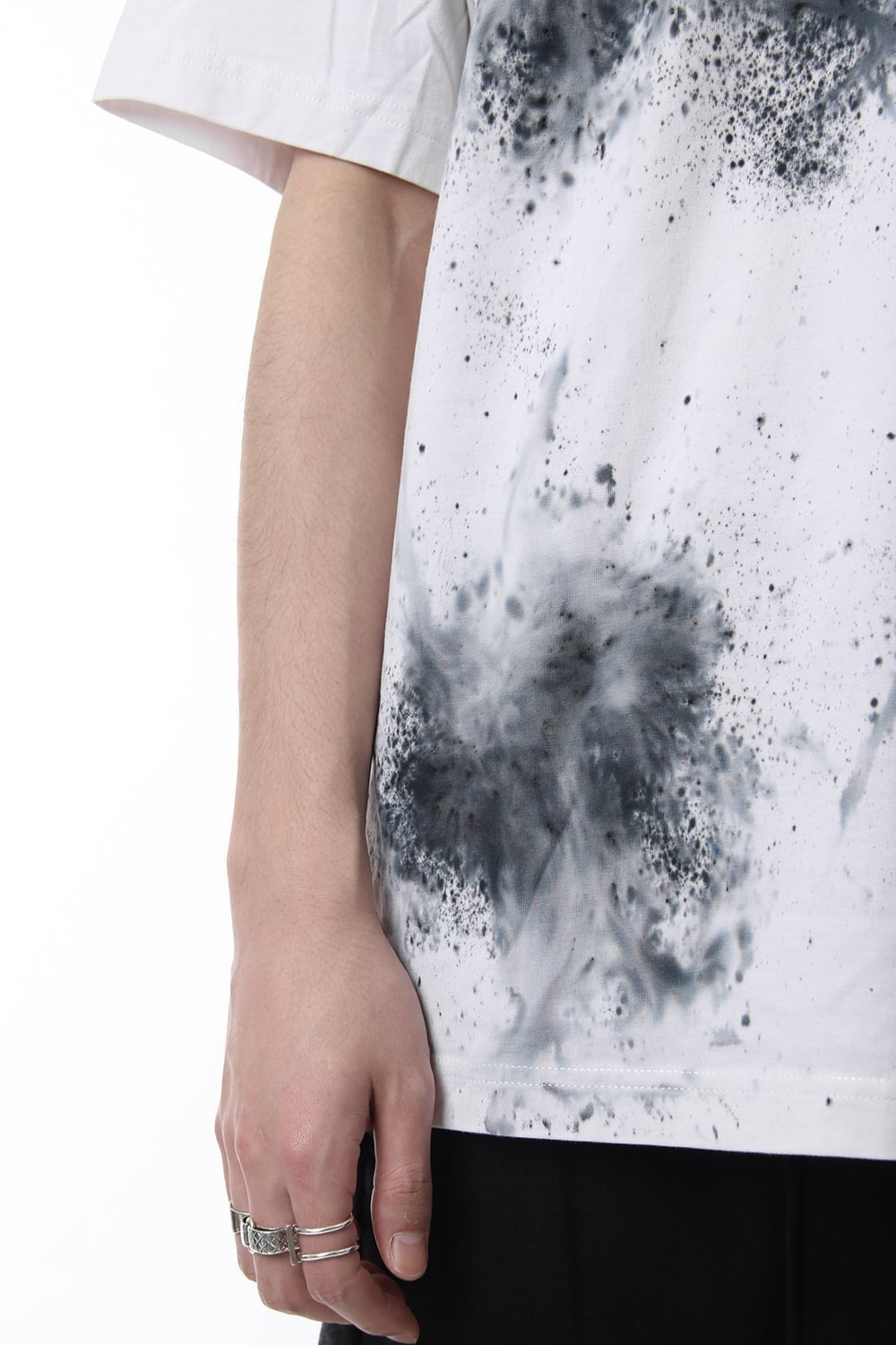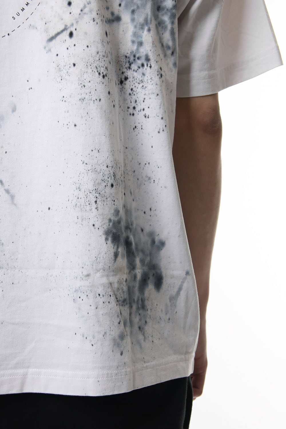 サイズ感はリラックスシルエットで身幅を大きく設定しており、水しぶきのようなムラ感のあるプリントが、爽やかな印象を演出するTシャツとなっております。