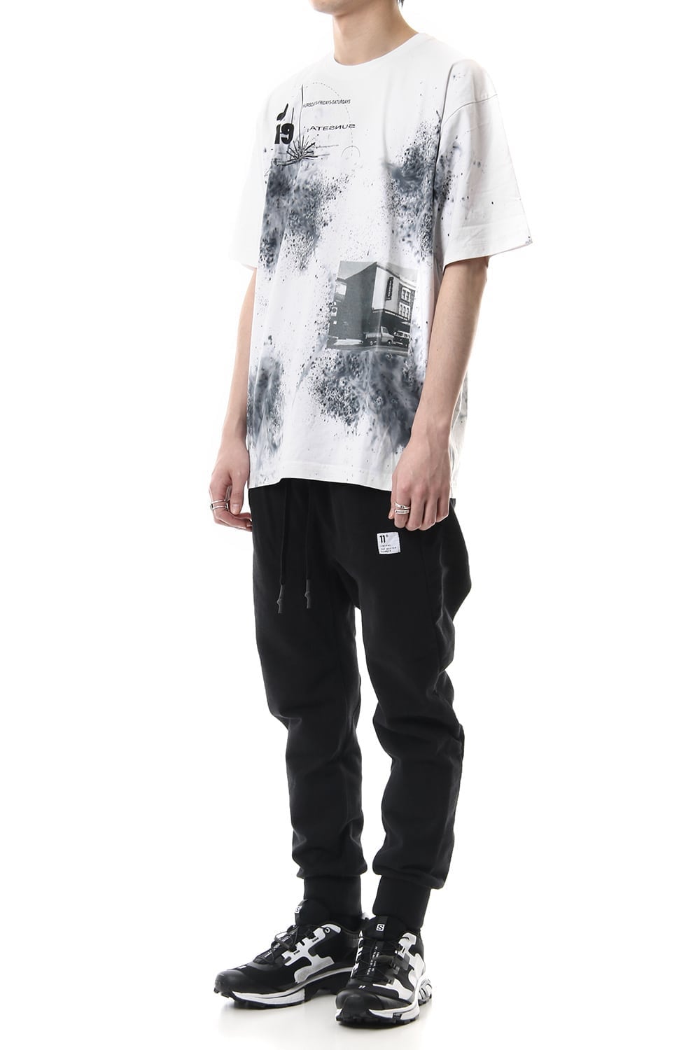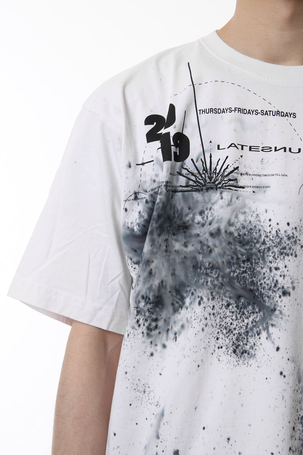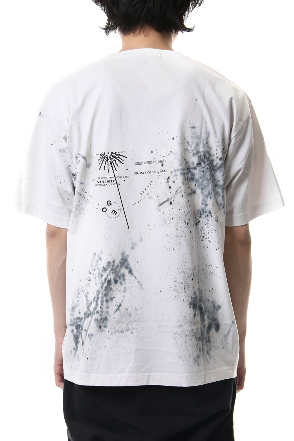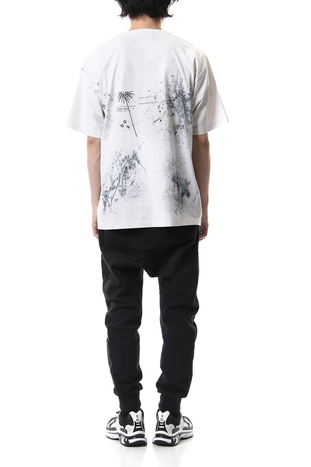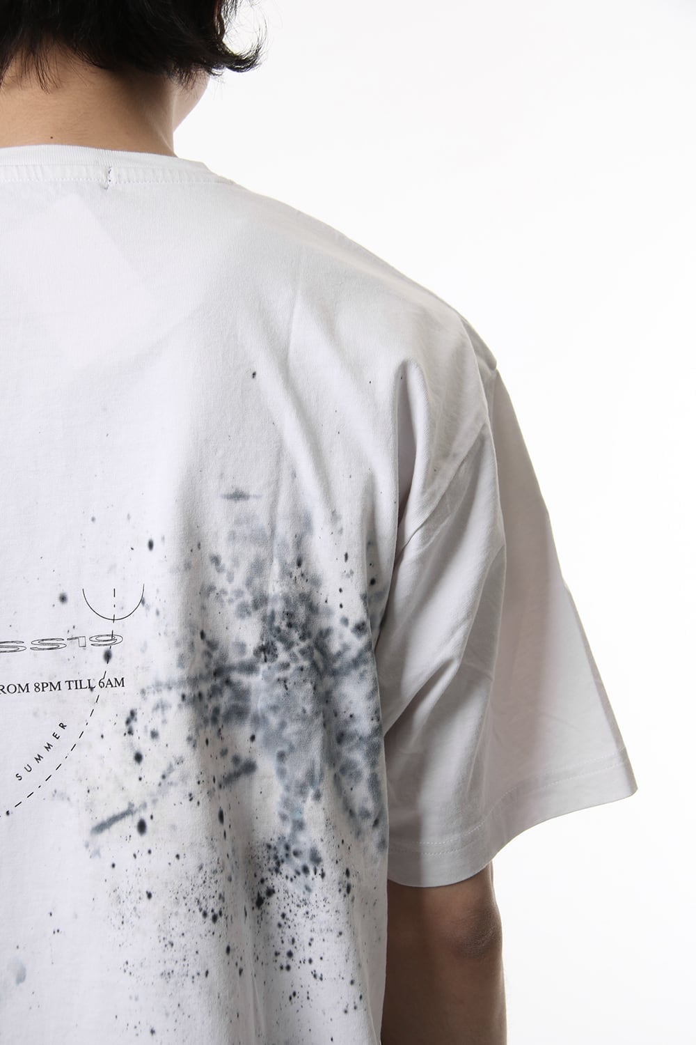 サイズ感はリラックスシルエットで身幅を大きく設定しており、水しぶきのようなムラ感のあるプリントが、爽やかな印象を演出するTシャツとなっております。