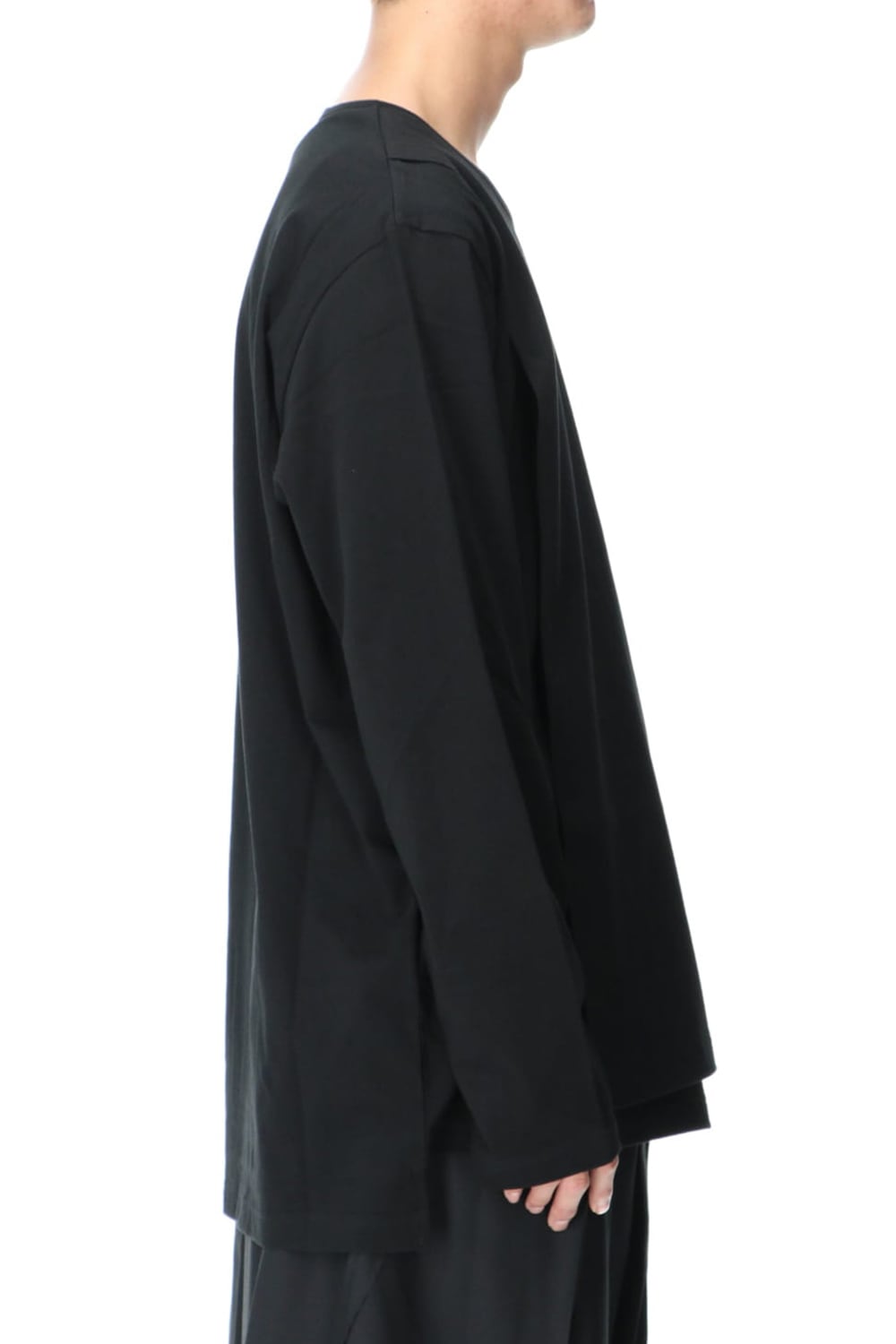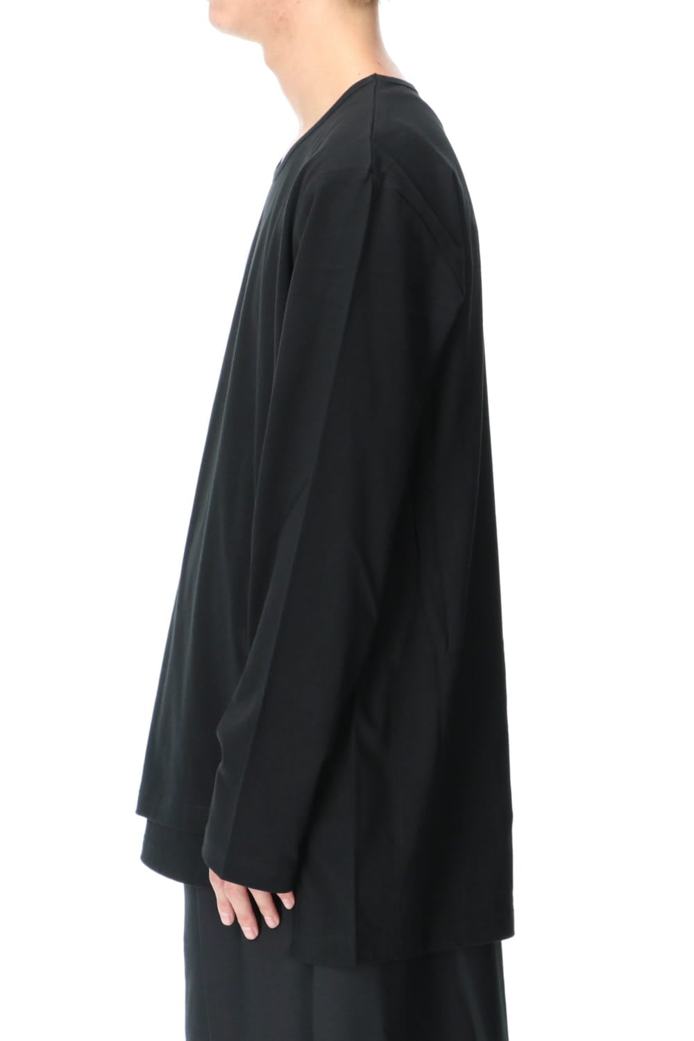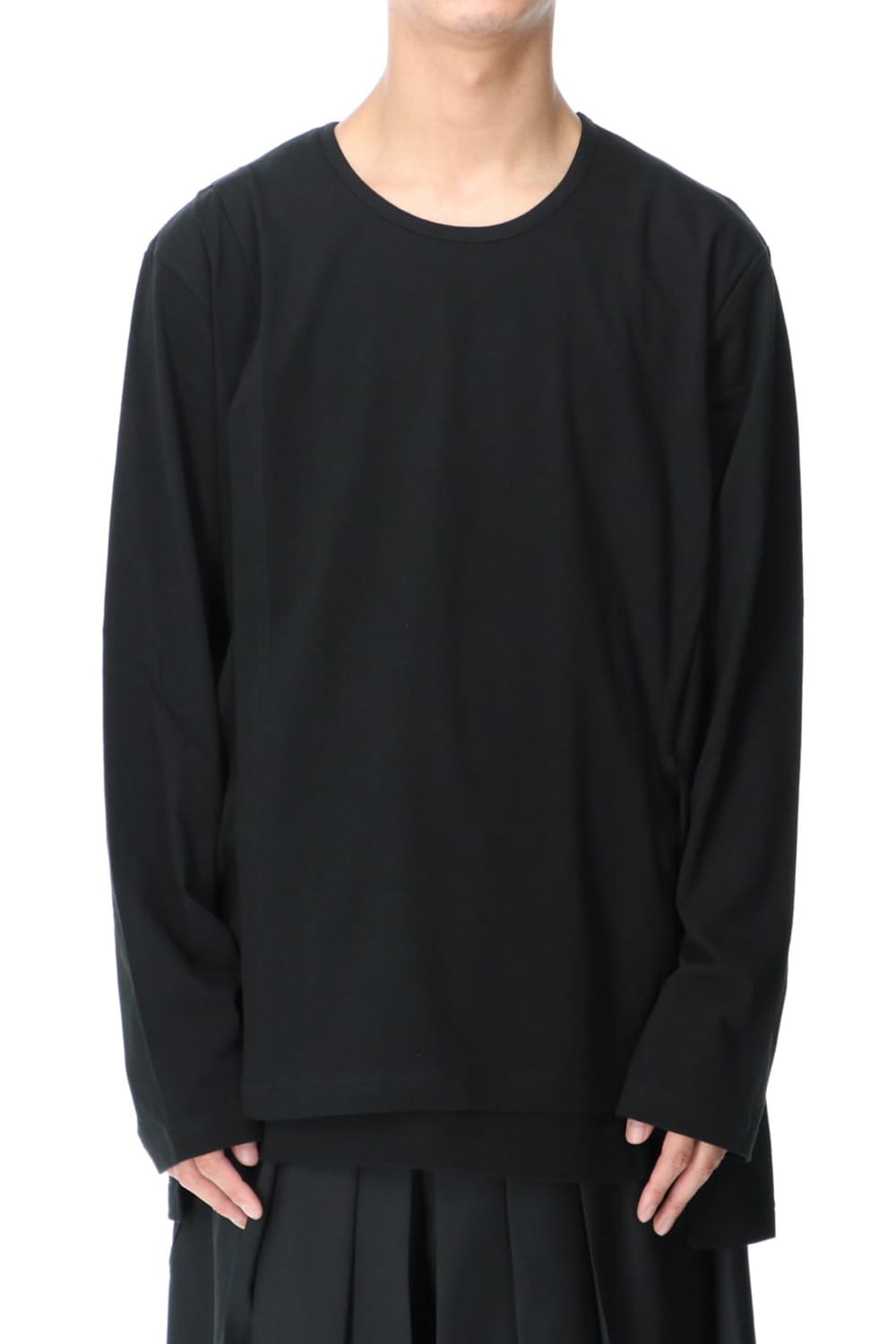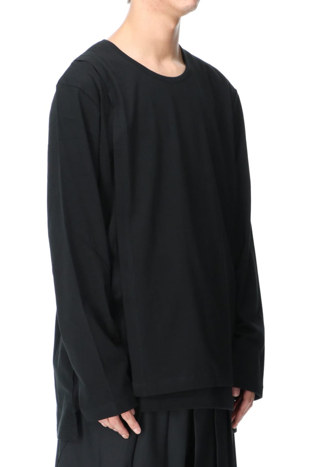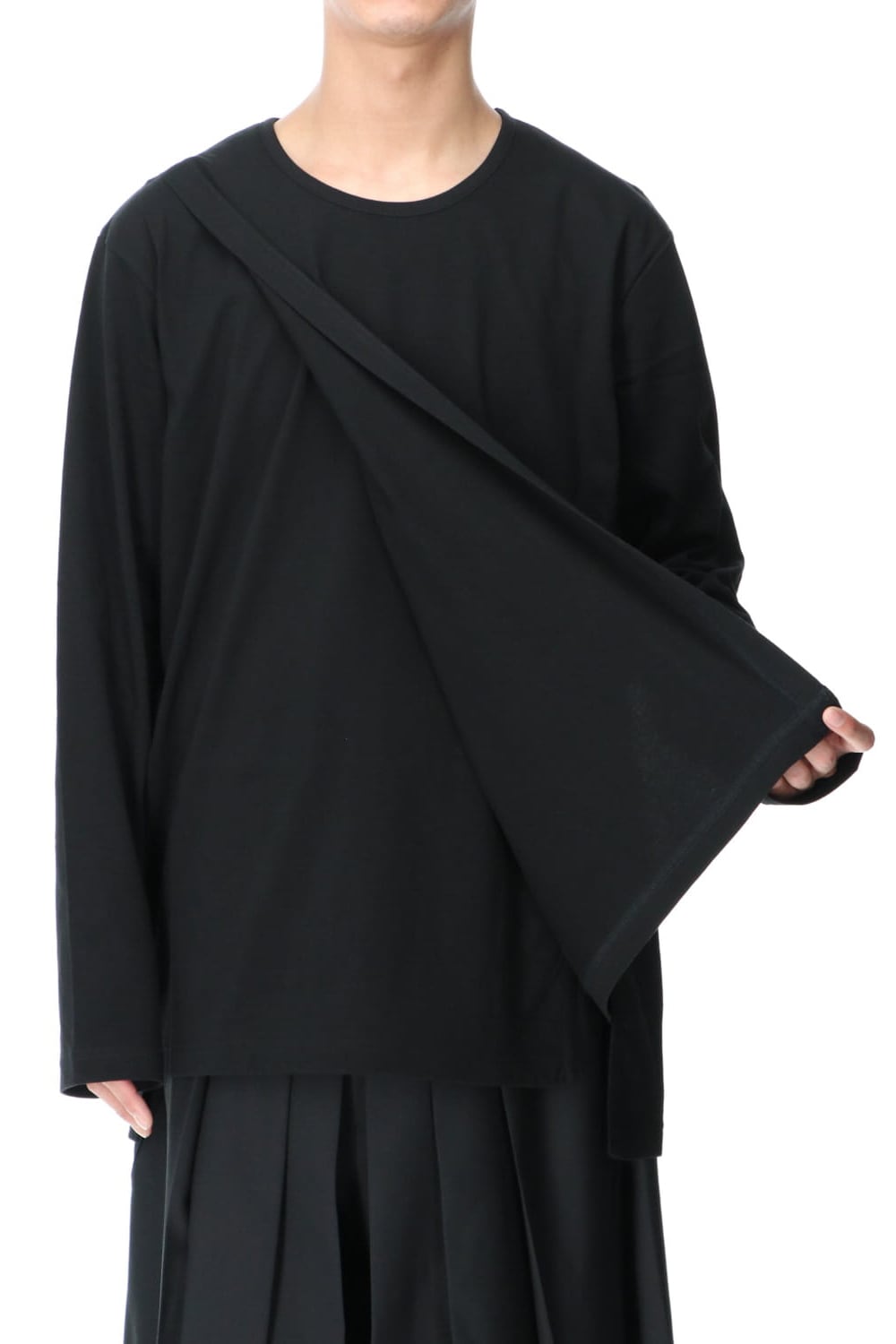 This is a long sleeve cut-and-sew with a cross between the top and bottom on the left side.