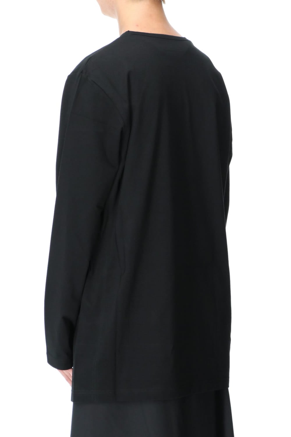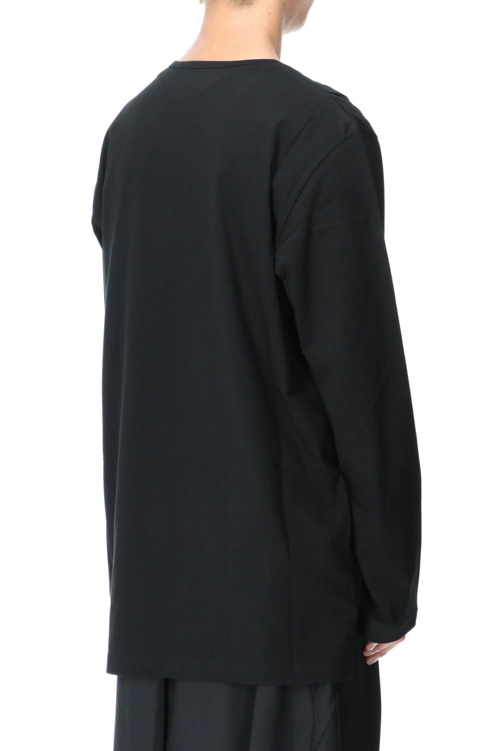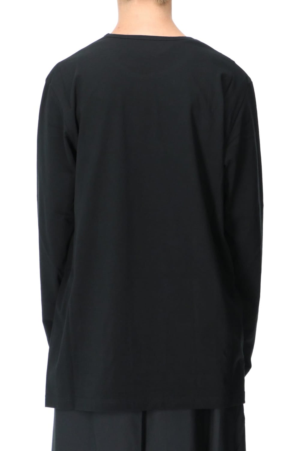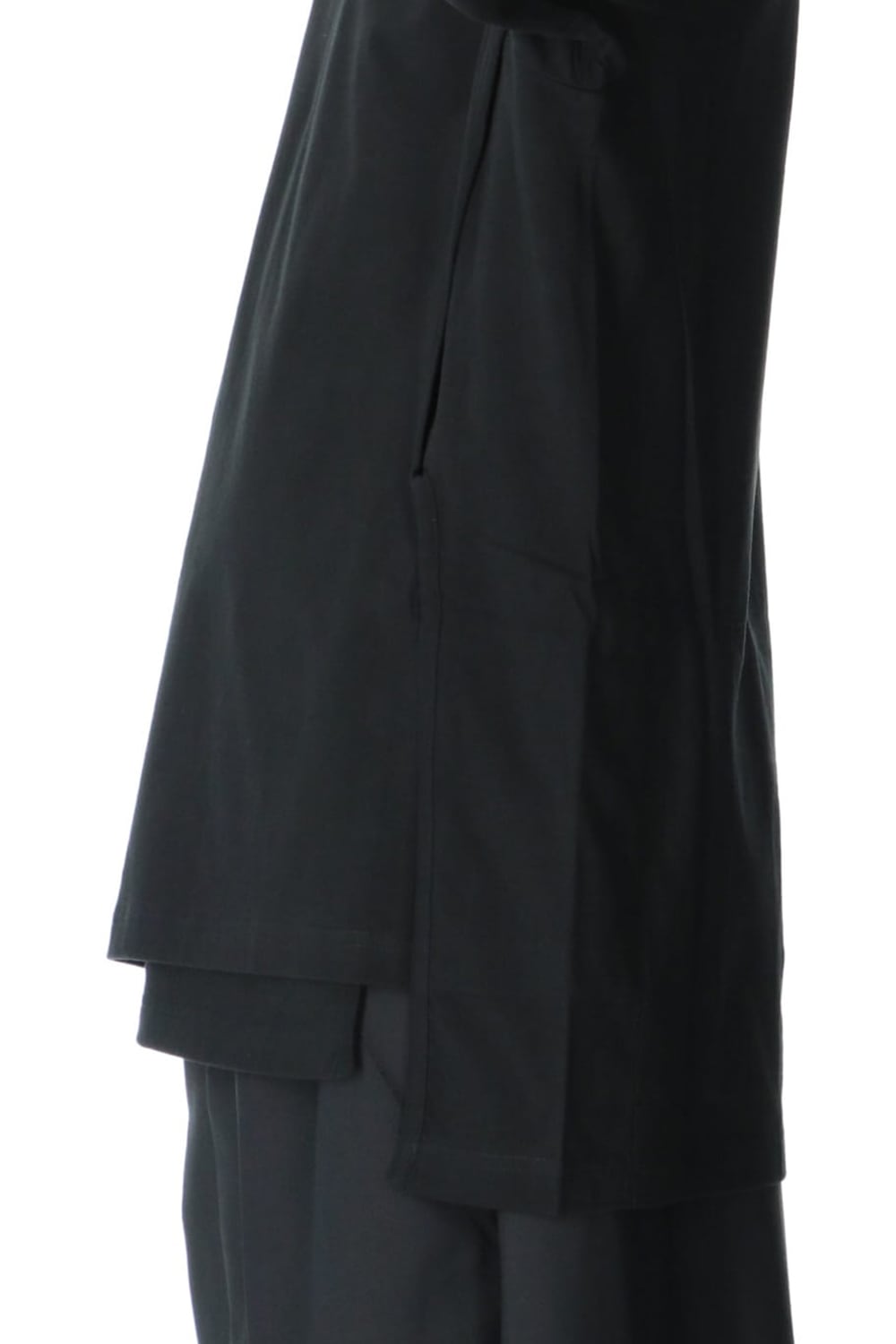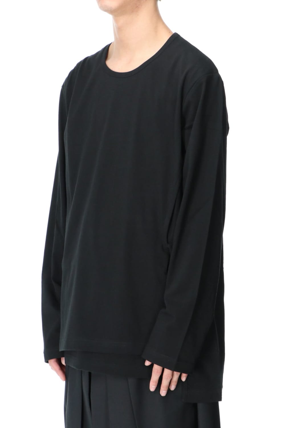 This is a long sleeve cut-and-sew with a cross between the top and bottom on the left side.