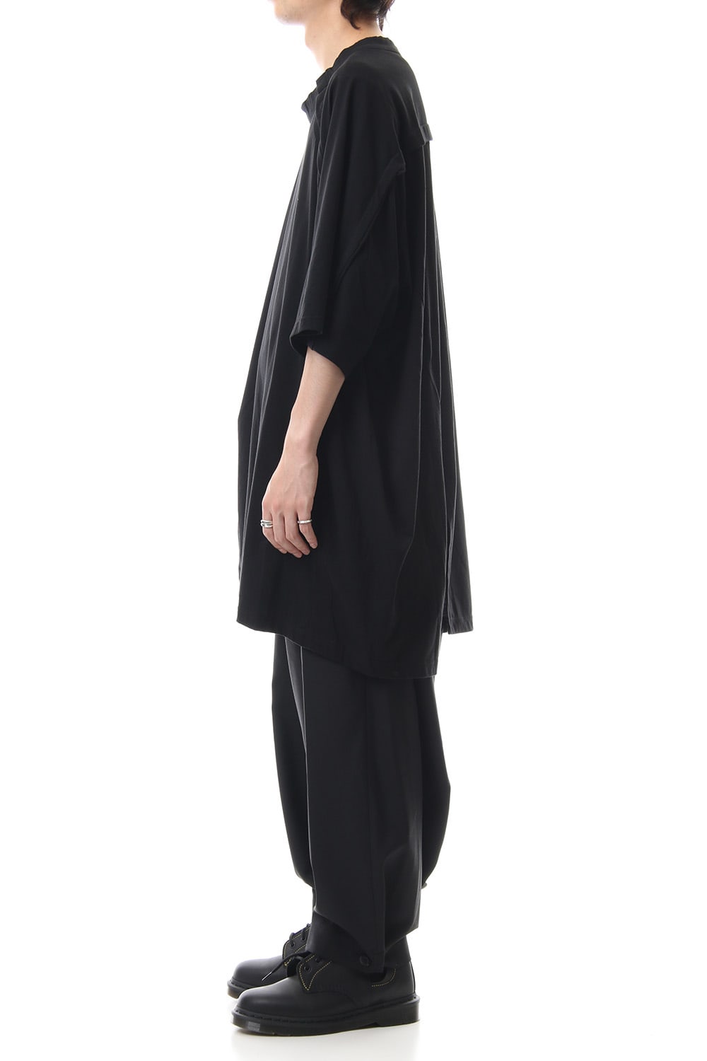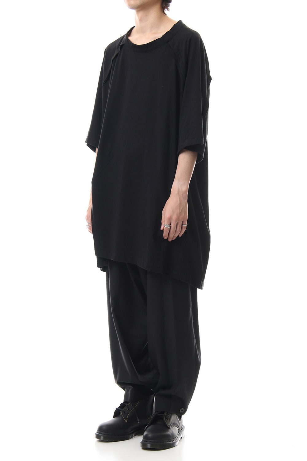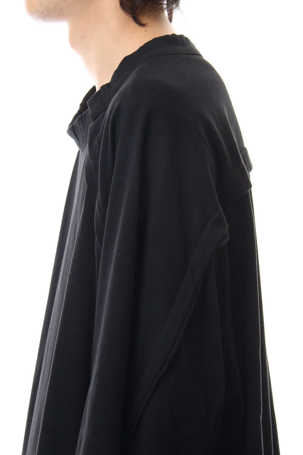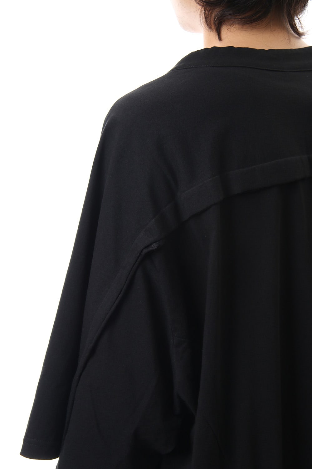 This item is finished with irregular sleeves of front raglan and back dolman with yoke.