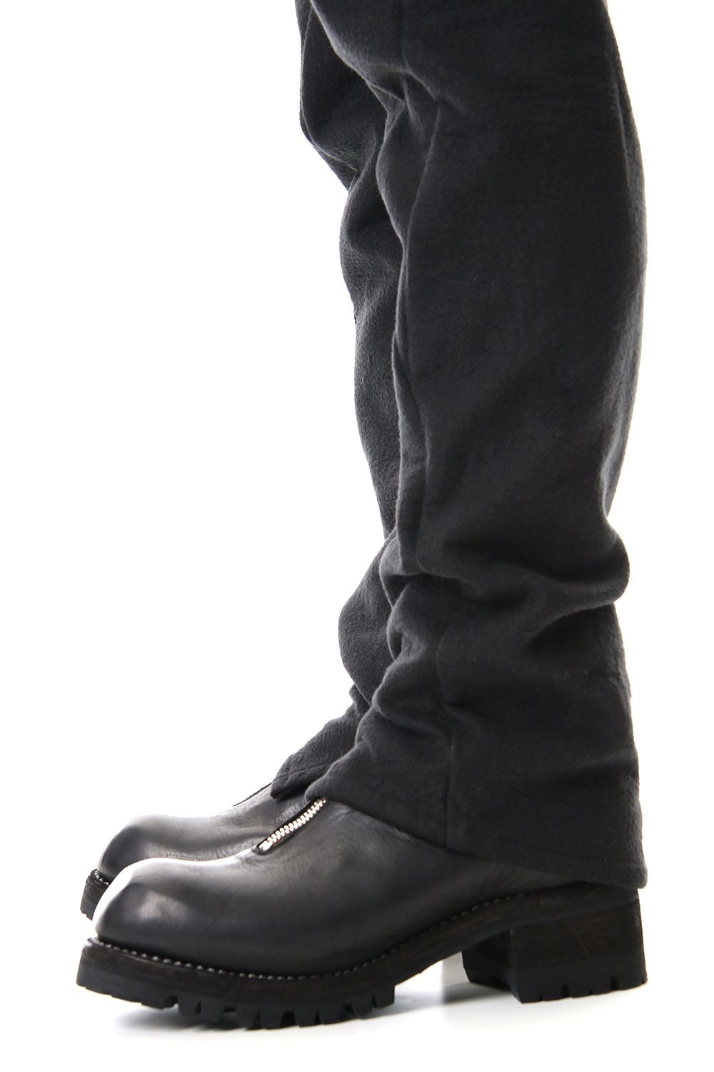 Hand Dyed Linen × Freece Needle Punch Drop Crotch Slim Pants Black- ST107-0039A