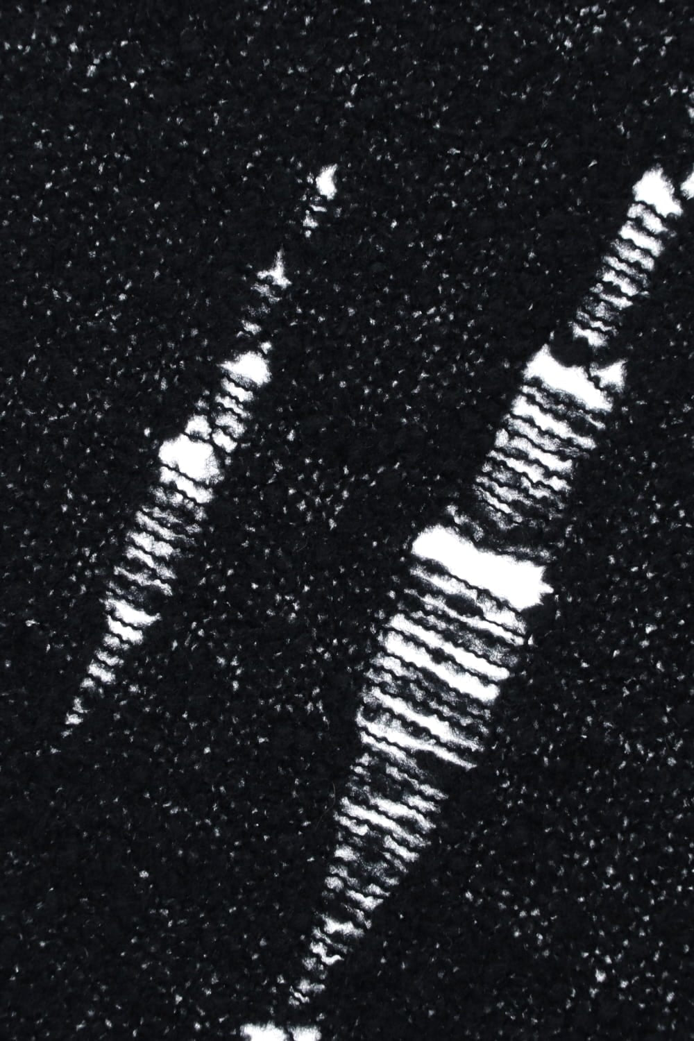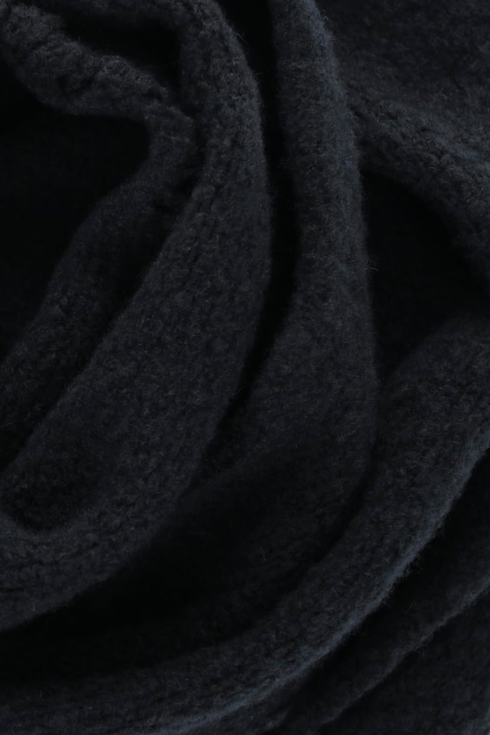 This extra-long scarf has a damaged finish in places. A long scarf that will accentuate your style and expand your coordination range. The cashmere and cashmere blended material is smooth to the touch. Masnada's long scarves are available in two types of scarves, spray-printed storm grey and plain black.