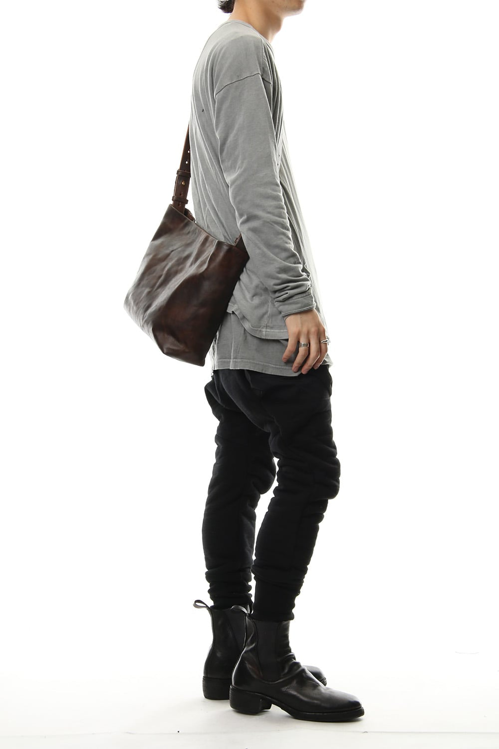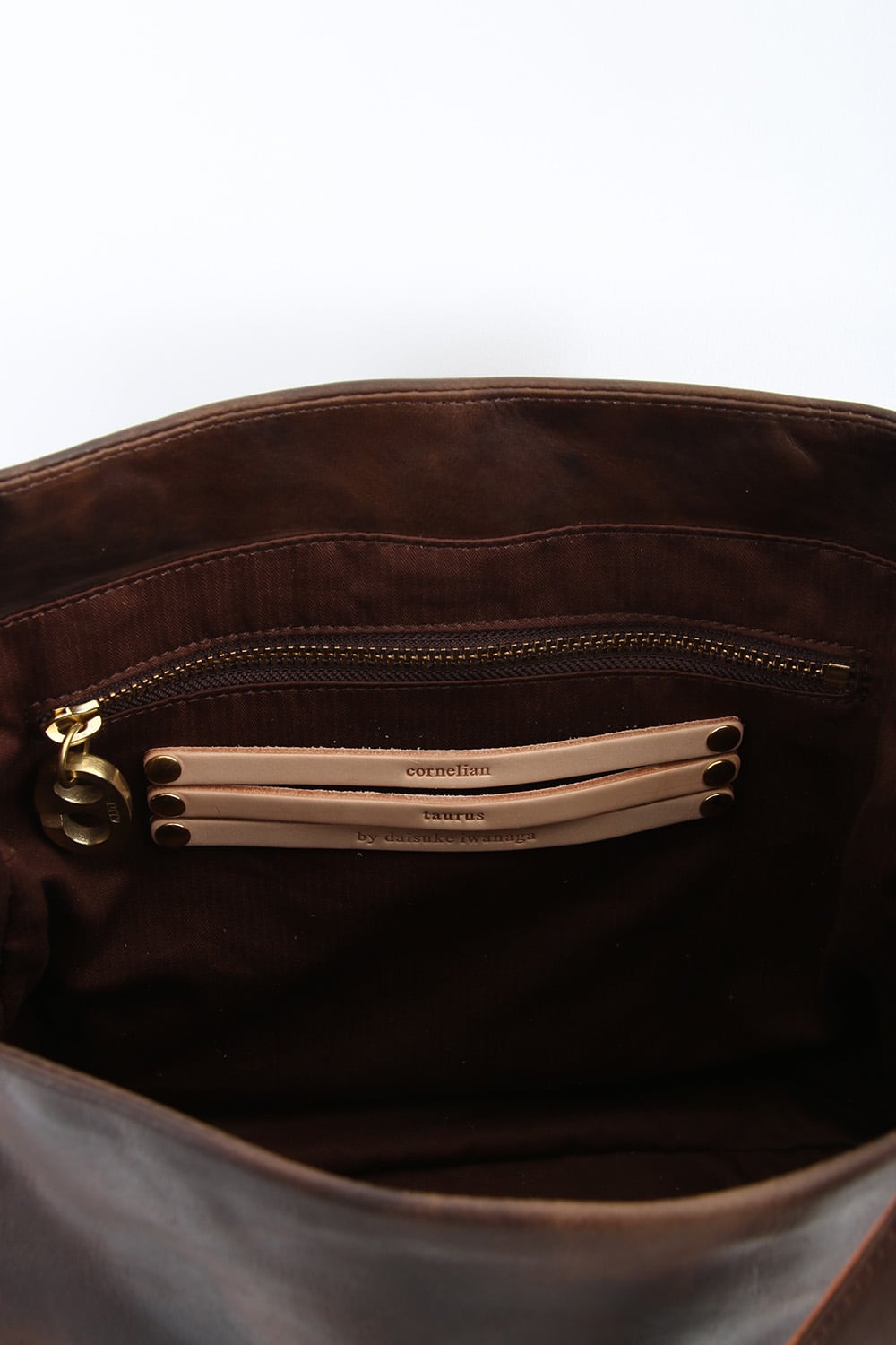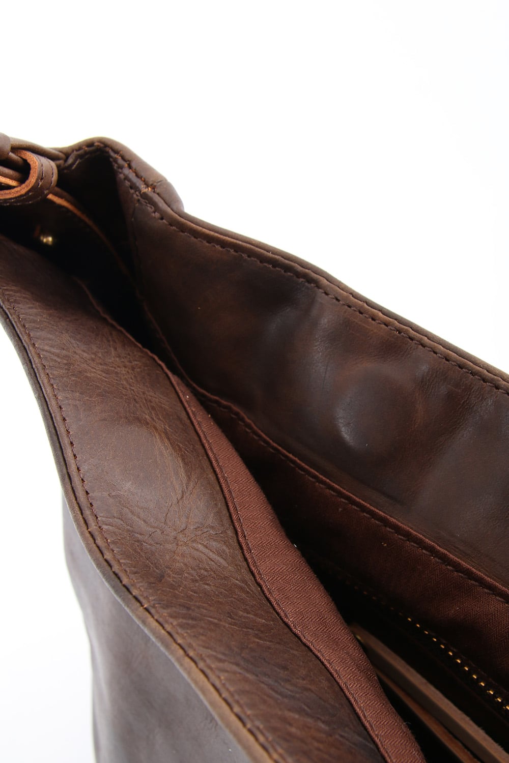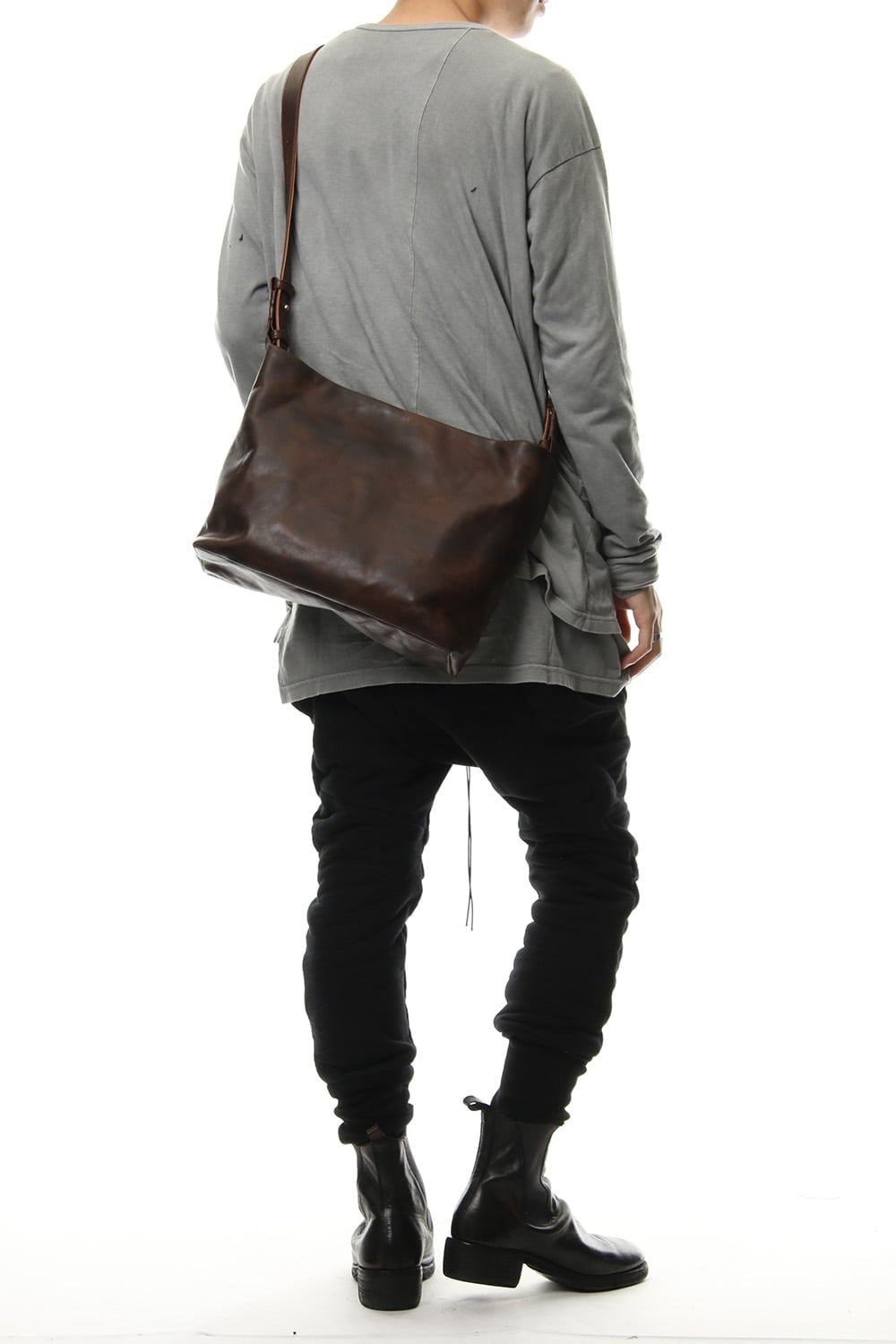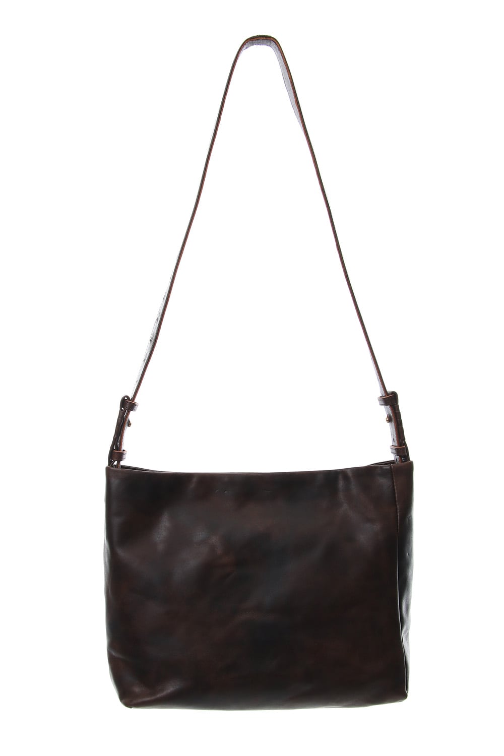 This new "hand piece shoulder bag' was announced as part of the theme "manual work and lightness" expressed by a single piece of body, minimal but functional. The opening part of the bag is closed by a magnet. When diagonally slung, it has a beautiful look that integrates style along the body. The part along the body has been treated so that seams do not hit when worn. The material is a hand brown of Shave Steer which was newly added from 18-19 AW. The steer has a sense of texture like nubuck as the silver was shaved off a little; it was hand crafted by hand painting to dark brown to and then made into a foundation of a distinctive expression. In addition, by dyeing a thin blanc thinner than the hand painted, it gave depth to the material. It is leather which you can enjoy for a long time with the beautiful changes.