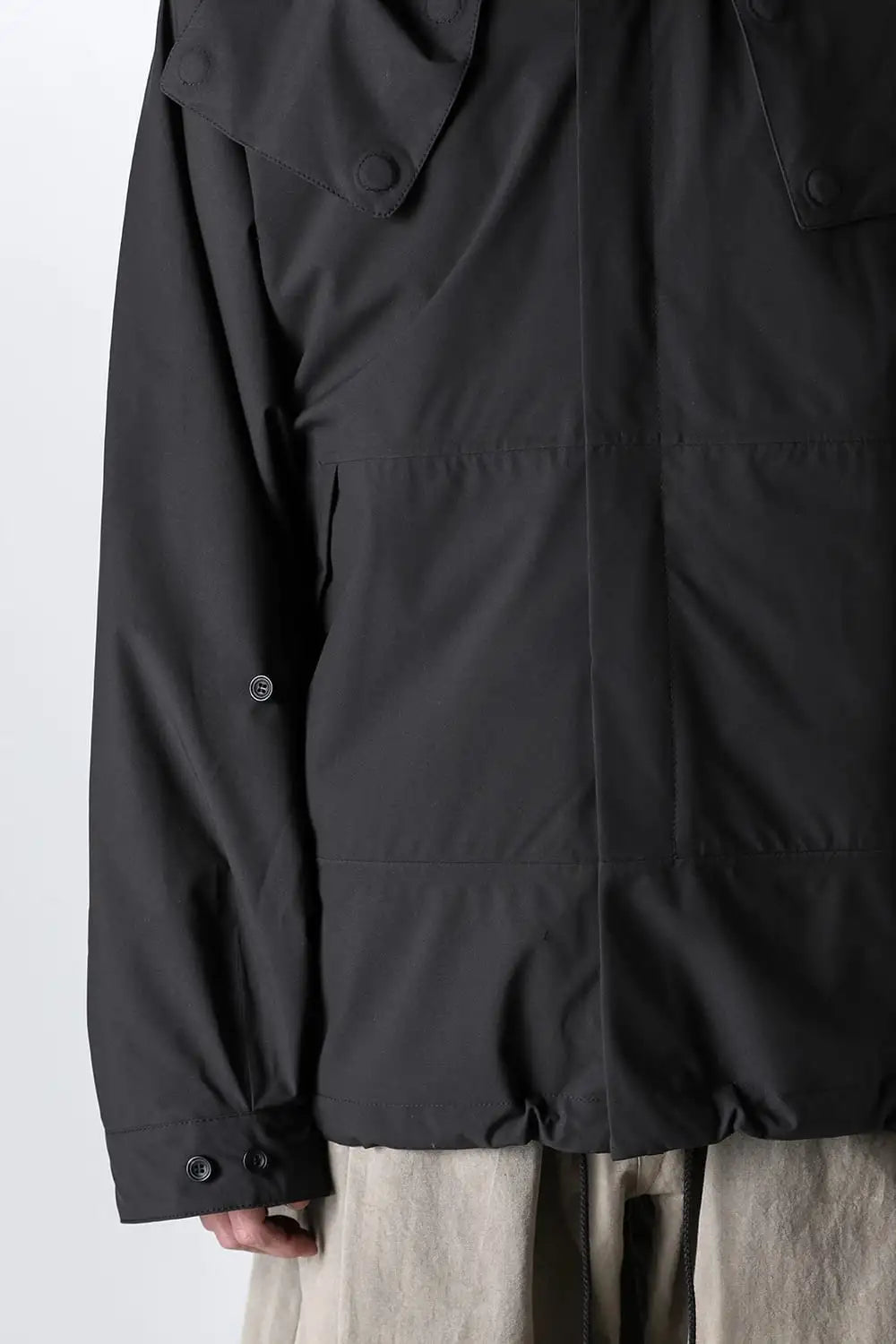 The drawcord attached to the hem can also be tightened to change the jacket into a bomber silhouette.