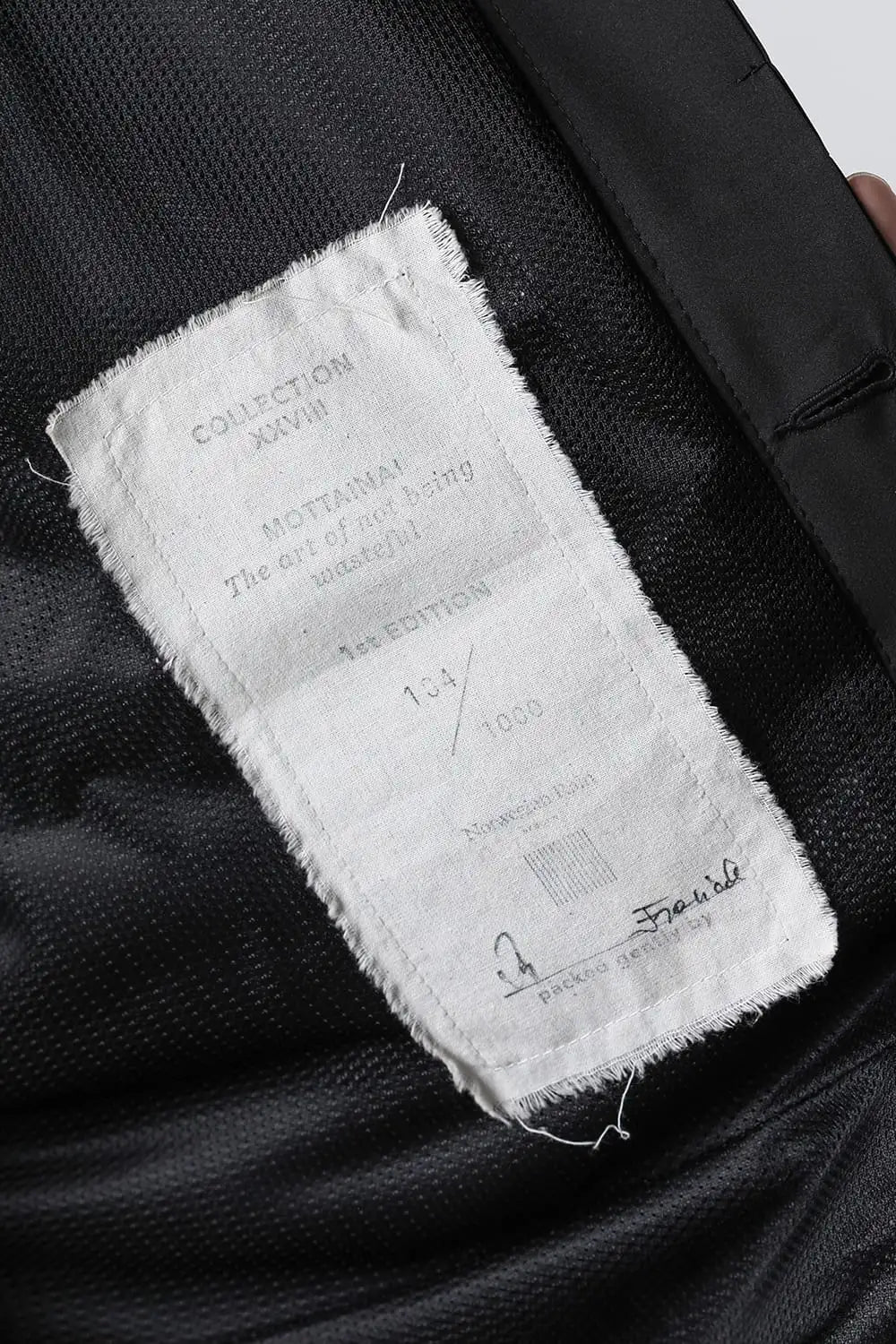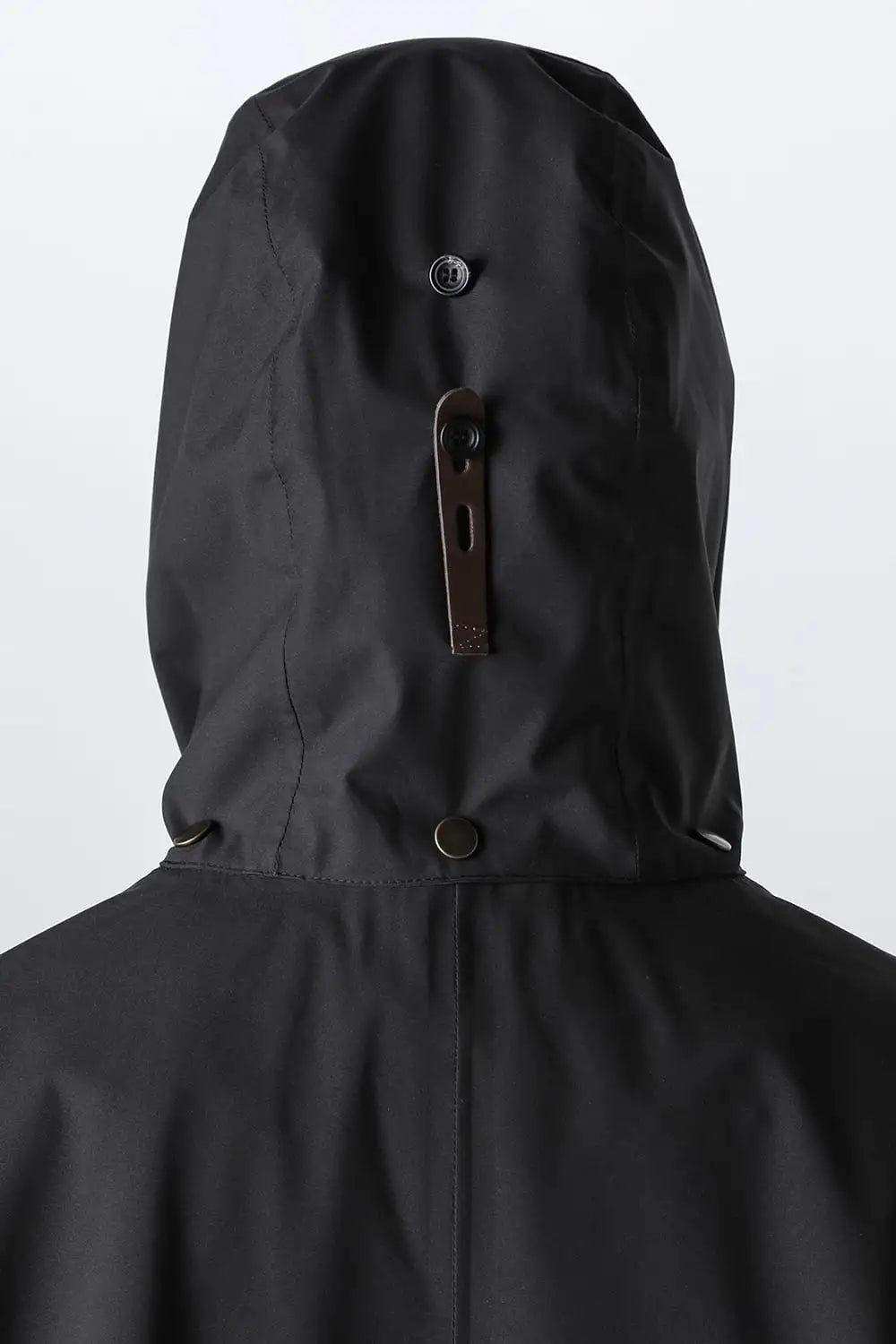 The front is single wing tailored with a unique detail called "Water Tunnel" on the right front where the meeting is placed on the inside to prevent rain from penetrating.