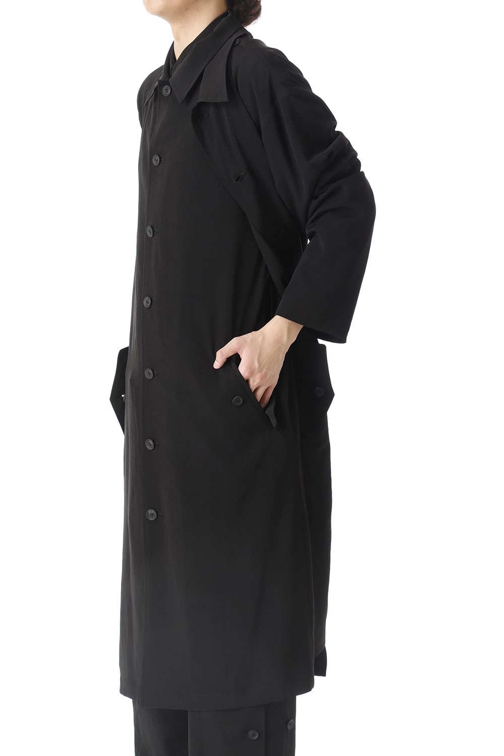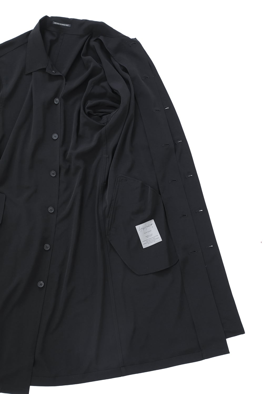 This shirt coat is made of a tuxedo which has a mild luster and a draping effect.