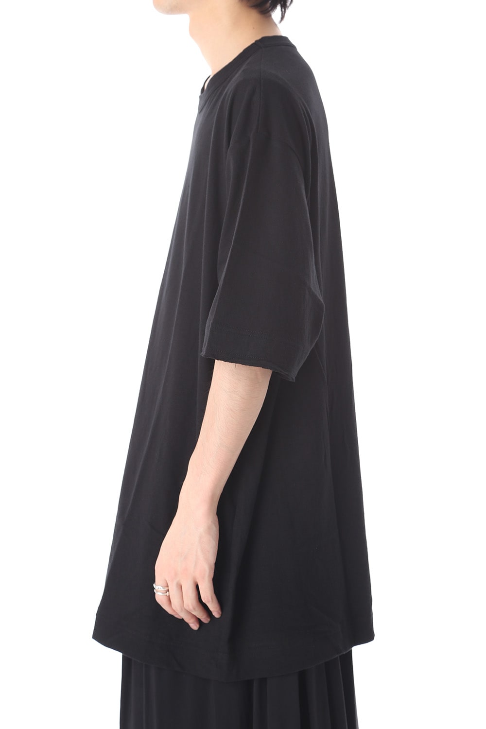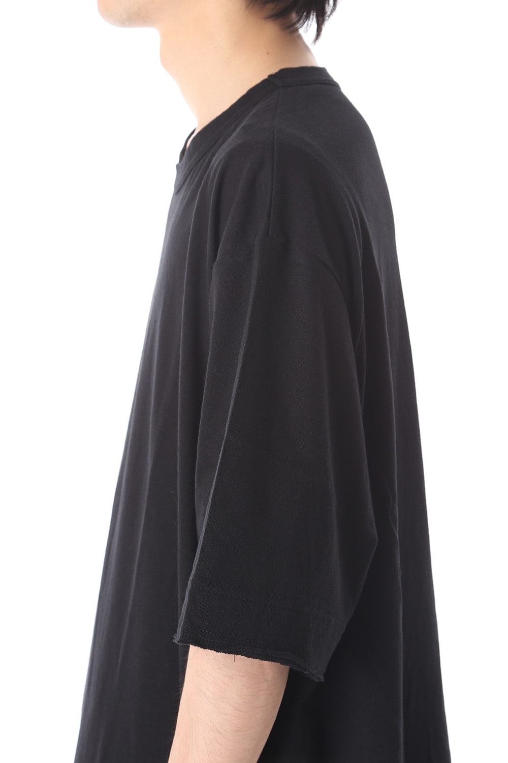 Old cotton Top stitch Cut off Round neck Short sleeve T-shirt Black