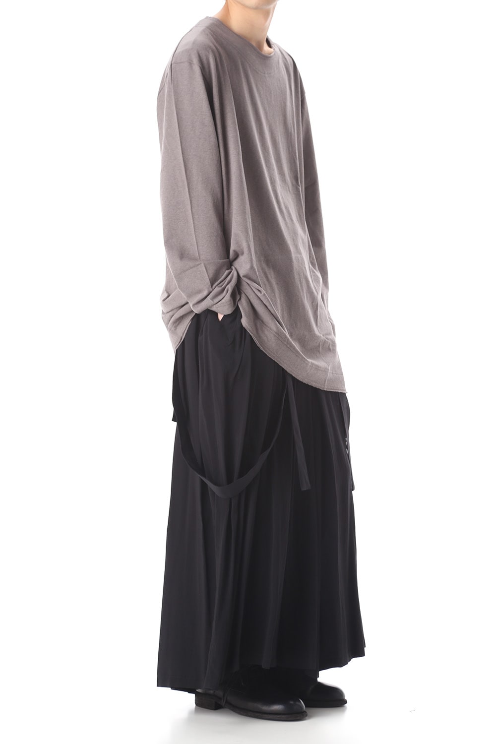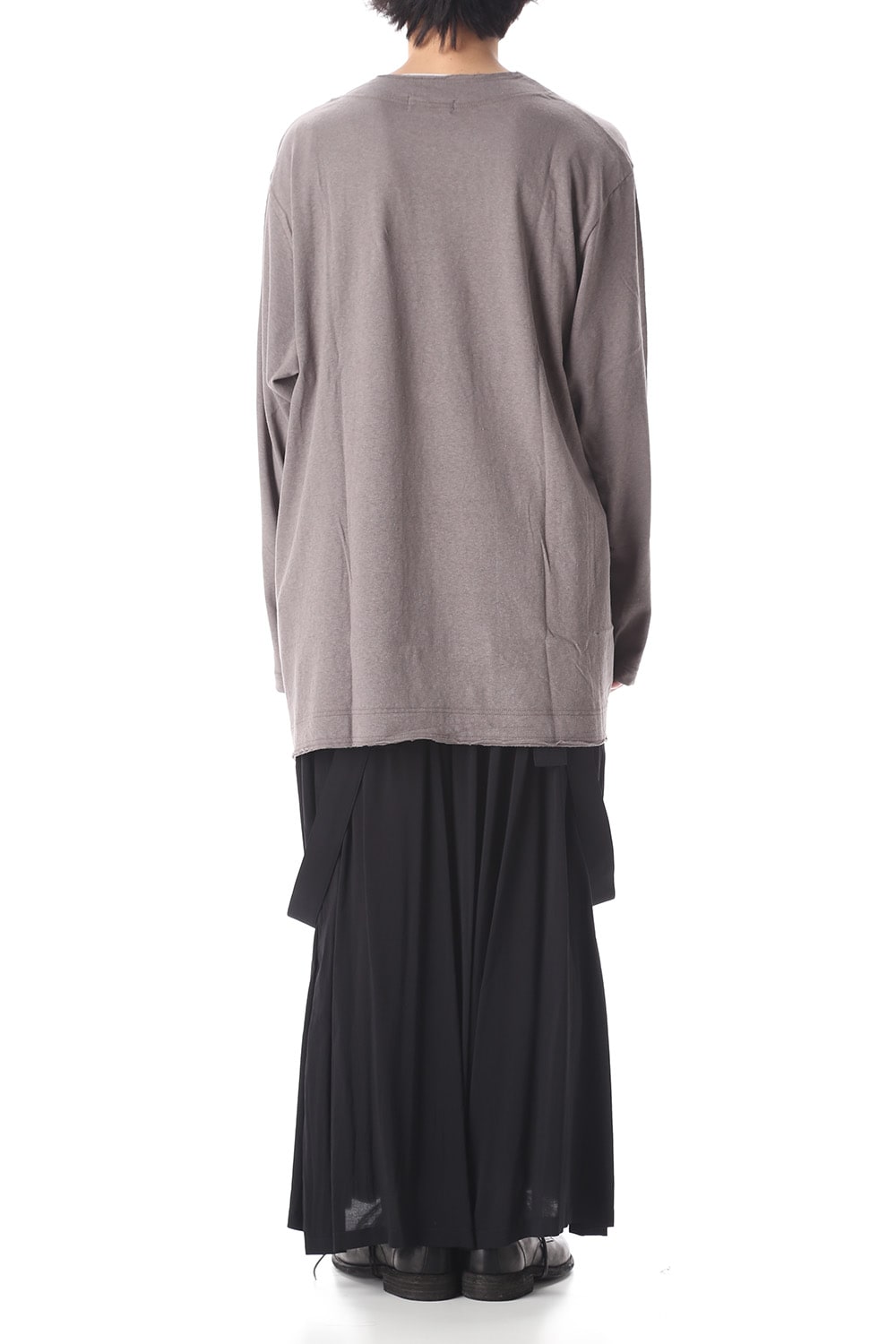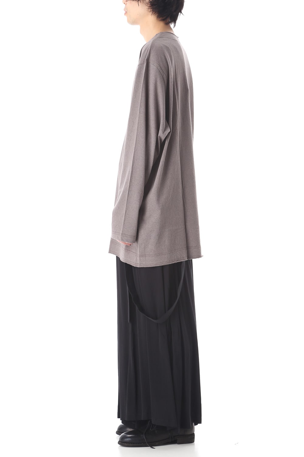 Old cotton Top stitch Cut off Round neck Long sleeve T-shirt Gray
