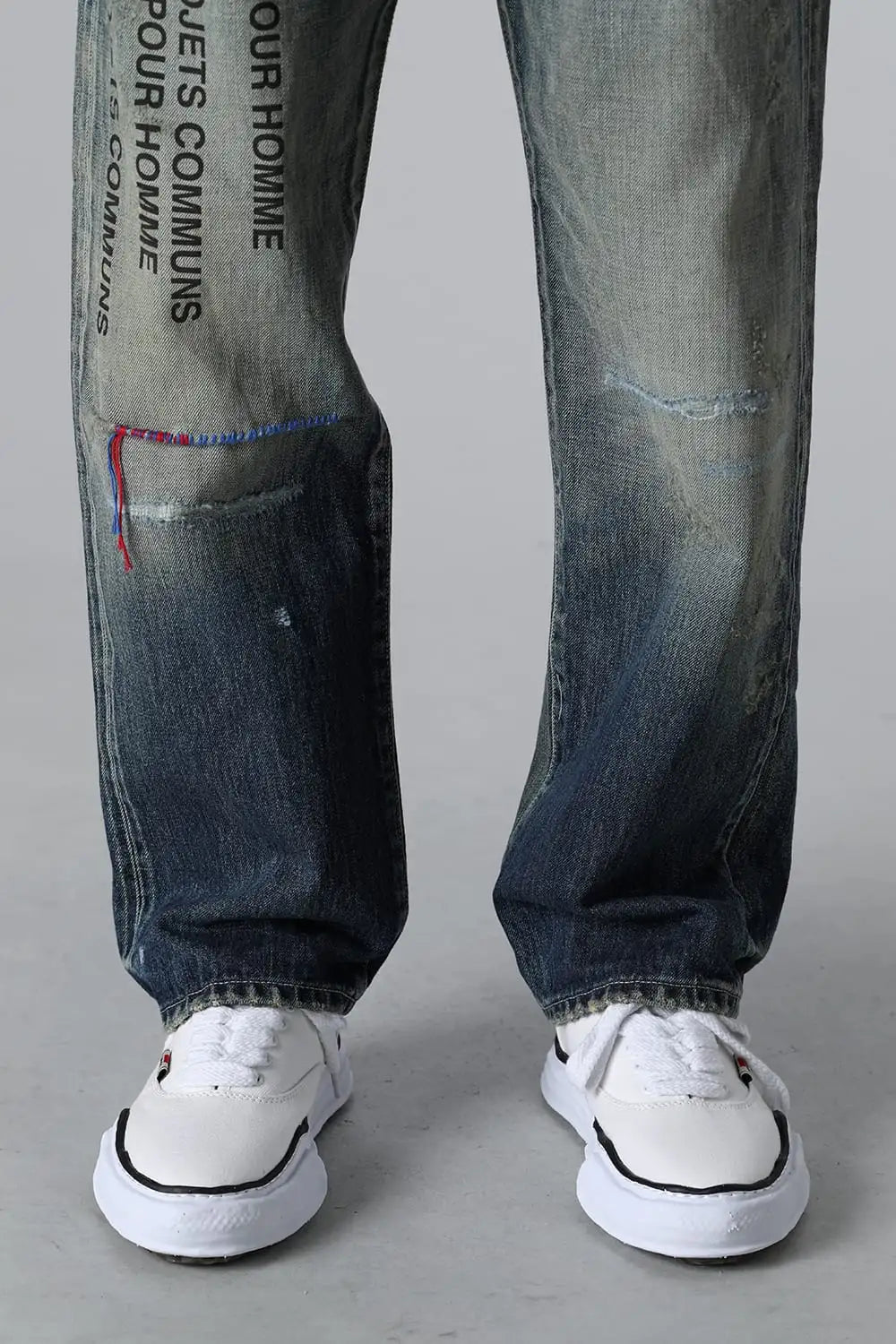 Savage denim pants based on 14oz. original denim, featuring graphic prints and realistic distressed details.