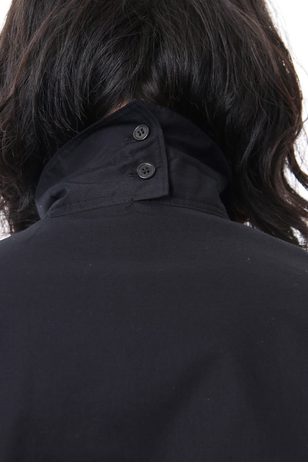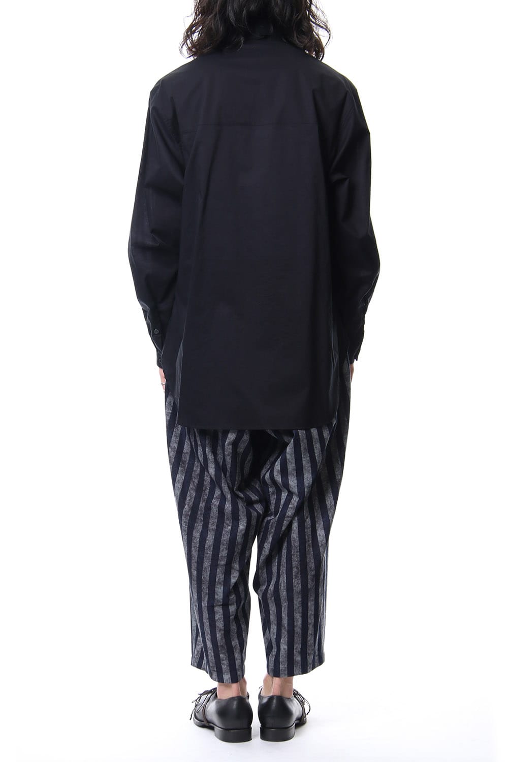 This cotton shirt has buttons on the back neck as well as a button pocket on the front left. It was worn during the runway in LOOK 15. It might look simple upon first glance but it has a layered collar design that can be arranged for different styles.
